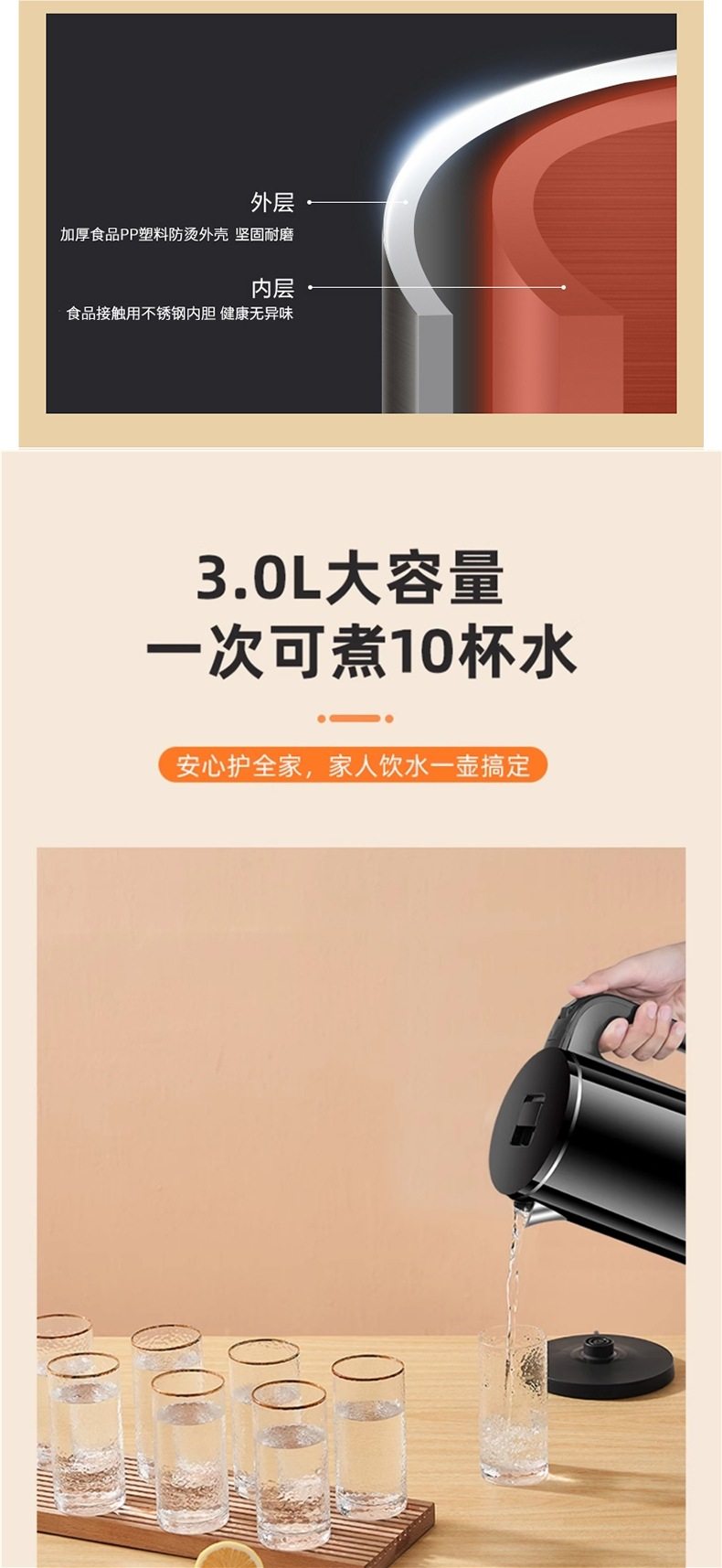 | Electric water kettle material | Stainless steel |