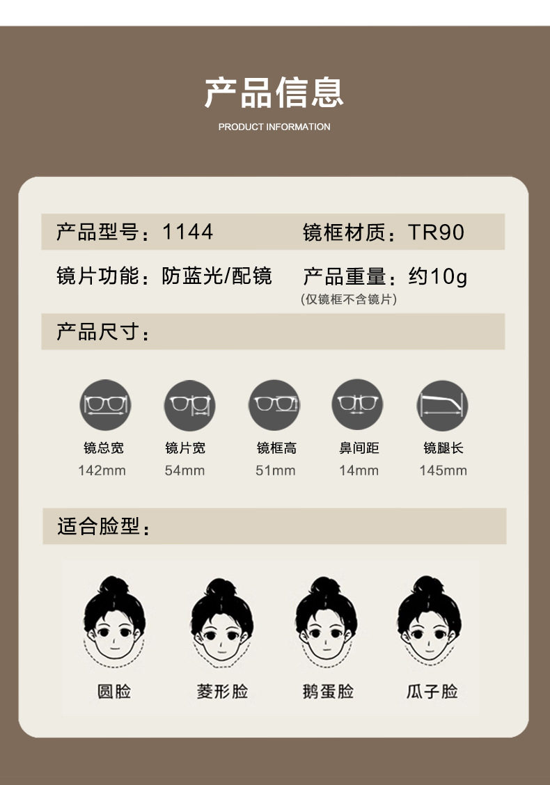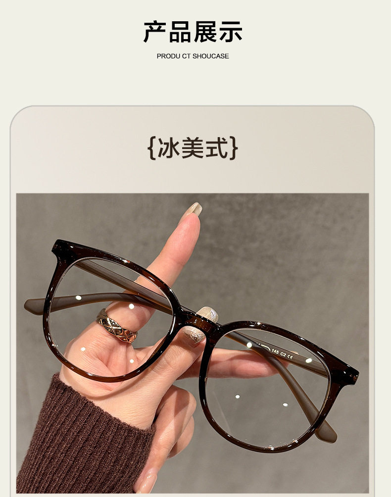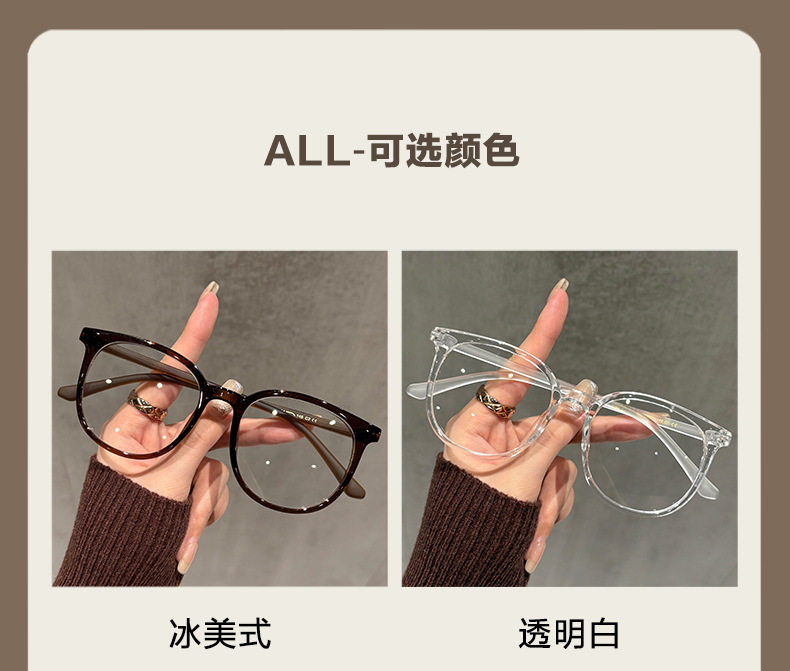 | Color | Ice american style [tr90 frame],No makeup black [tr90 frame],Spicy green [tr90 frame],Clear fog gray [tr90 frame],Transparent white [tr90 frame],Champagne tea [tr90 frame] |