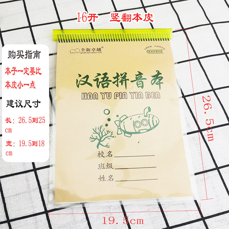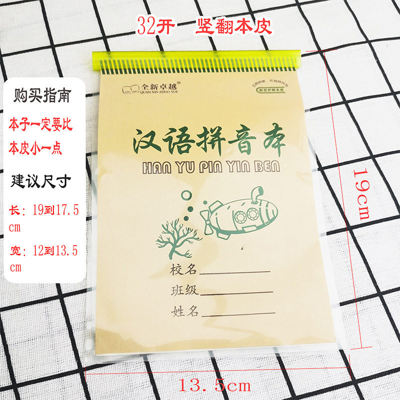 Transparent Vertical Flip 16K Exercise Book Cover, Thickened Waterproof Transparent Primary School Student Cover, Protective Cover with Rod Clip 32