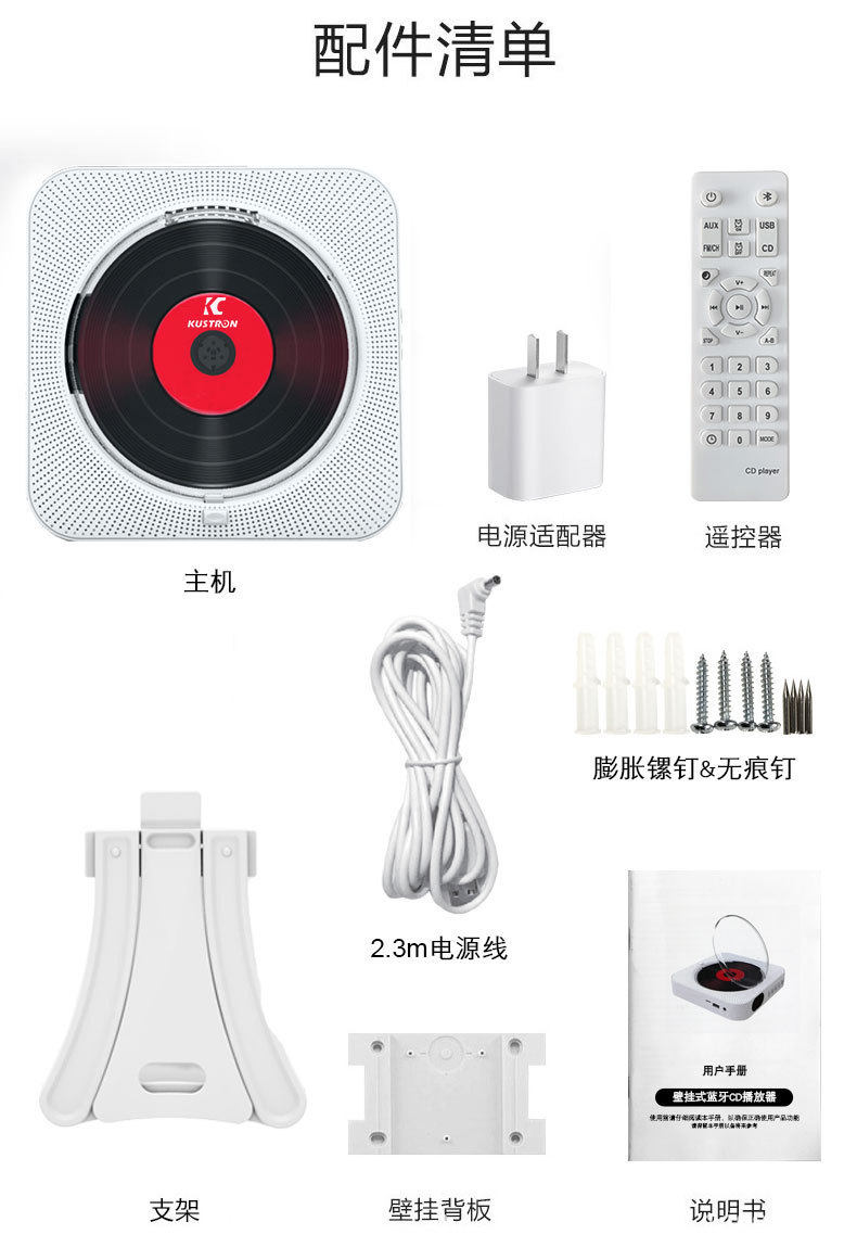 | Color | White cd player+kc-909+with cover+with display+special bracket,Black cd player+kc-909+with cover+with display+special bracket,Matcha green cd player+kc-909+with cover+with display+special bracket,Coral pink cd player+kc-909+with cover+with display+special bracket,White cd player+kc-909+with cover+with display+special bracket+charging model,Black cd player+kc-909+with cover+with display+special bracket+charging model,Matcha green cd player+kc-909+with cover+with display+special bracket+charging model,Coral pink cd player+kc-909+with cover+with display+special bracket+charging model,Purple cd player+kc-909+with cover+with display+special bracket,Purple cd player+kc-909+with cover+with display+special bracket+charging model,For other styles or customization, please contact customer service |