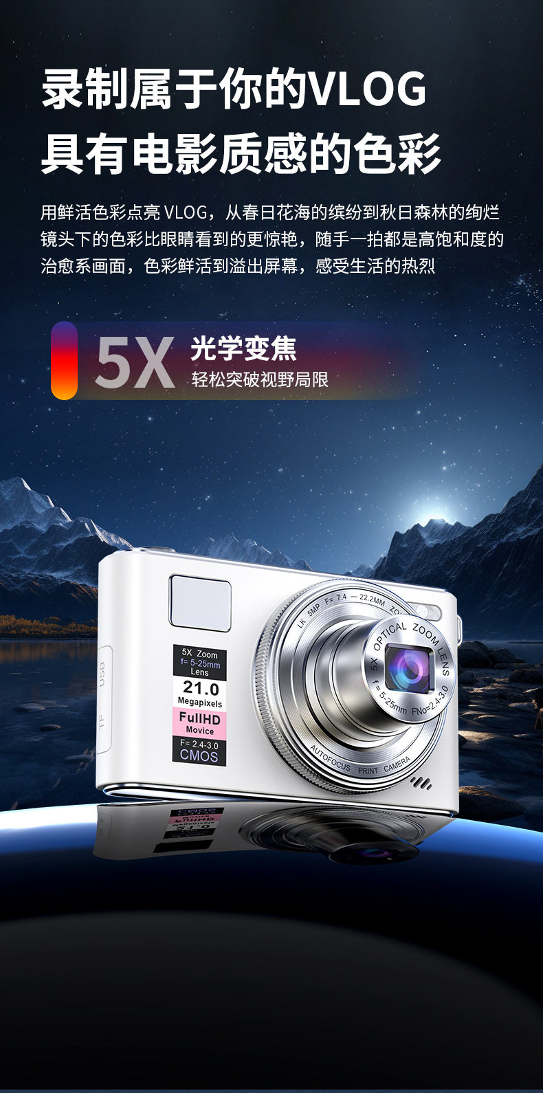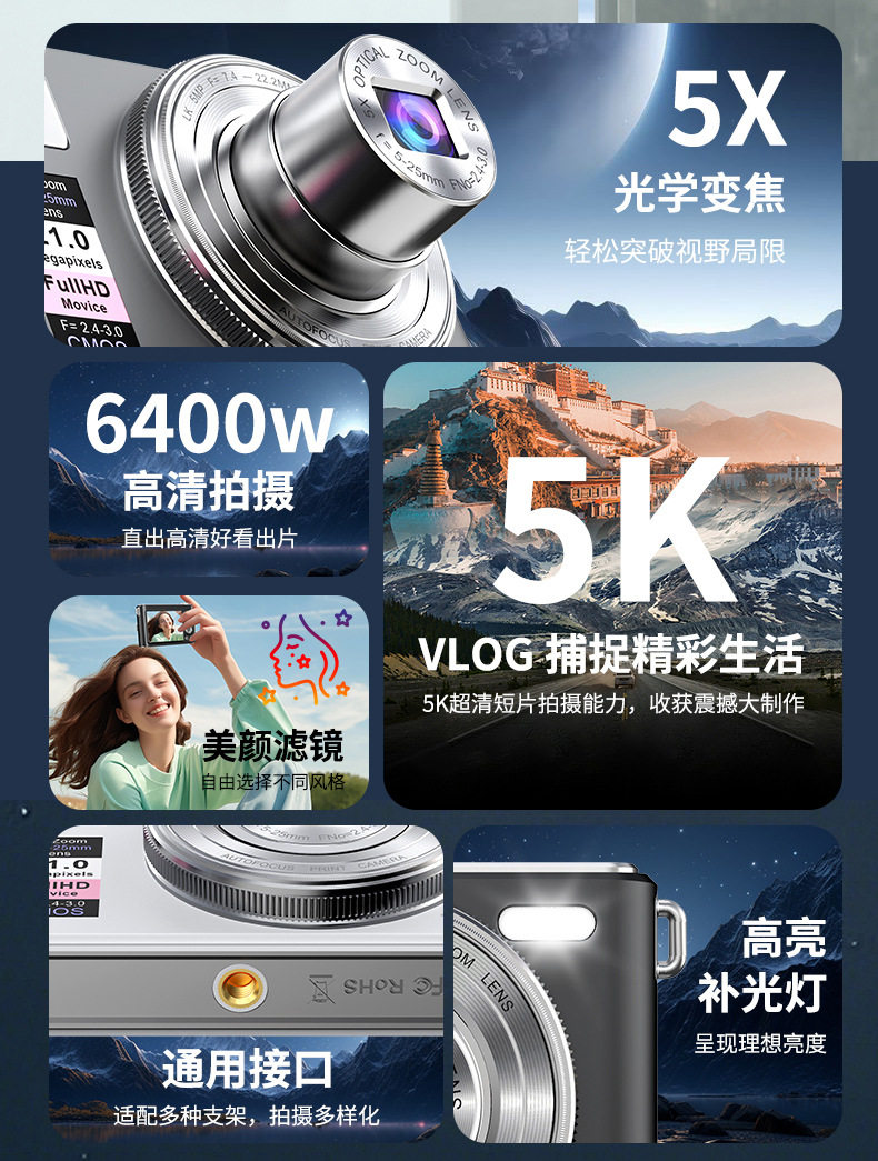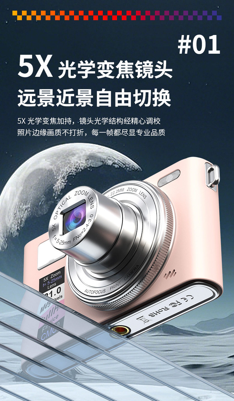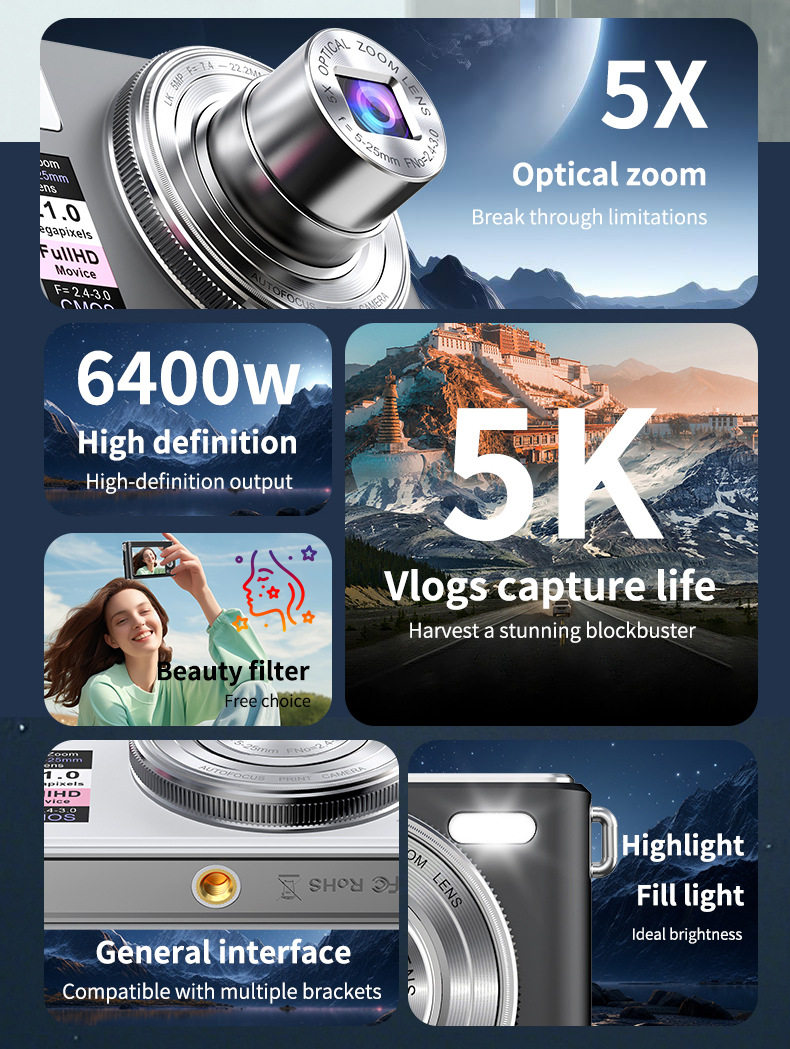 Cross-Border 5K High-Definition Digital Camera with Telescopic Lens for Home Use, Anti-Shake Shooting, 5X Optical Zoom Mirrorless Camera