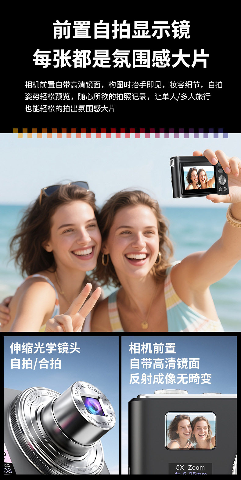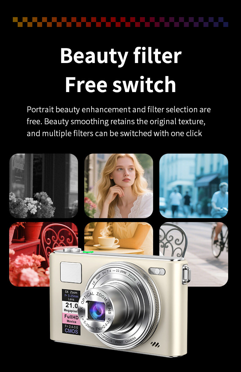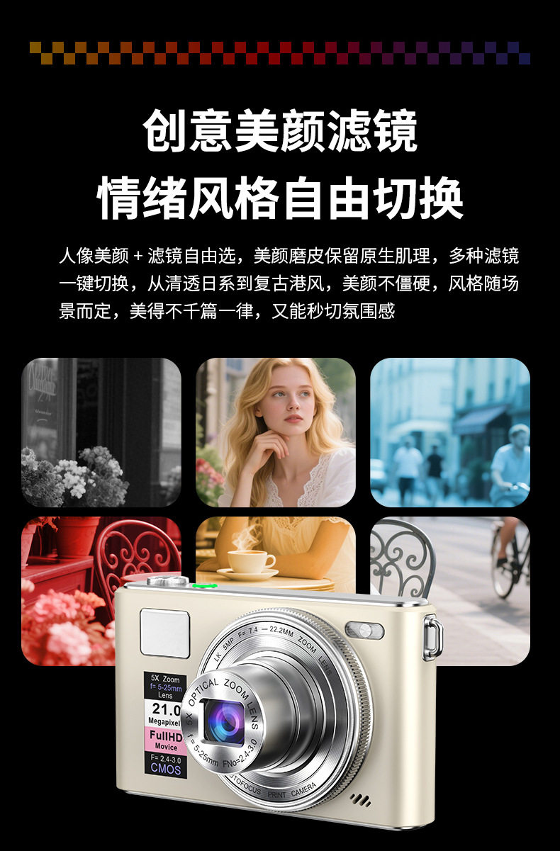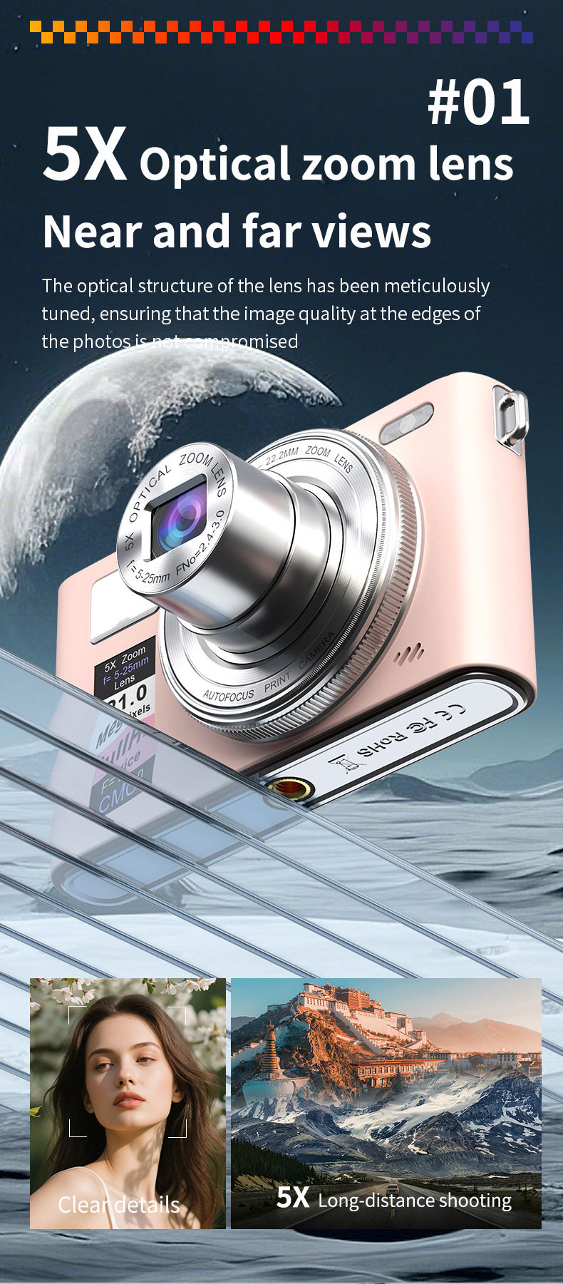 Cross-Border 5K High-Definition Digital Camera with Telescopic Lens for Home Use, Anti-Shake Shooting, 5X Optical Zoom Mirrorless Camera