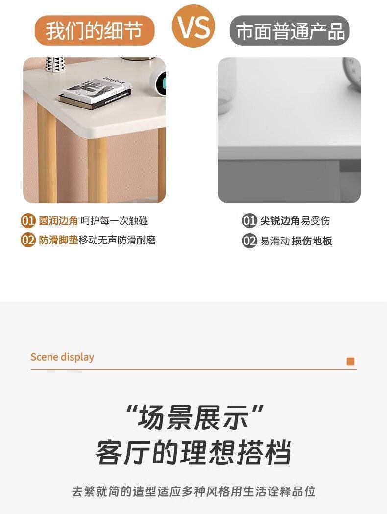 Small Coffee Table in the Middle of the Sofa, Office Side Cabinet, Light Luxury and High-End Rectangular Side Table, Tea Table, Square Table