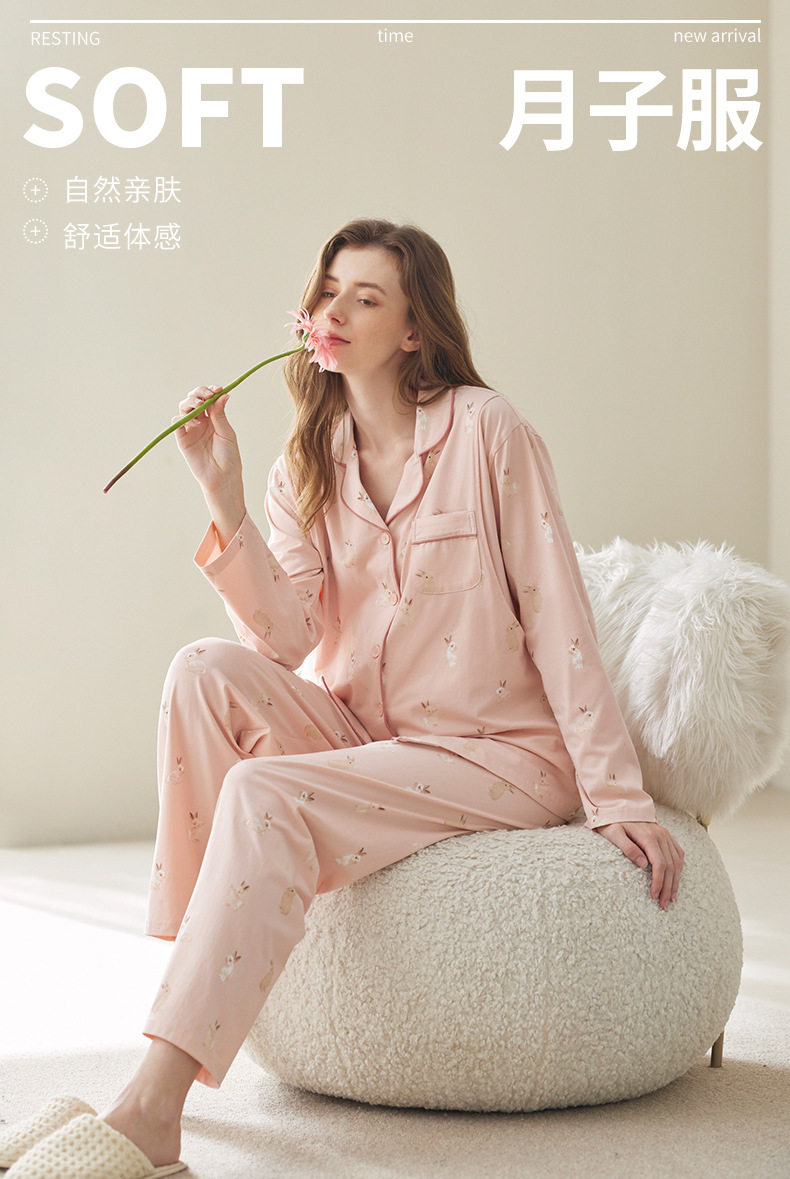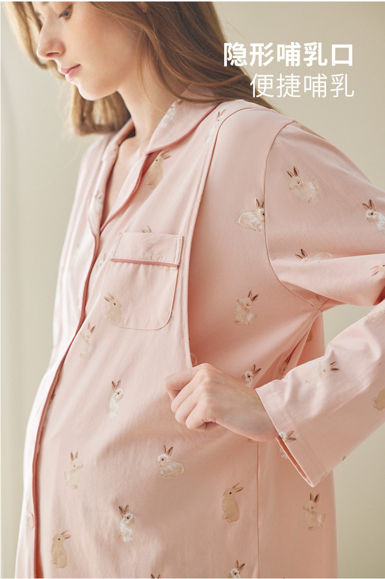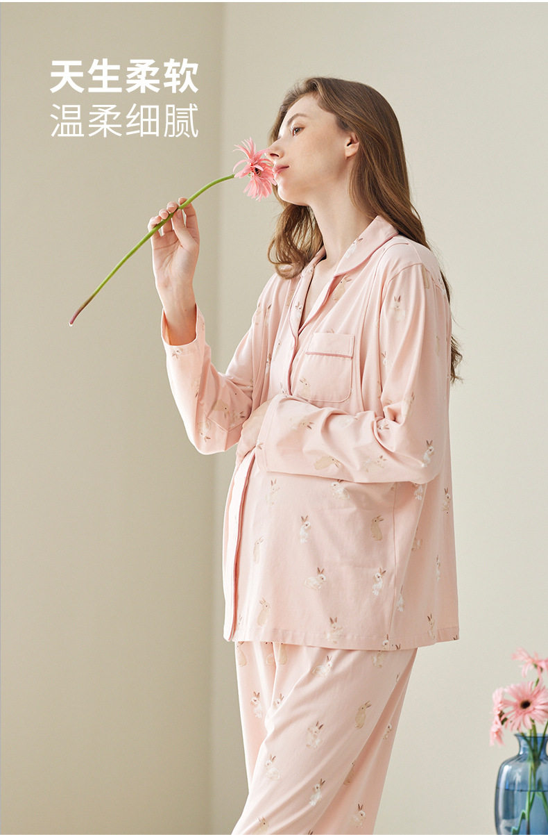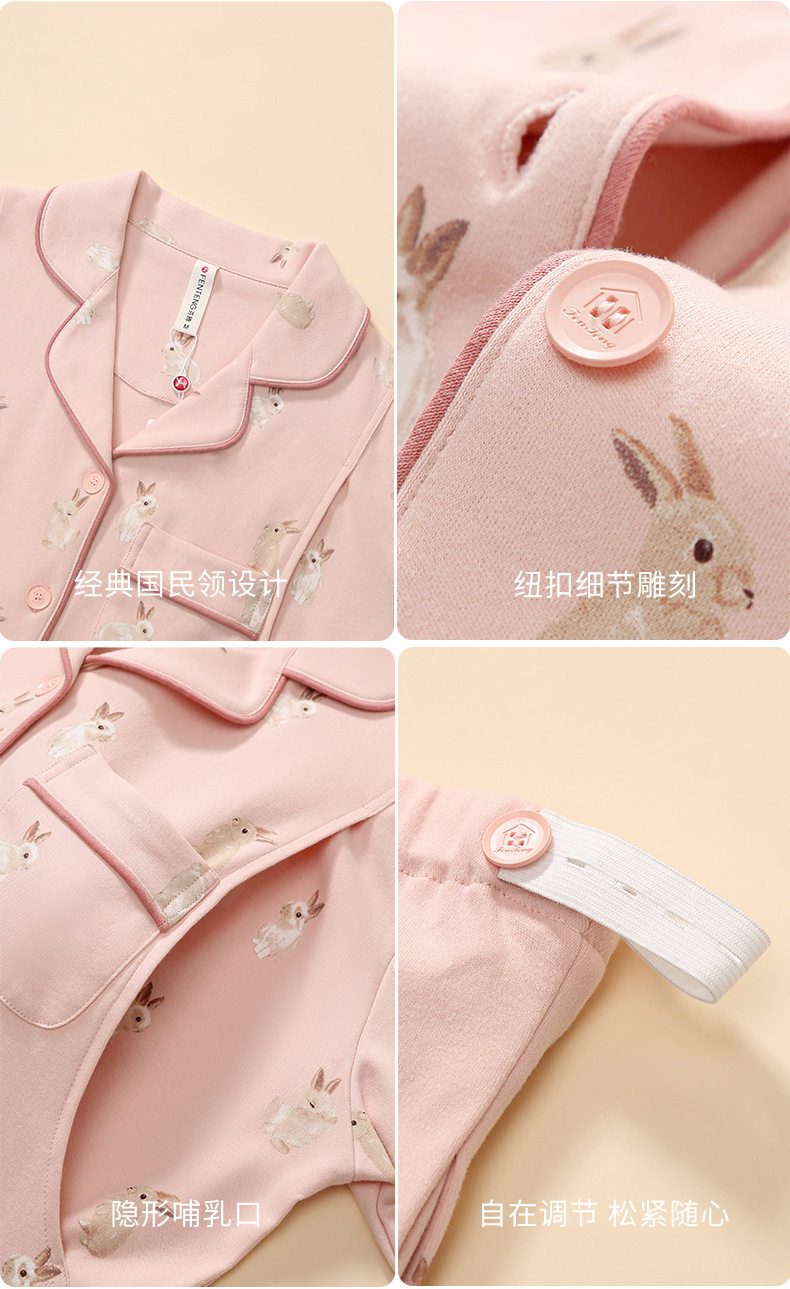 Fenton [Pure Cotton Maternity Clothes] Spring and Autumn Pure Cotton Postpartum Maternity Nursing Pajamas Women's Home Clothes Set