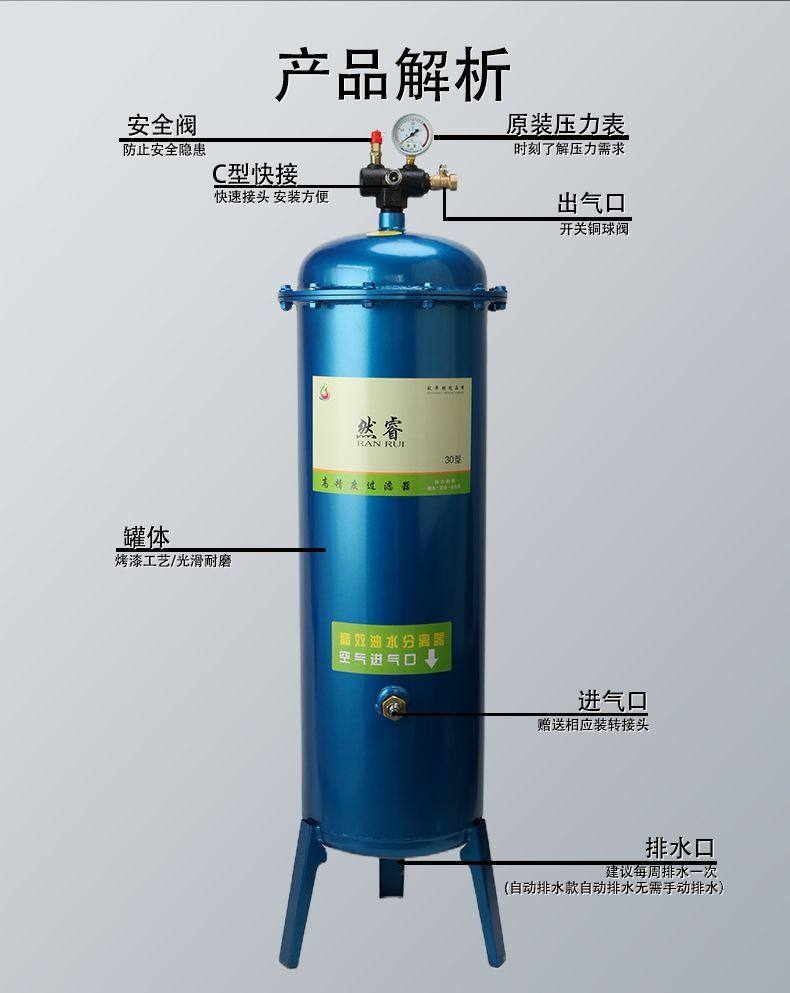 Filter Air Pump Filter Tank Air Compressor Oil-Water Separator Drying Automatic Drainage Air Pressure Oil-Water Separation