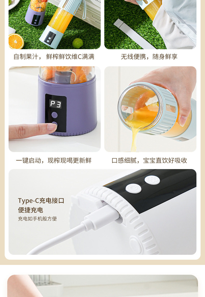 Cross-Border Electric Juicer Household Freshly Squeezed Juice Machine Portable Charging Multi-Functional Crushed Ice Vegetable and Fruit Juice Cup