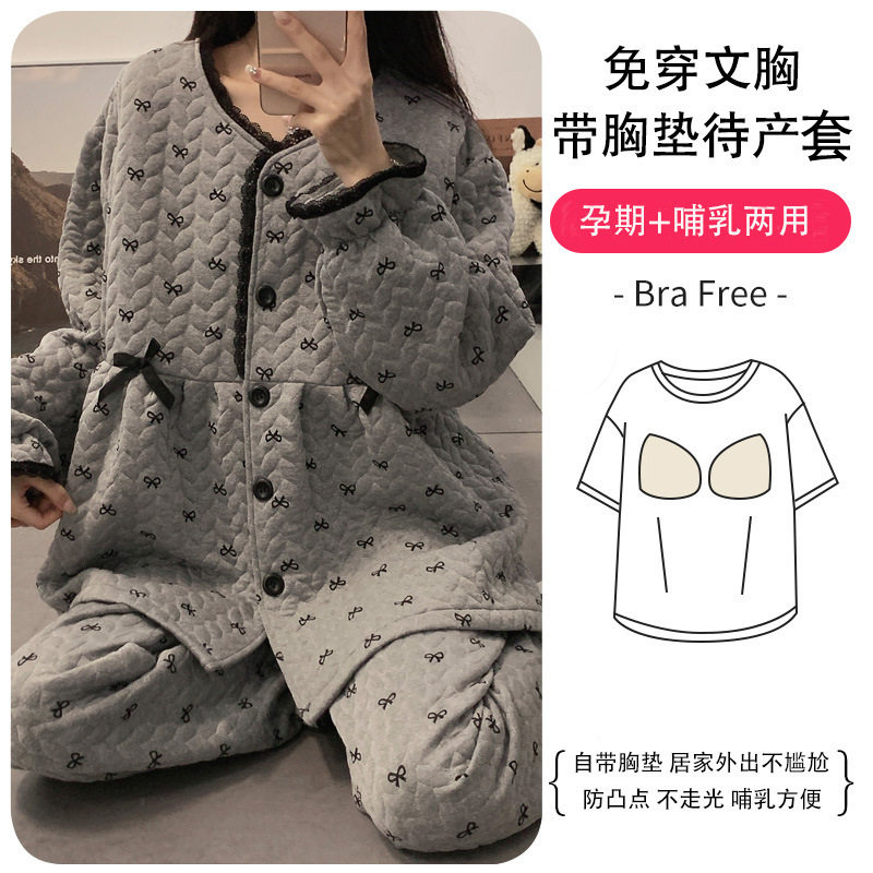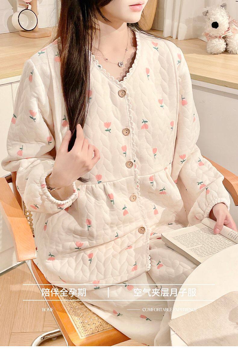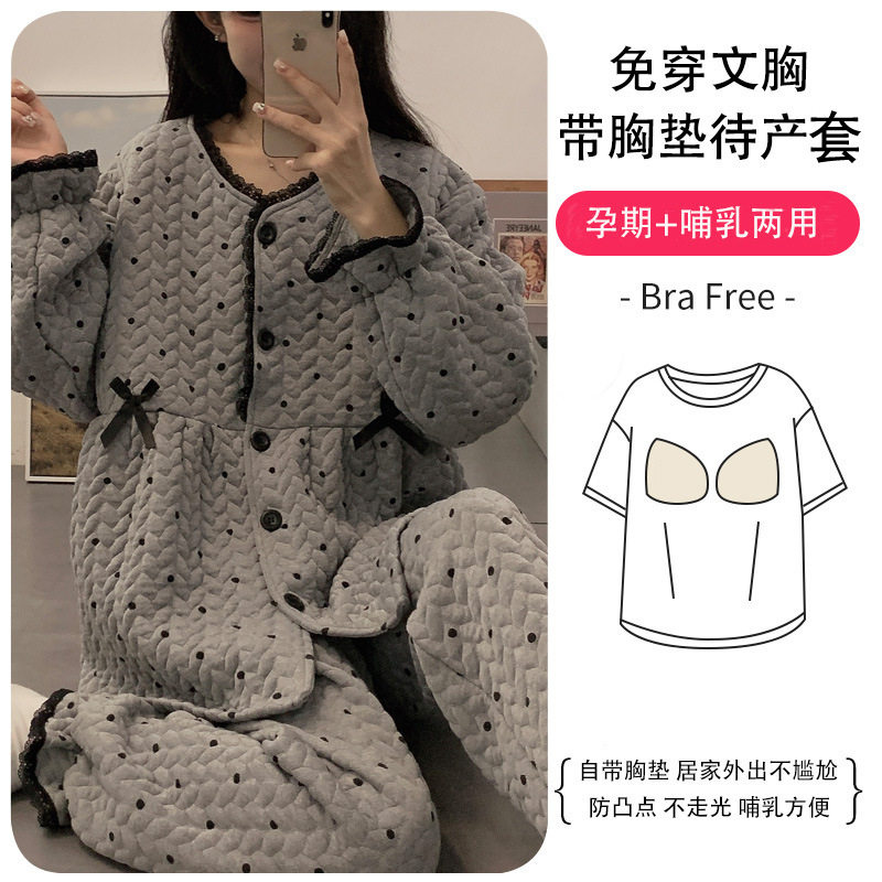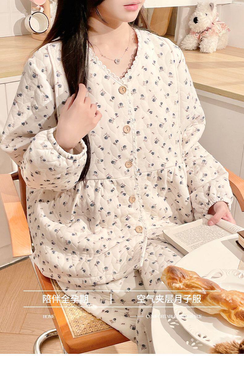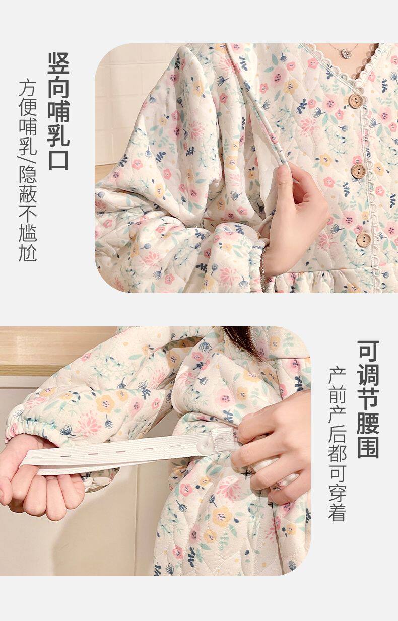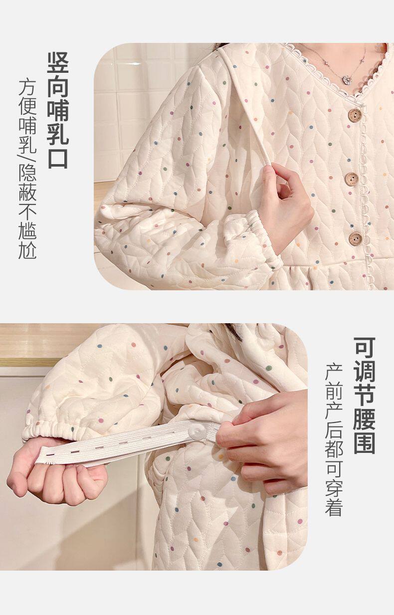 Maternity Pajamas with Padded Air Cotton for Postpartum Nursing in Autumn and Winter, Suitable for Spring, Maternity Sleepwear for Pregnant Women, Loungewear for Women