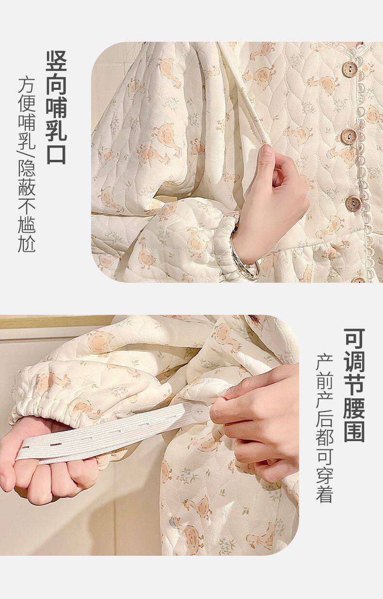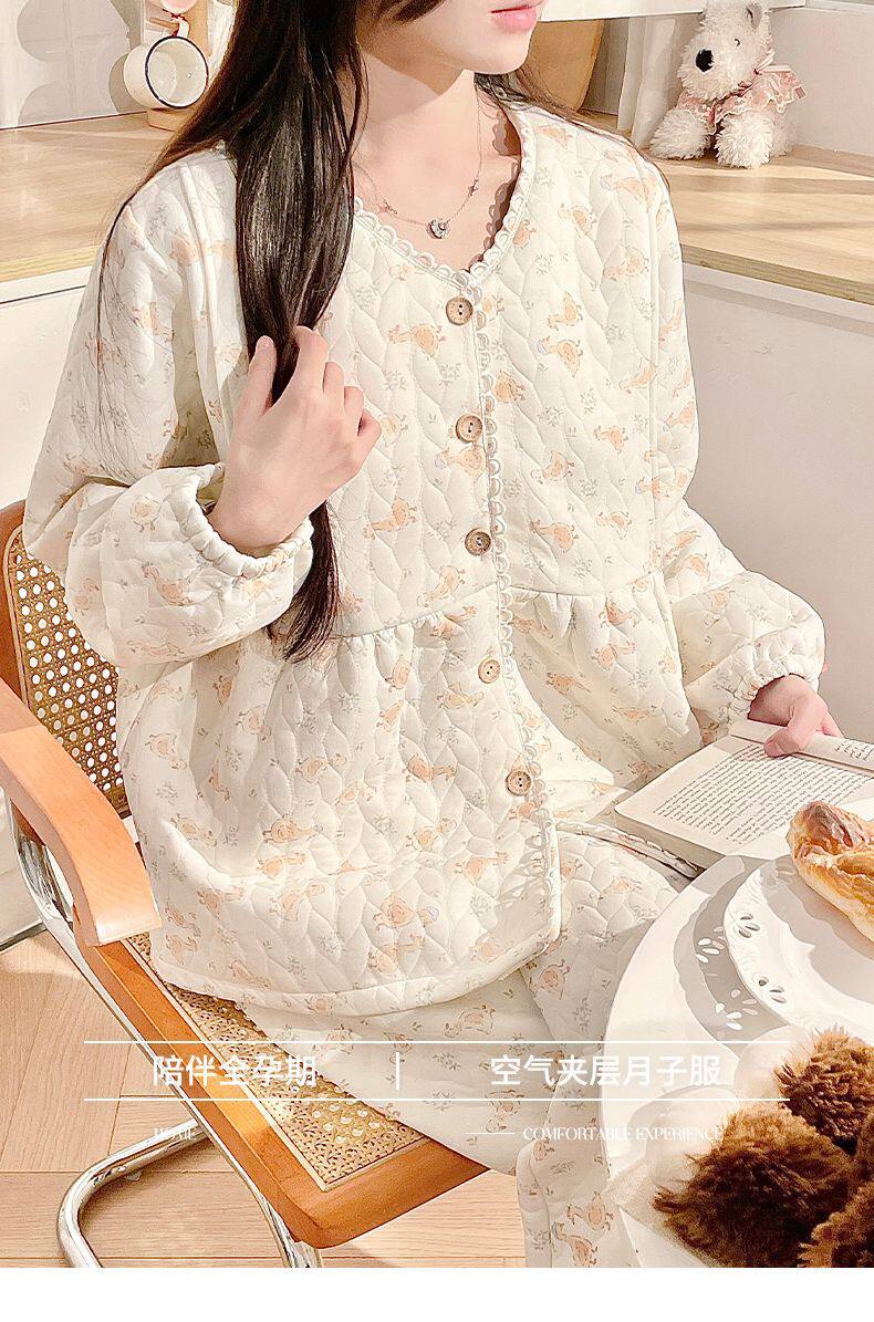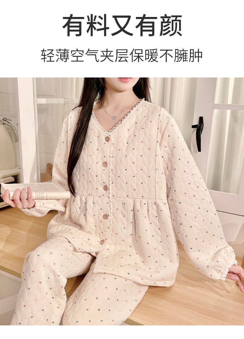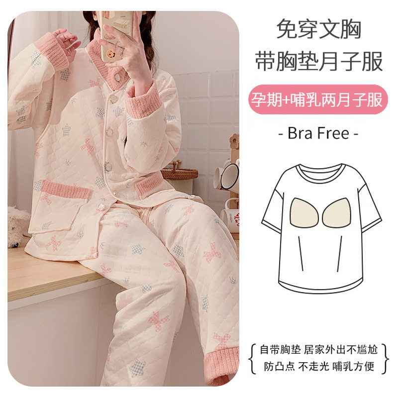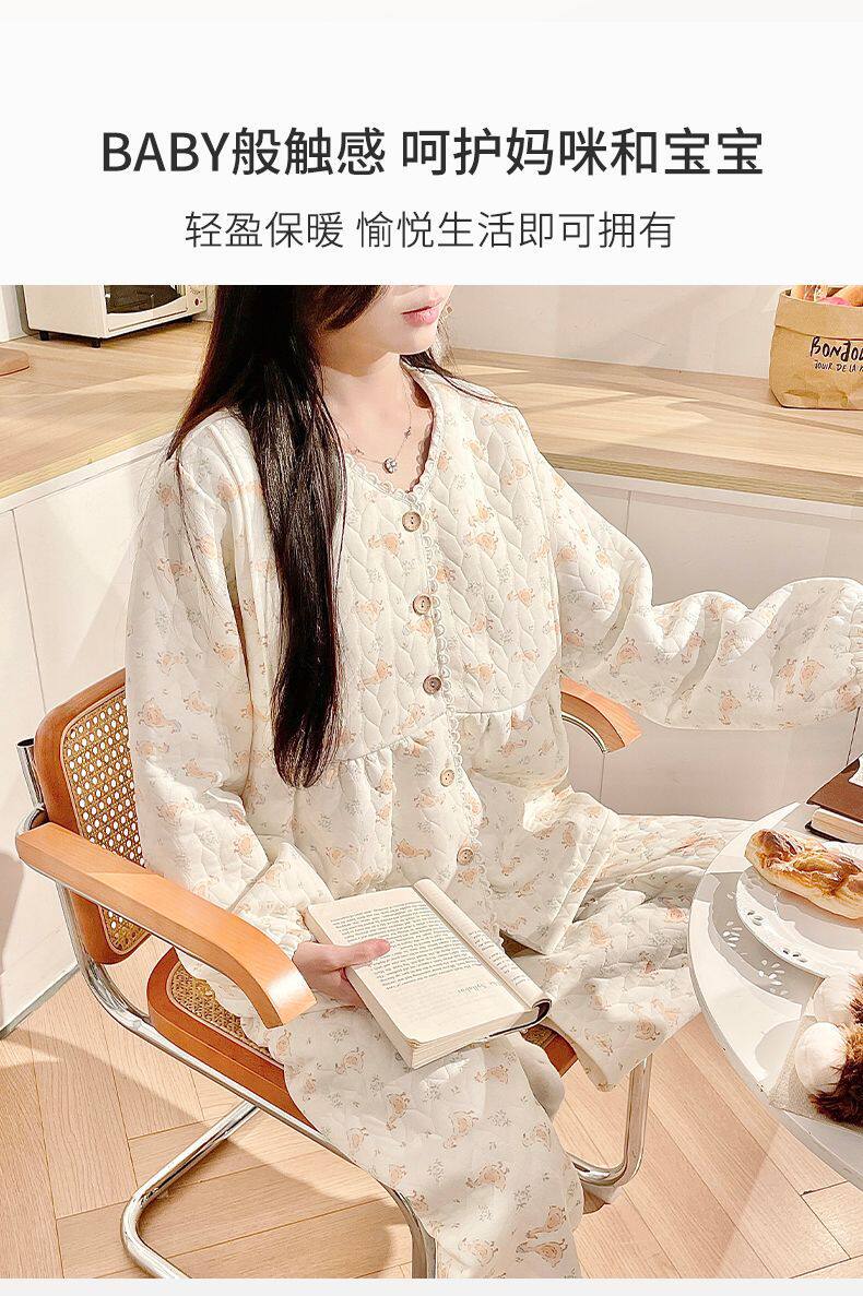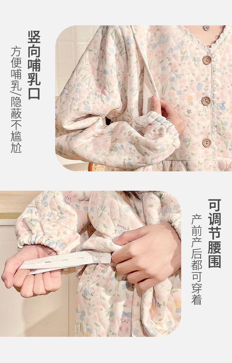 Maternity Pajamas with Padded Air Cotton for Postpartum Nursing in Autumn and Winter, Suitable for Spring, Maternity Sleepwear for Pregnant Women, Loungewear for Women
