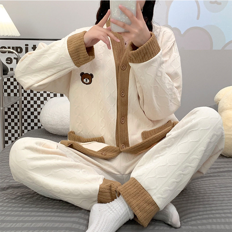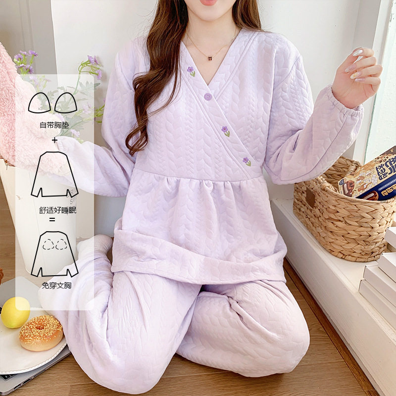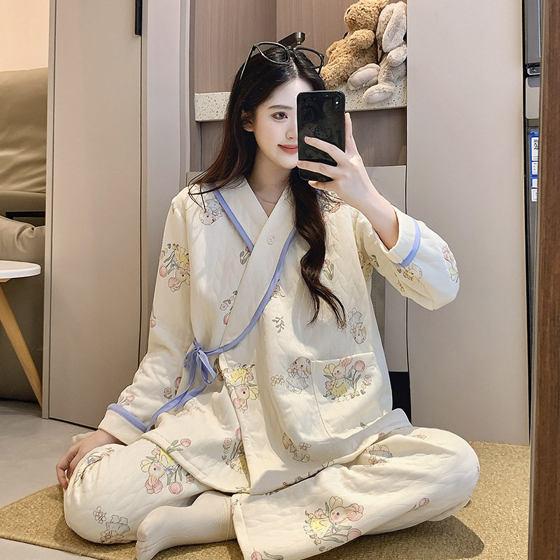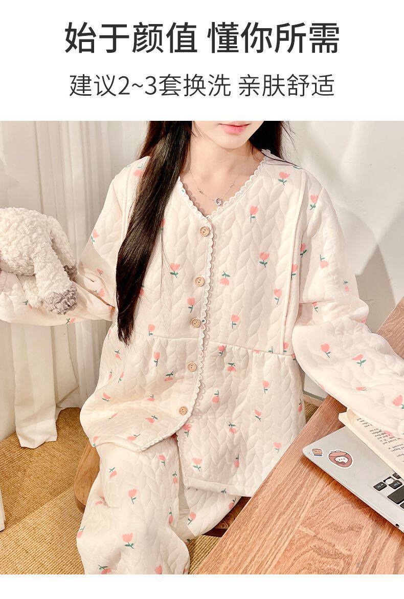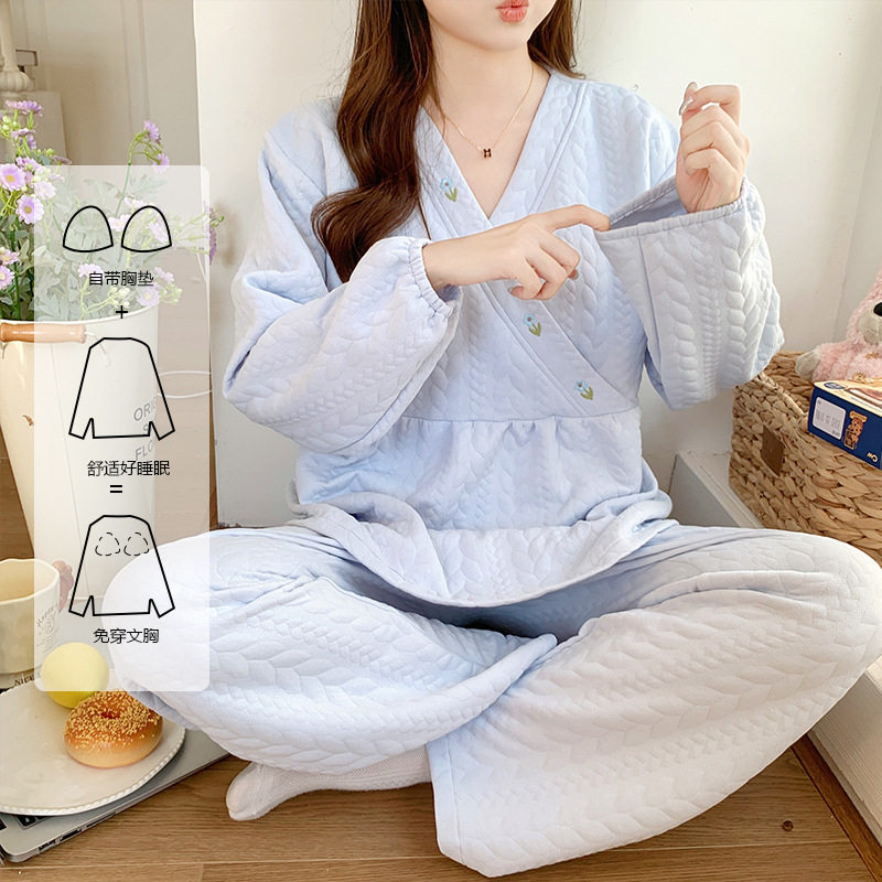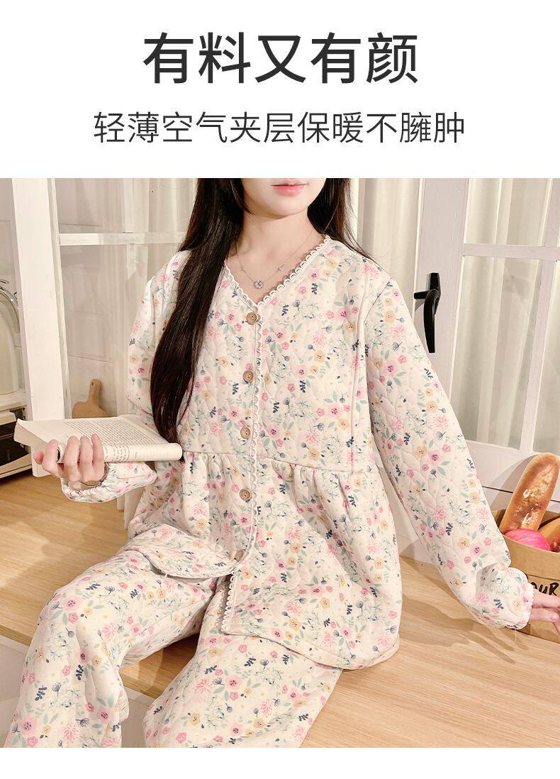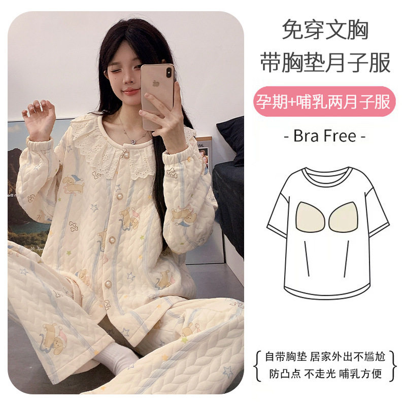 Maternity Pajamas with Padded Air Cotton for Postpartum Nursing in Autumn and Winter, Suitable for Spring, Maternity Sleepwear for Pregnant Women, Loungewear for Women
