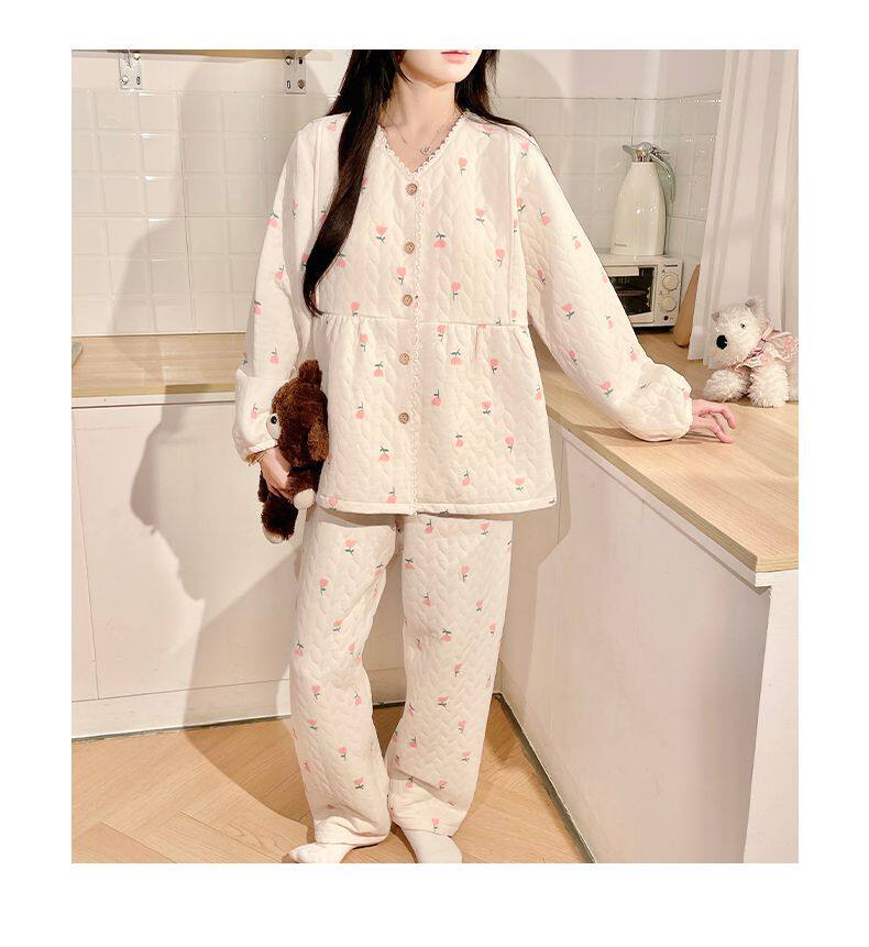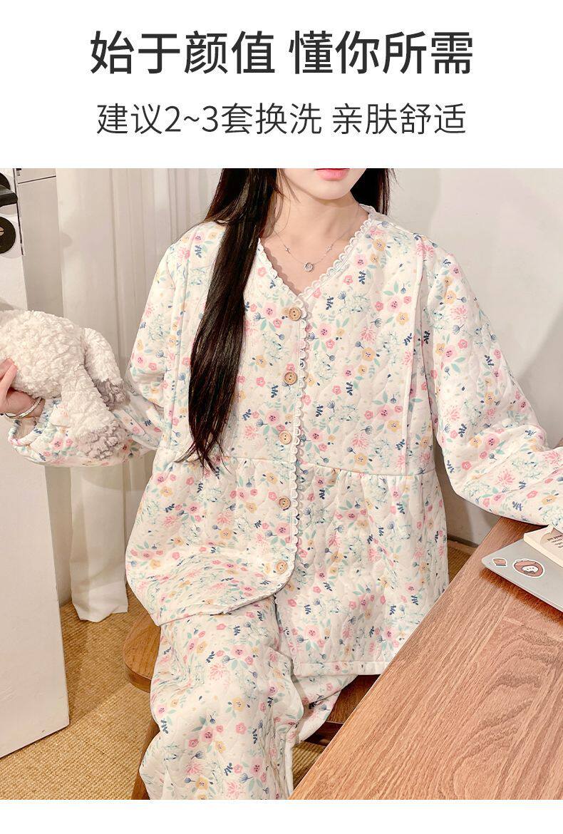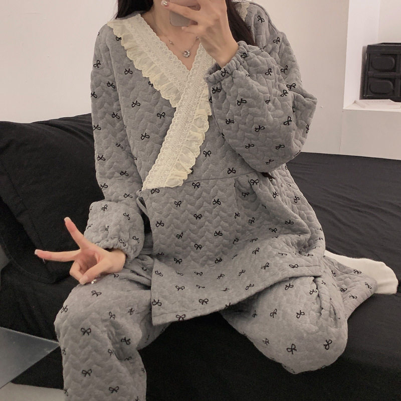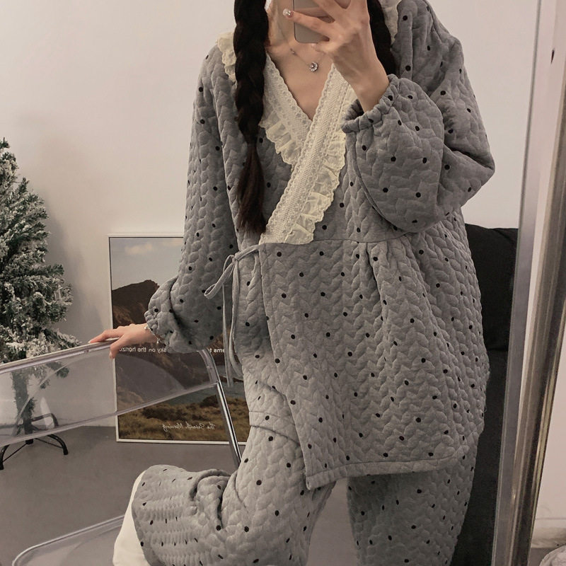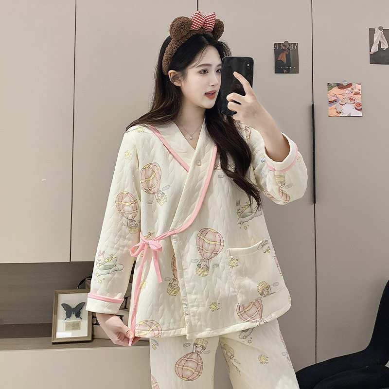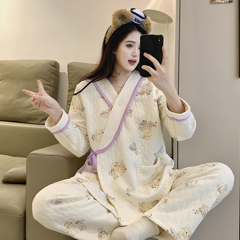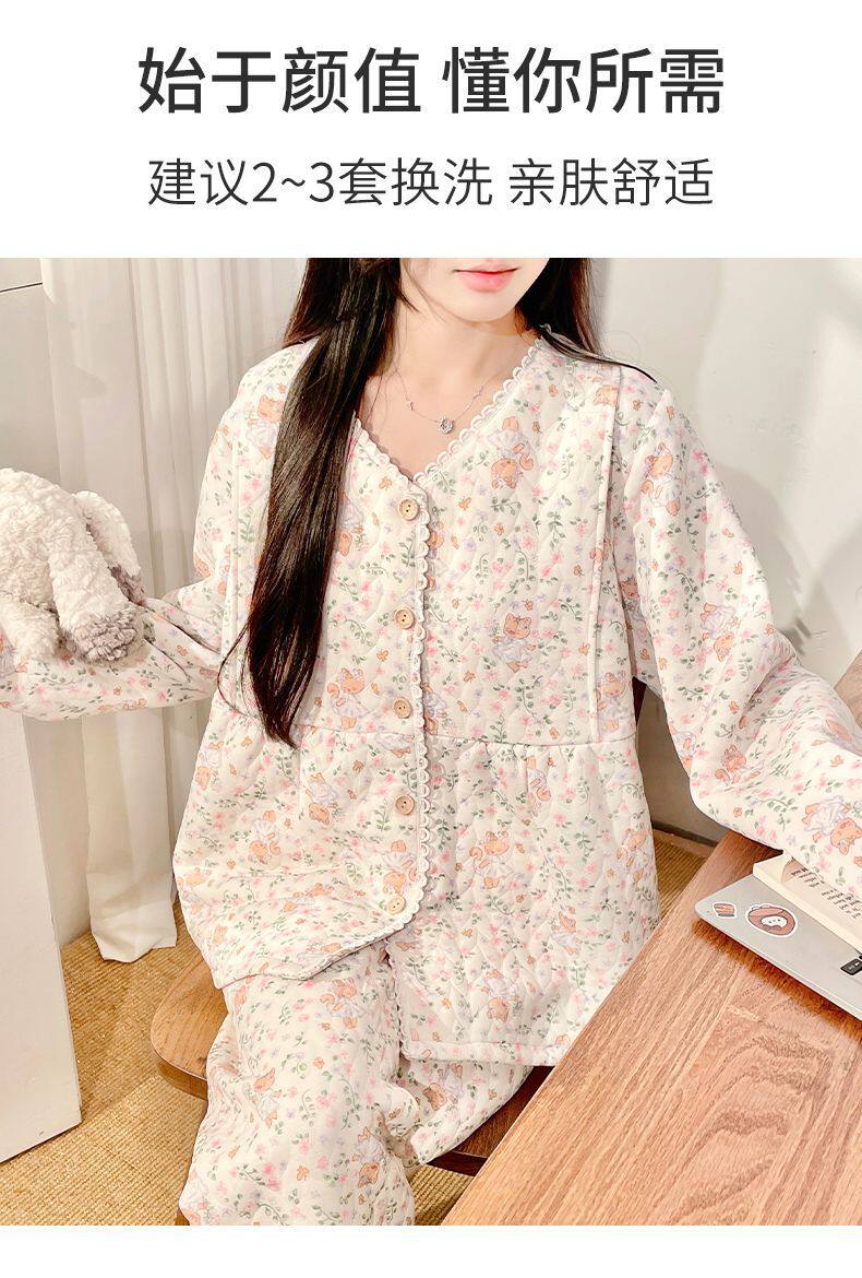 Maternity Pajamas with Padded Air Cotton for Postpartum Nursing in Autumn and Winter, Suitable for Spring, Maternity Sleepwear for Pregnant Women, Loungewear for Women