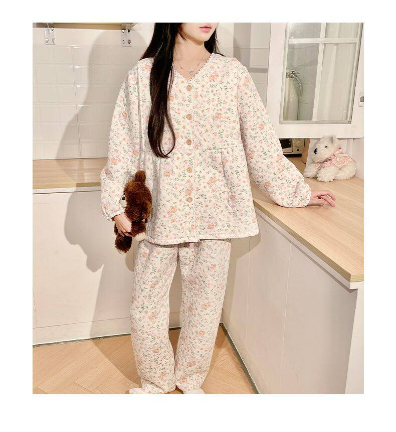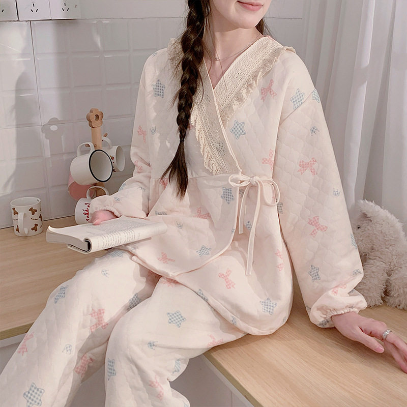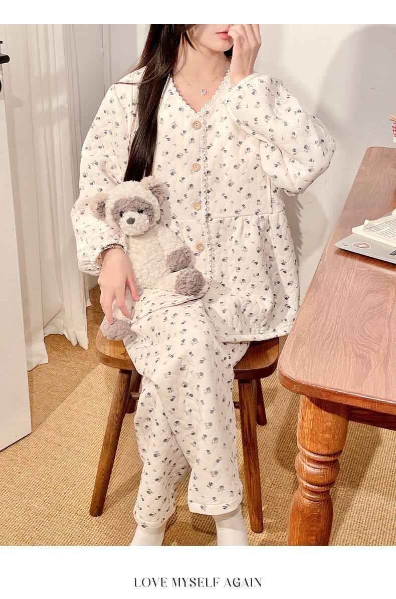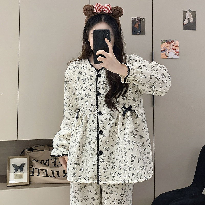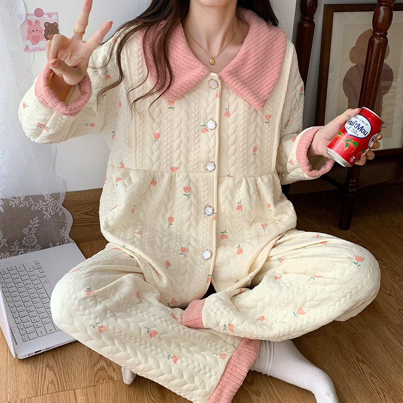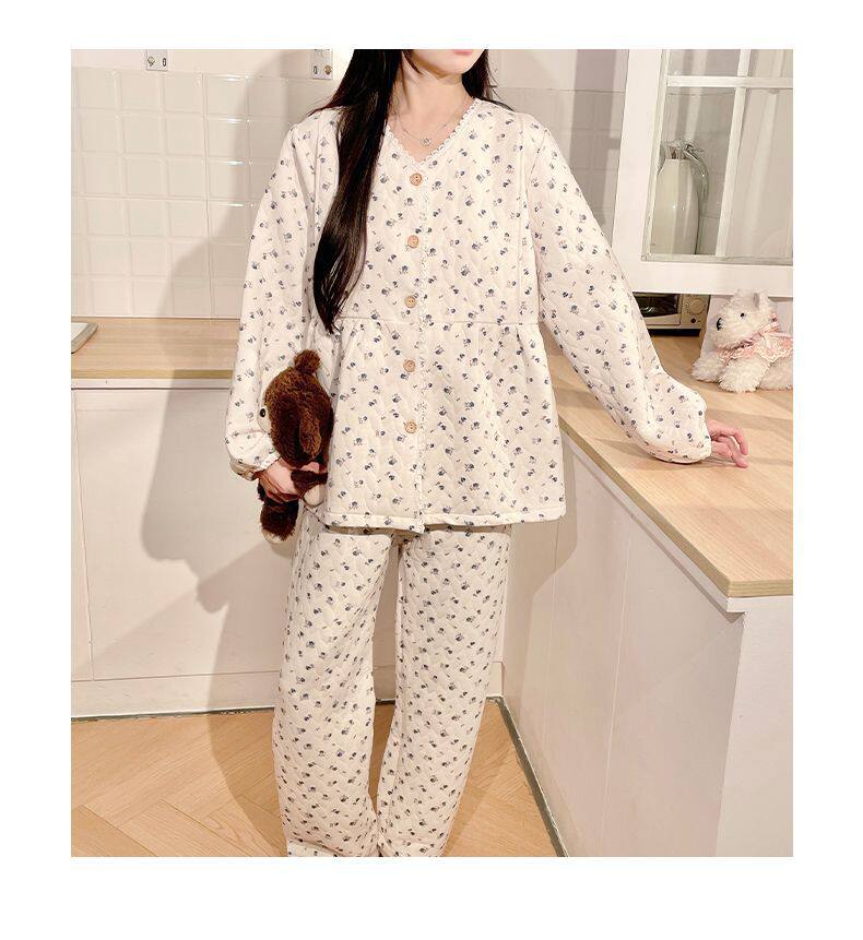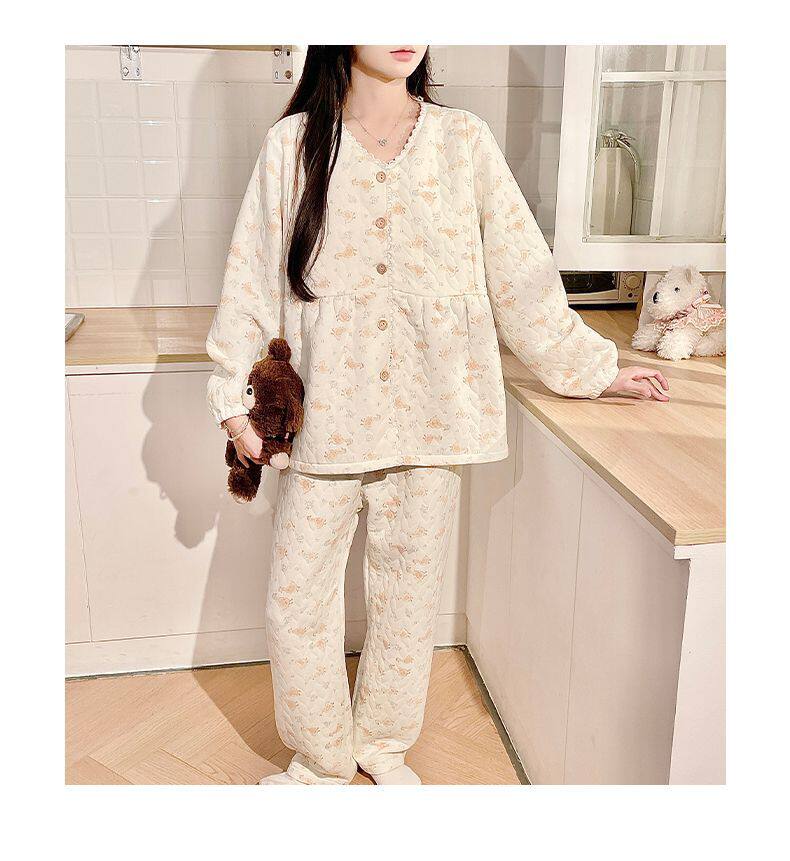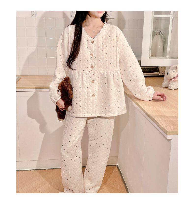 Maternity Pajamas with Padded Air Cotton for Postpartum Nursing in Autumn and Winter, Suitable for Spring, Maternity Sleepwear for Pregnant Women, Loungewear for Women