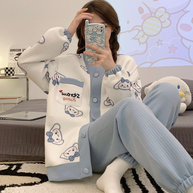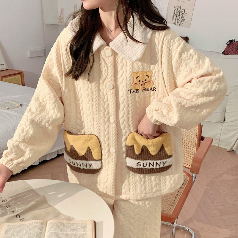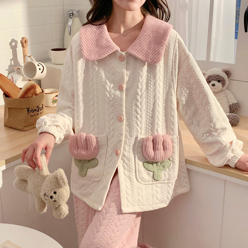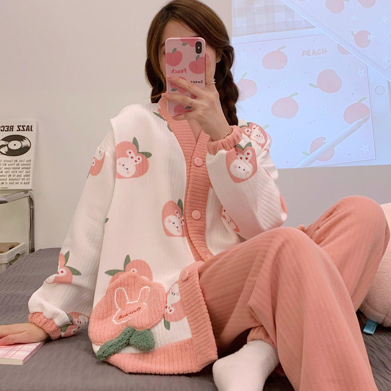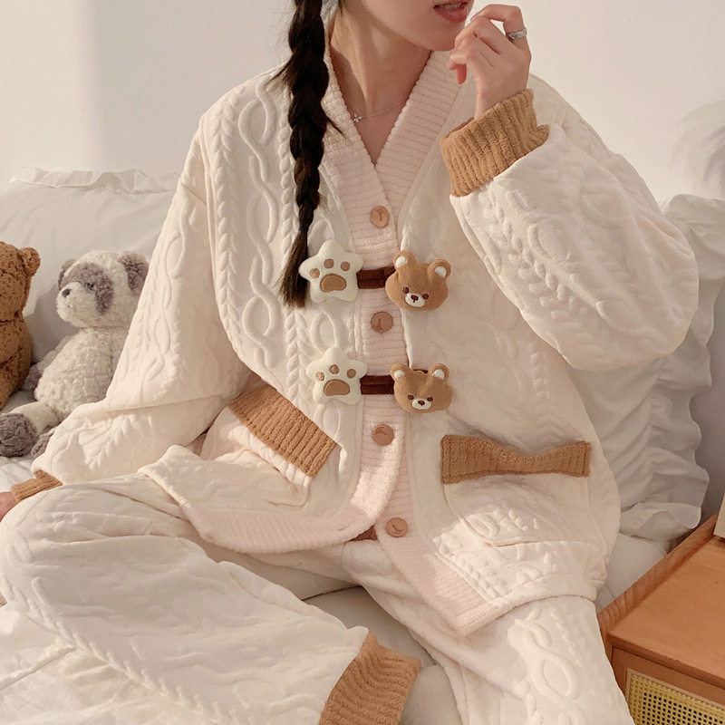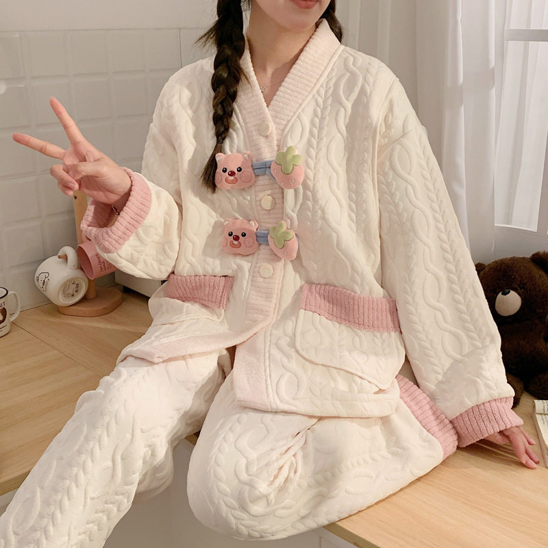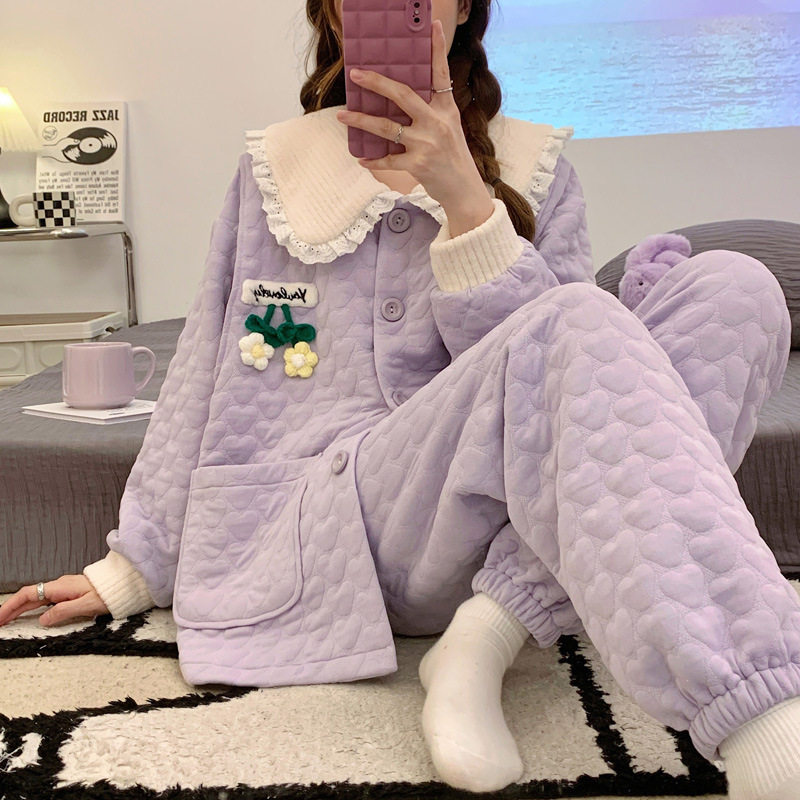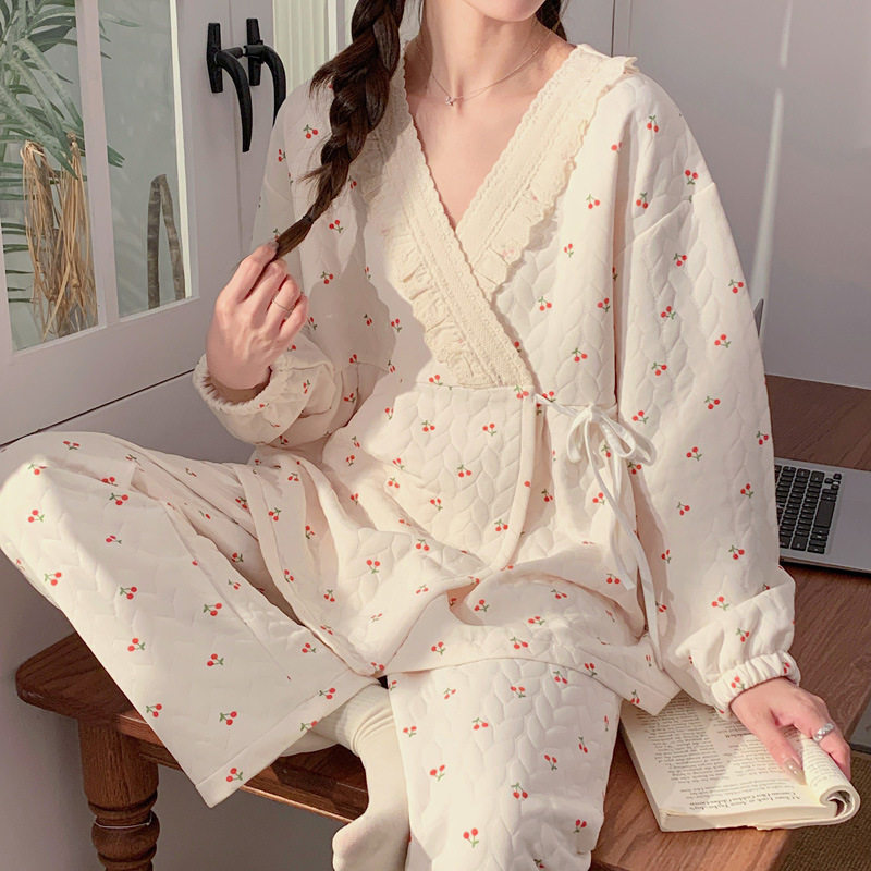 Maternity Pajamas with Padded Air Cotton for Postpartum Nursing in Autumn and Winter, Suitable for Spring, Maternity Sleepwear for Pregnant Women, Loungewear for Women