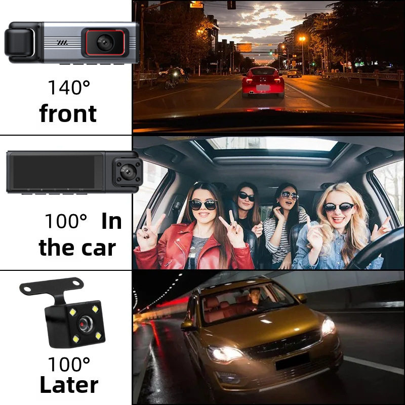 Cross-Border New Product Hd 1080P Three-Lens Driving Recorder Wifi In-Car Front and Rear Car Recorder Dvr