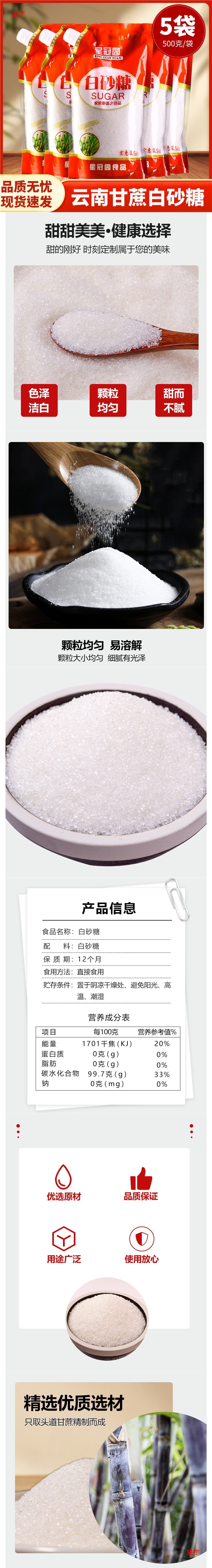 | Packaging specifications | Bulk white sugar [100g*1] bagged for early adopters,Screw cap white sugar-500g*2 bags,Screw cap white sugar-500g*10 bags,Screw cap white sugar-500g*5 bags,Screw cap white sugar-500g*6 bags,Screw cap white sugar-500g*3 bags,Bulk white sugar [100g*2] bagged for early adopters |