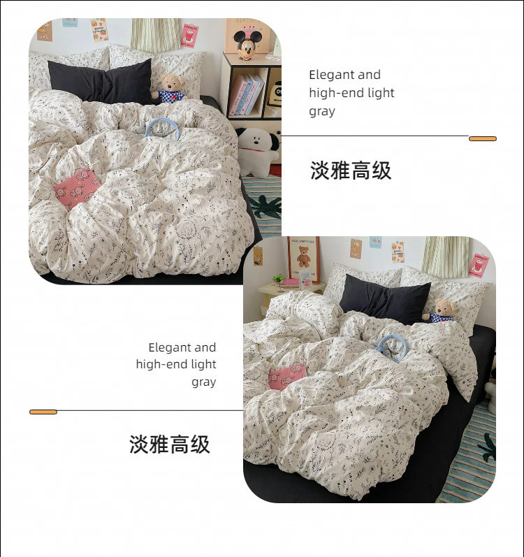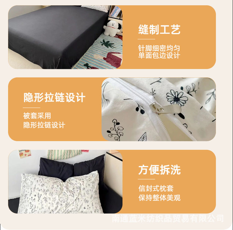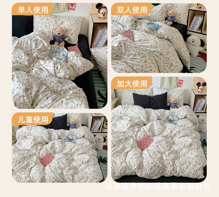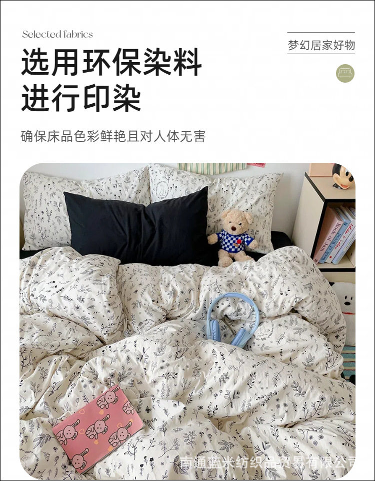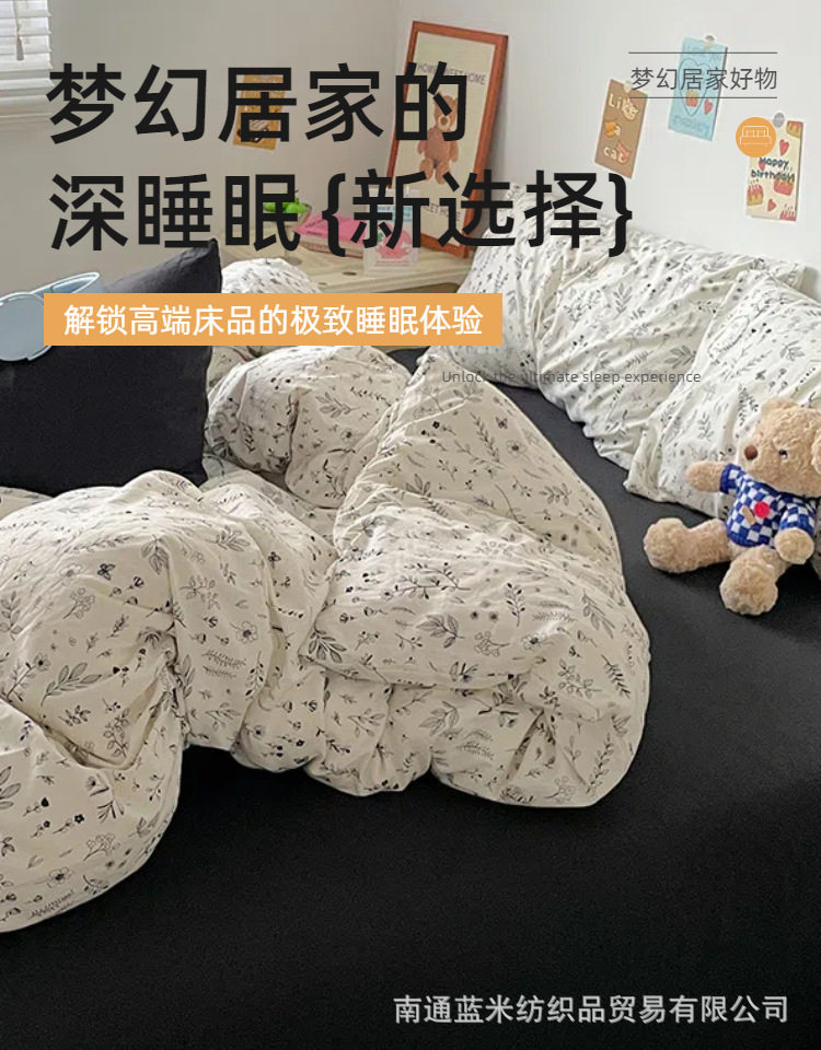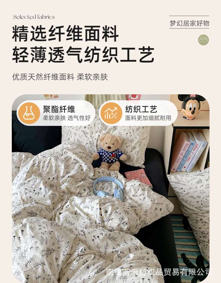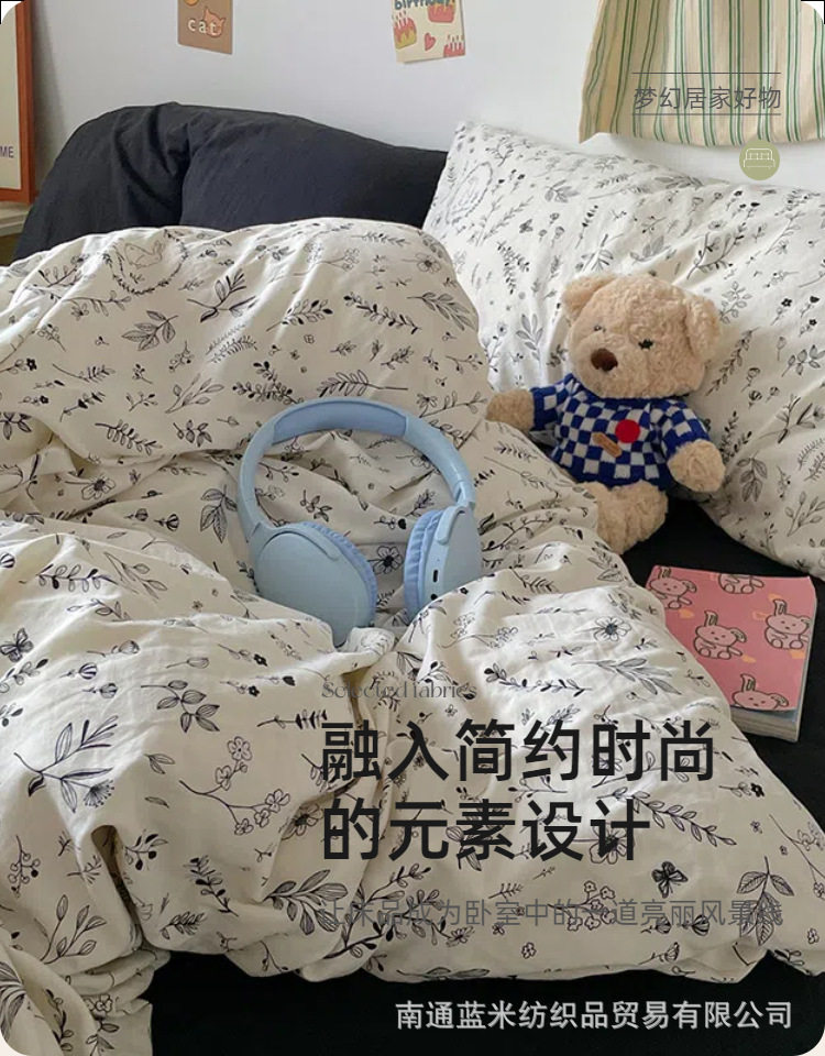 Floral Bear Nantong Home Textiles Foreign Trade E-Commerce Household Four-Piece Set Washed and Brushed Craft Dormitory Three-Piece Set Cross-Border