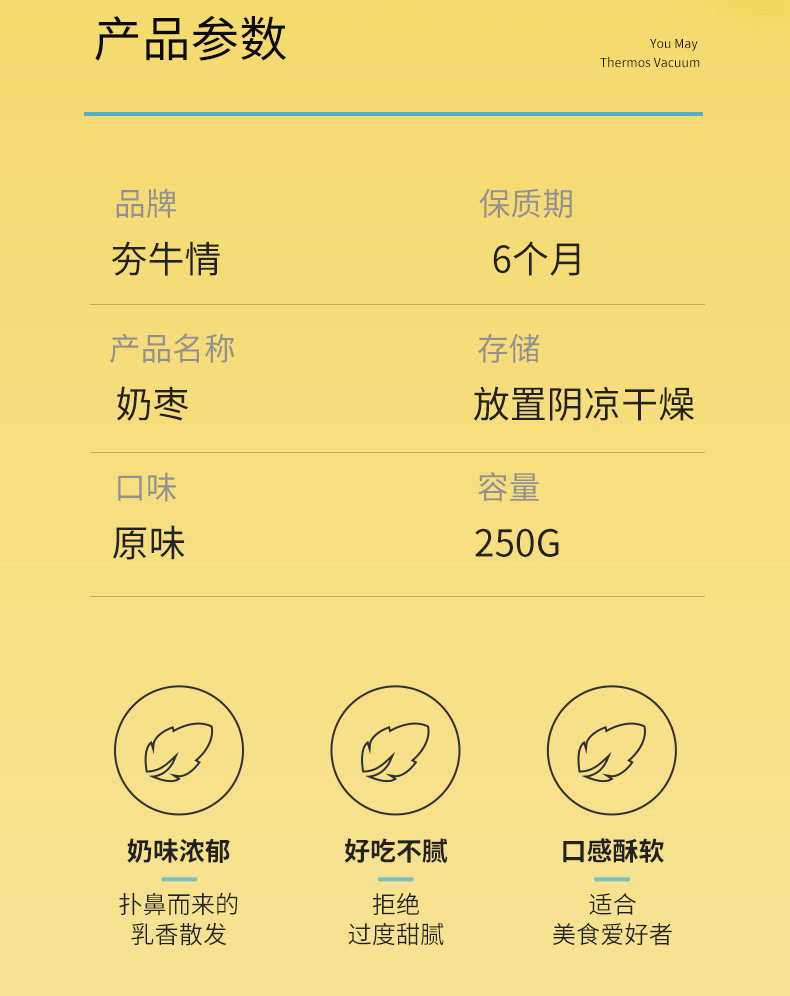 | Packaging specifications | Milk dates 250g,Milk dates in bulk 2.5kg |