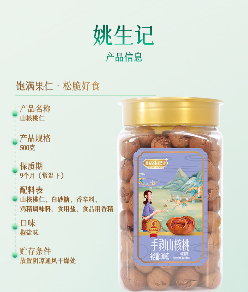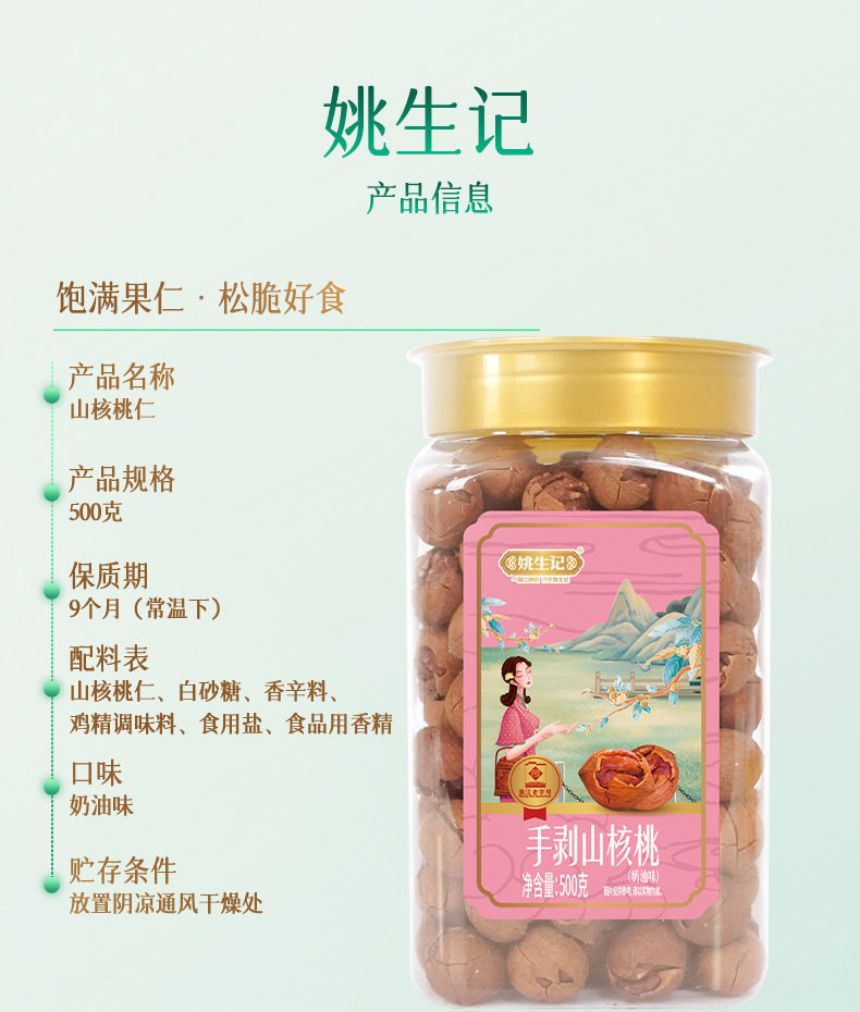 Yao Shengji Lin'An Original Pecan 500g Creamy Hand-Peeled Pecan Nutritional Snacks for Kidsren and Pregnant Women