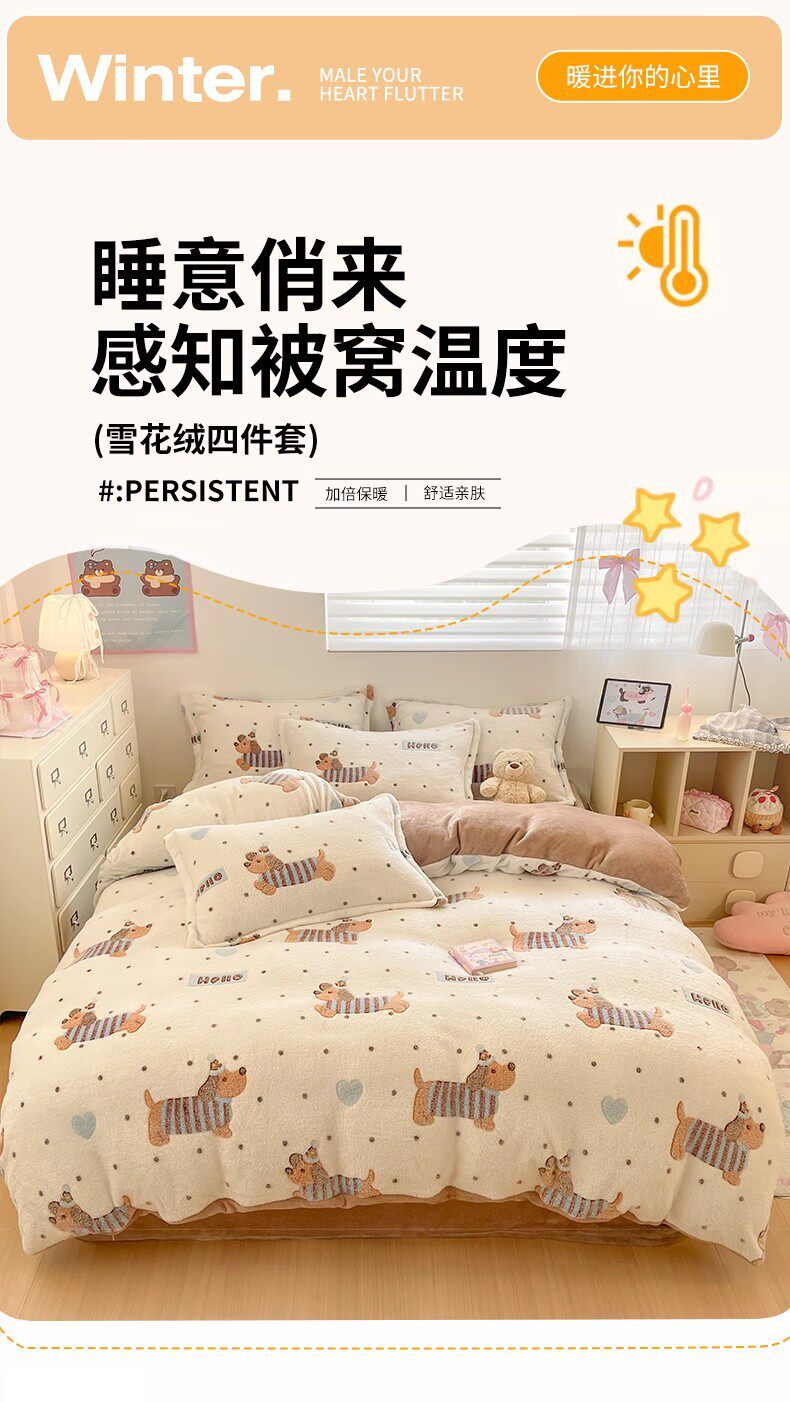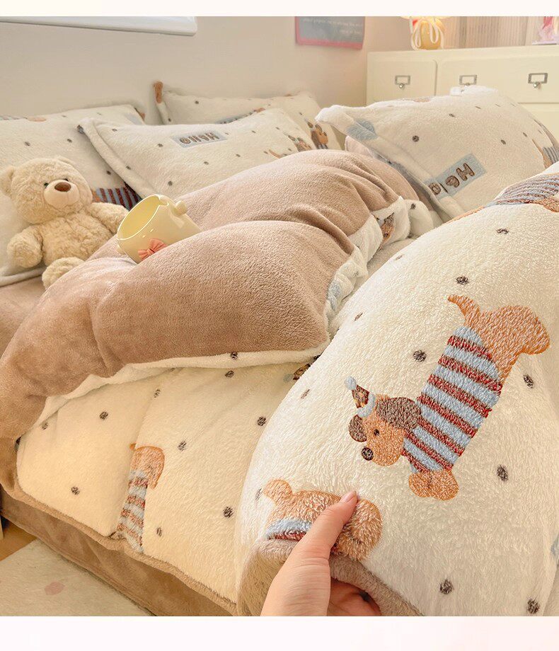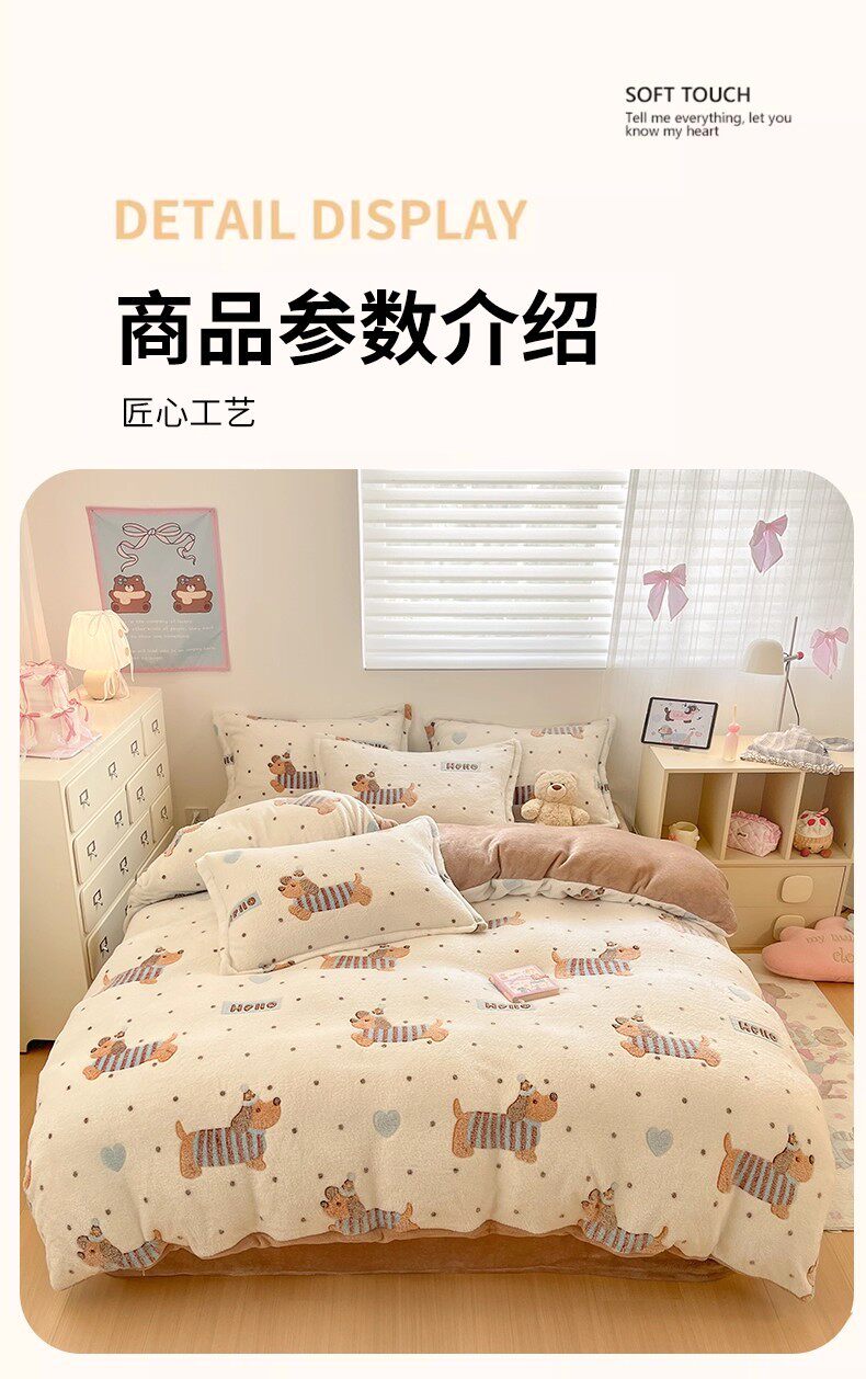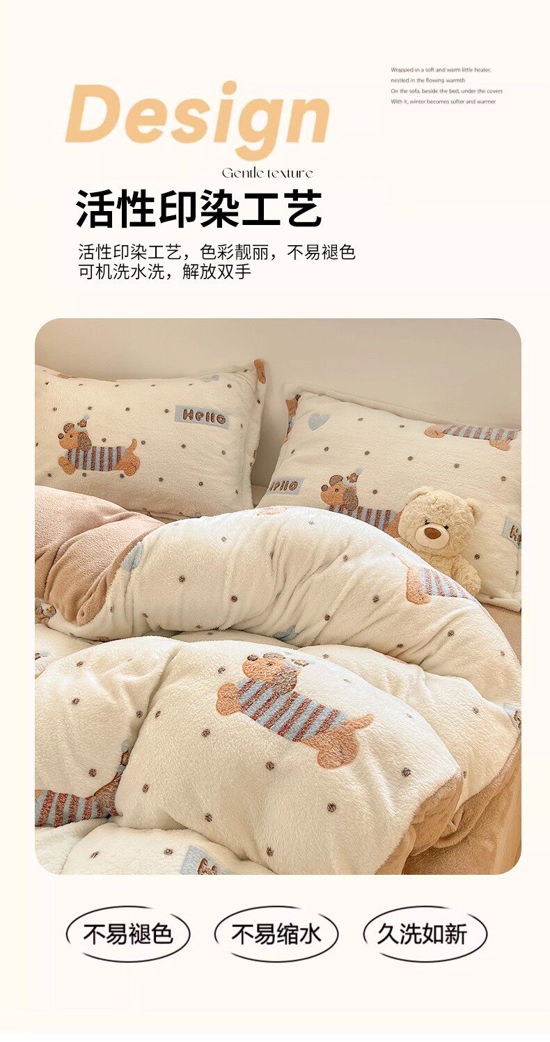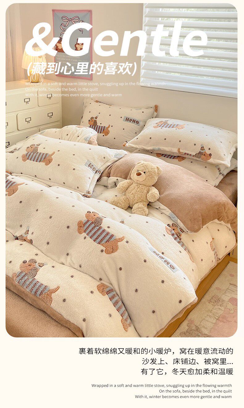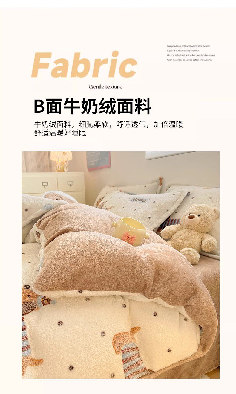 Winter Double-Sided Thickeneded Milk Coral Velvet Quilt Cover Single Piece Fleece-Lined 150X200 Flannel Quilt Cover Three or Four Piece Set