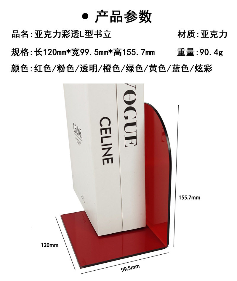 | Color | Clear and white [3mm bookend],Burgundy [3mm bookend],Vibrant orange [3mm bookend],Lemon yellow [3mm bookend],Pine and cypress green [3mm bookend],Sky blue [3mm bookend],Elegant pink [3mm bookend],Colorful [3mm bookend] different colors in different lights |