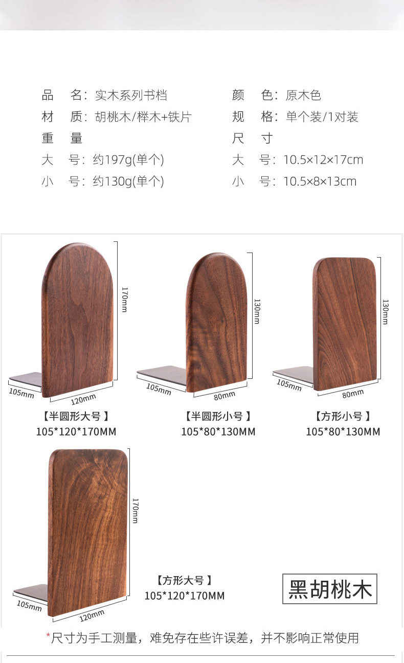 | Color | Beech wood round head bookend small,Beech square head bookend small,Walnut round head bookend small,Walnut square head bookend small,Large beech wood round head bookend,Large beech wood square head bookend,Walnut round head bookend large,Walnut square head bookend large,Beech bear bookend small,Walnut bear bookend small,Beech smiley bookend small,Walnut smiley bookend small,A pair of small beech wood round head bookends,A pair of small beech wood square head bookends,A pair of small walnut round-head bookends,A pair of small walnut square head bookends,A pair of large beech wood round head bookends,A pair of large beech square head bookends,A pair of large walnut round-head bookends,A pair of large walnut square head bookends,A pair of small beech bear bookends,A pair of small walnut bear bookends,A pair of small beech wood smiley face bookends,Walnut smiley bookends small pair |