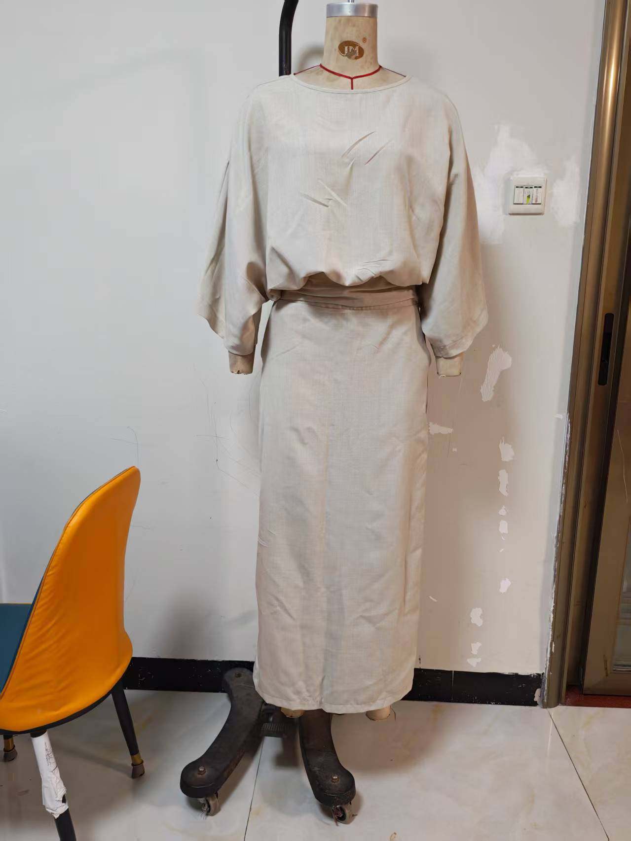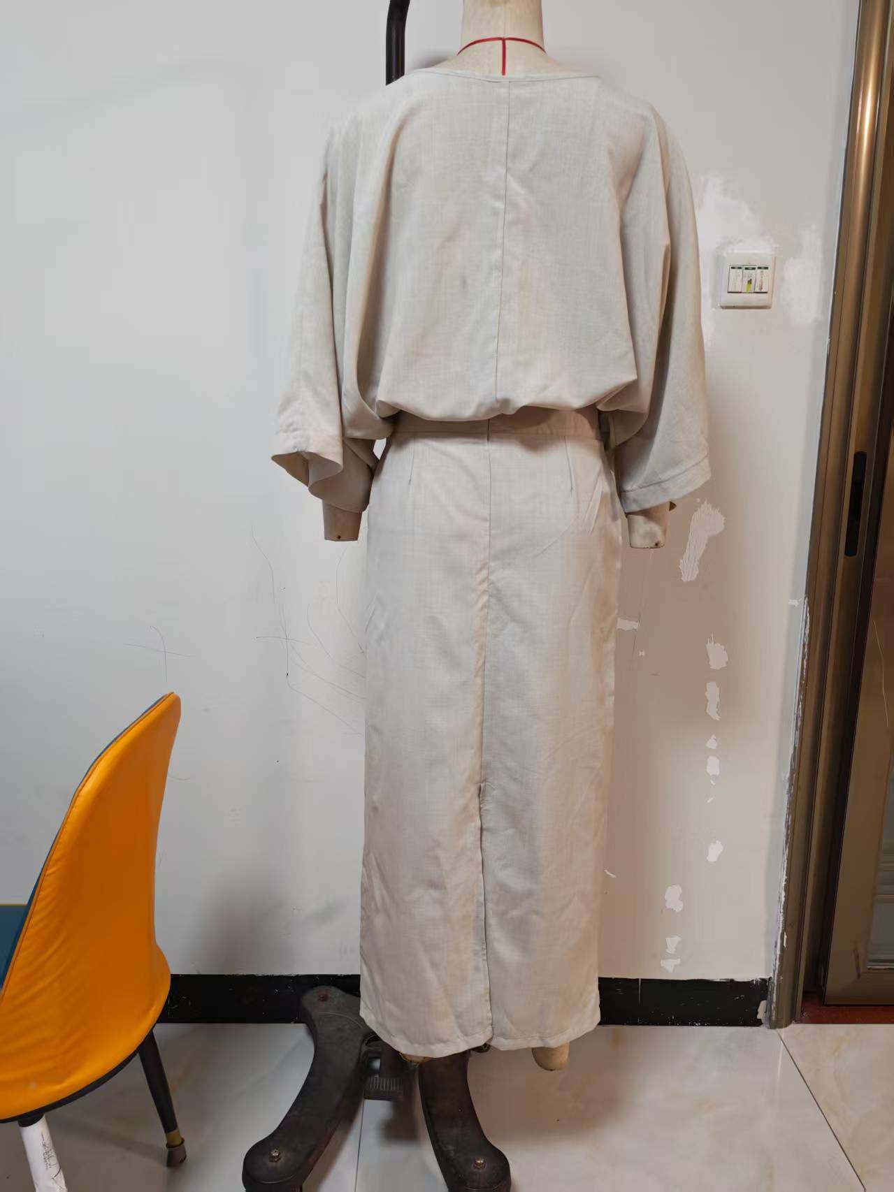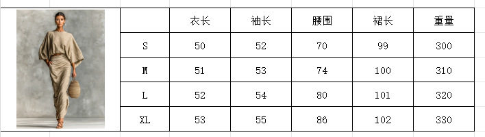 In-Stock Cross-Border Foreign Trade Women's Cotton and Linen Autumn and Winter Matching Set Batwing Sleeve Top Versatile Pocket Back Slit Long Skirt
