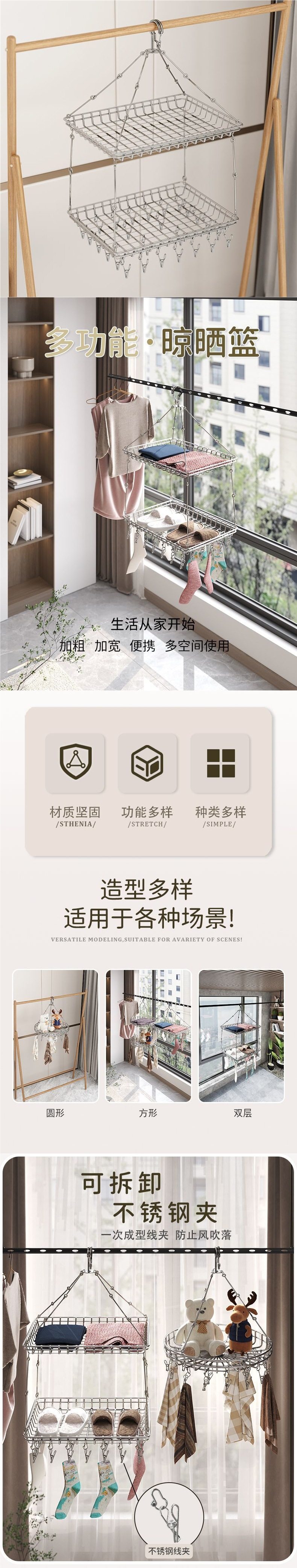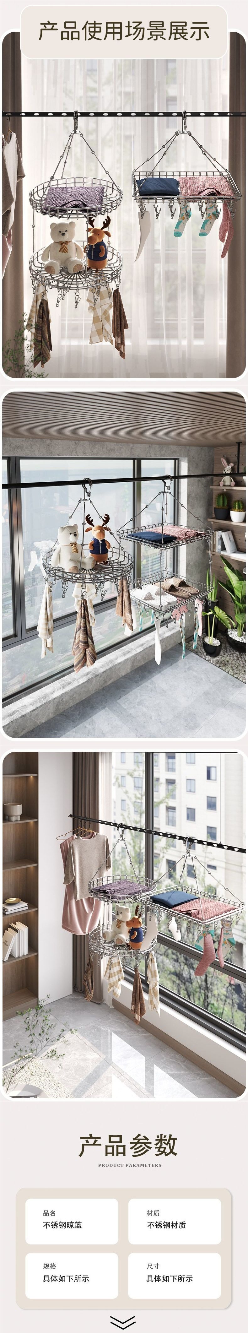Stainless Steel Clothes Drying Basket, Single or Double Layer Household Net for Drying Sweaters and Socks, Magic Hanging Rack