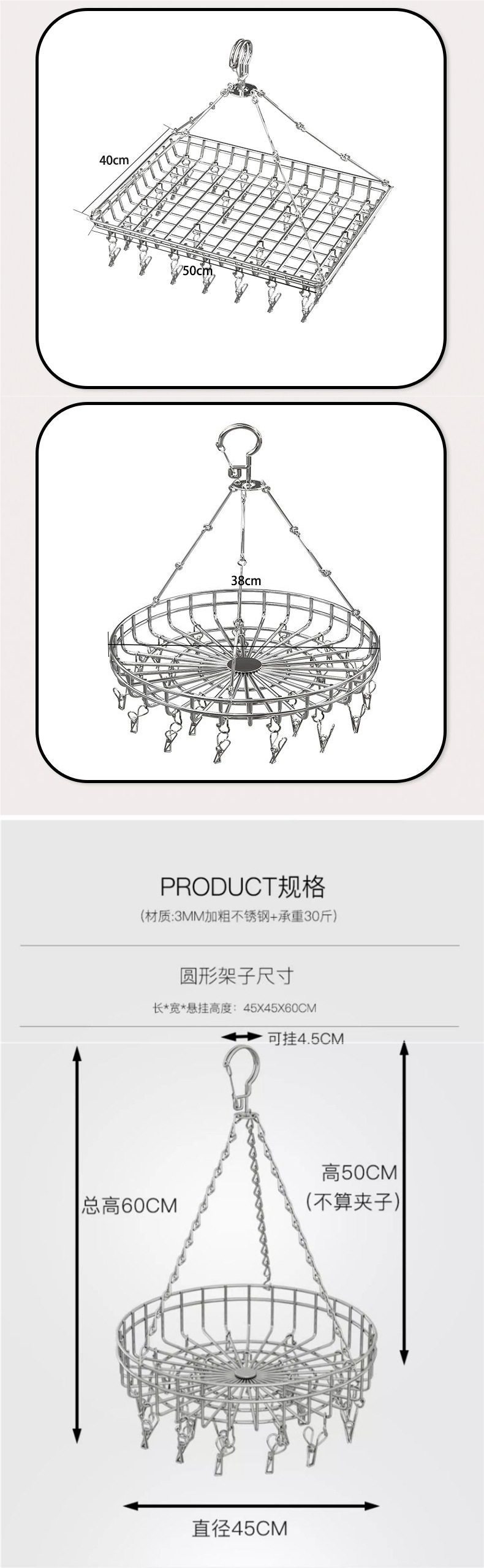 | Color | Single layer round 38cm,Single layer round 38cm with 20 clips,Double layer round 38+42cm,Double layer round 38+42cm with 20 clips,Single layer round 42cm,Single layer round 42cm with 20 clips,Double layer round 42+47cm,Double layer round 42+47cm with 20 clips,Single layer round 52cm,Single layer round 52cm with 20 clips,Double layer round 47+52cm,Double layer round 47+52cm with 20 clips,Single layer square 45+45cm,Single layer square 45cm with 10 clips + 6 sock clips,Single layer 50*35cm,Single layer 50*35cm with 20 clips,Single layer 55*40cm,Single layer 55*40cm with 20 clips,Single layer 60*45cm,Single layer 60*45cm with 20 clips,Single layer 70*55cm,Single layer 70*55cm with 20 clips,Single layer 55*40cm-4 hooks,Single layer 55*40cm-4 hooks and 20 clips,Double layer 50*35+55*40cm,Double layer 50*35+55*40cm with 20 clips,Three layers 55*40cm with 20 clips,Double layer square 45+45cm,Double layer square 45cm with 10 clips + 6 sock clips,Double layer 65*50+70*55cm,Double layer 65*50+70*55cm with 20 clips,Single layer oval 60*45cm,Single layer oval 60*45cm with 20 clips,Double layer oval 60*45cm,Double layer oval 60*45cm with 20 clips |