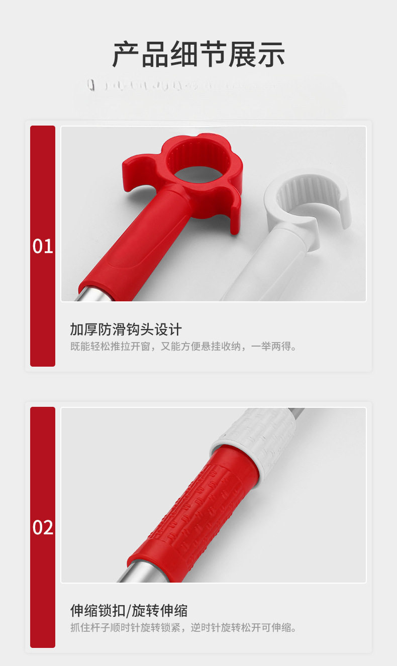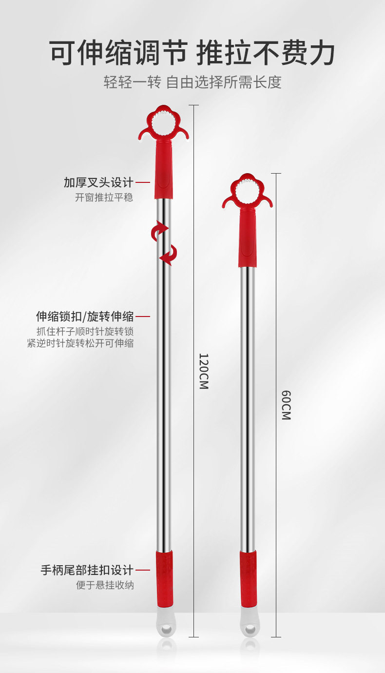 Window Opening Tool for Doors and Windows, Auxiliary Rod for Opening Windows, Bay Window Skylight, Internal and External Window Opening and Closing, Sliding Telescopic Rod, Clothes Rod Fork