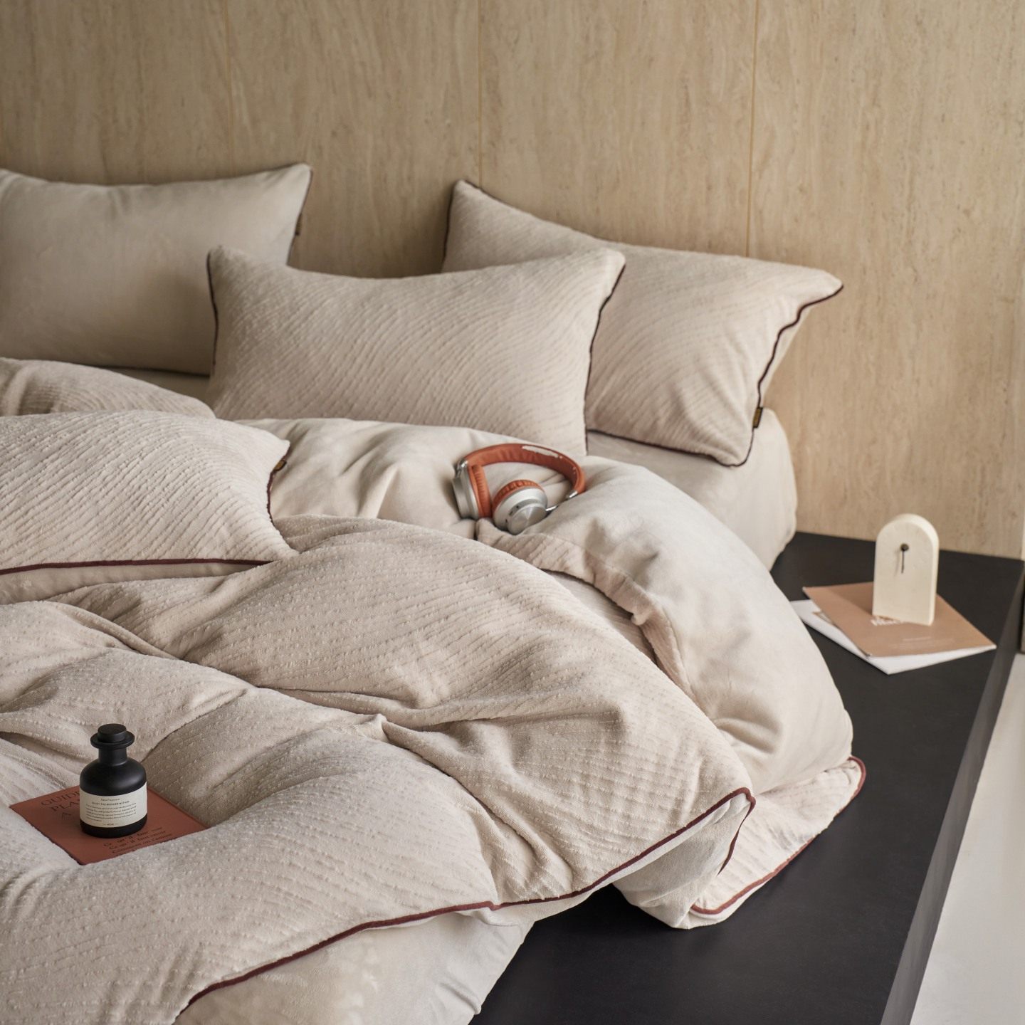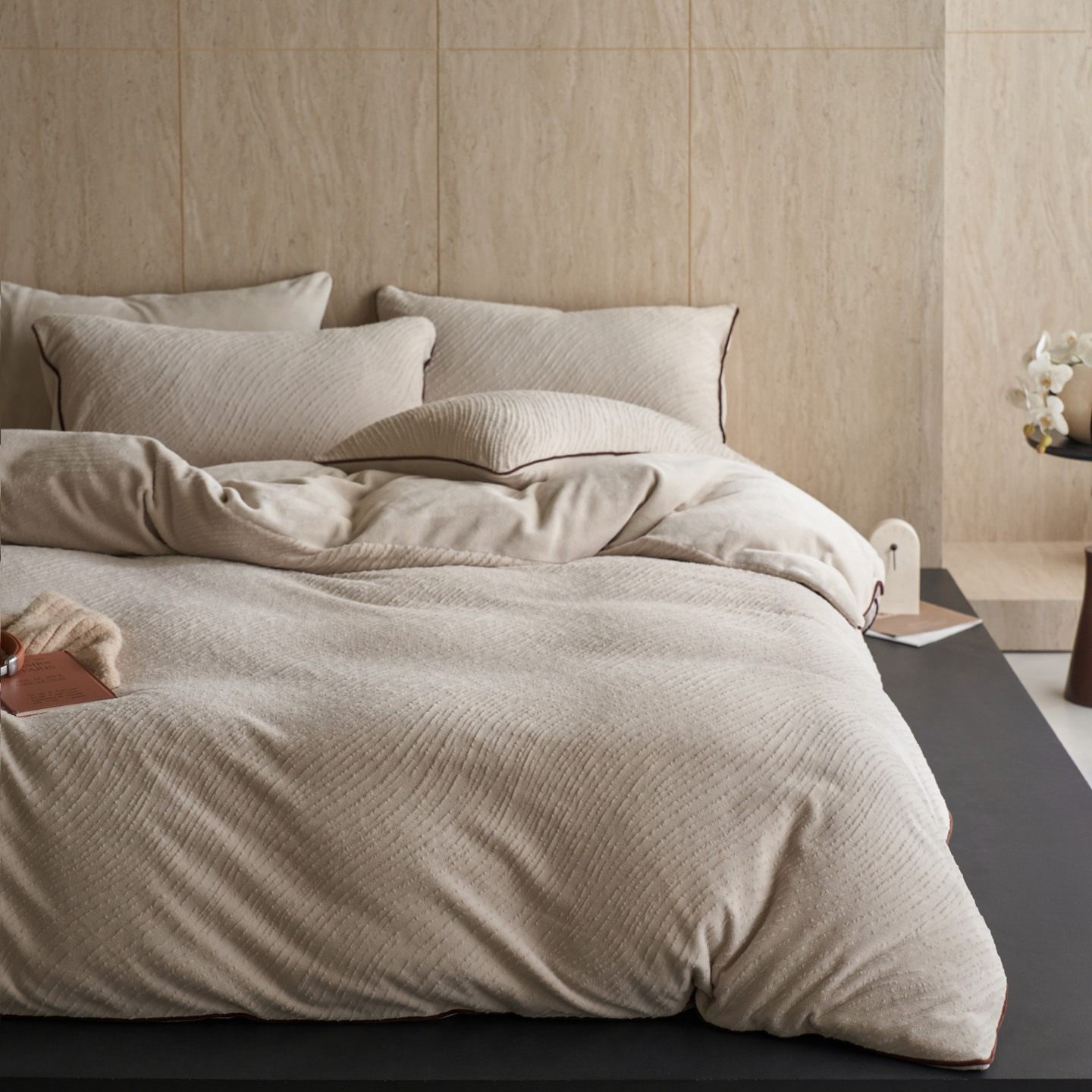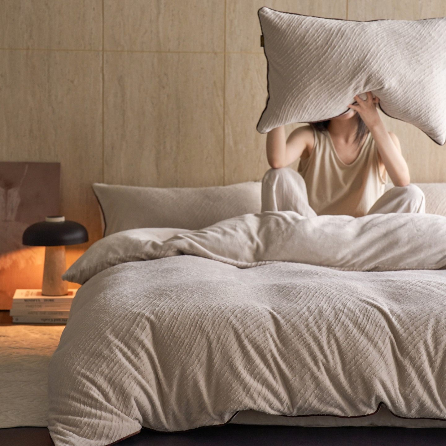 Class a Pure Color Autumn and Winter Thickeneded Carved Milk Velvet Bedding Four-Piece Set with Corded Warm Quilt Cover Double-Sided Velvet