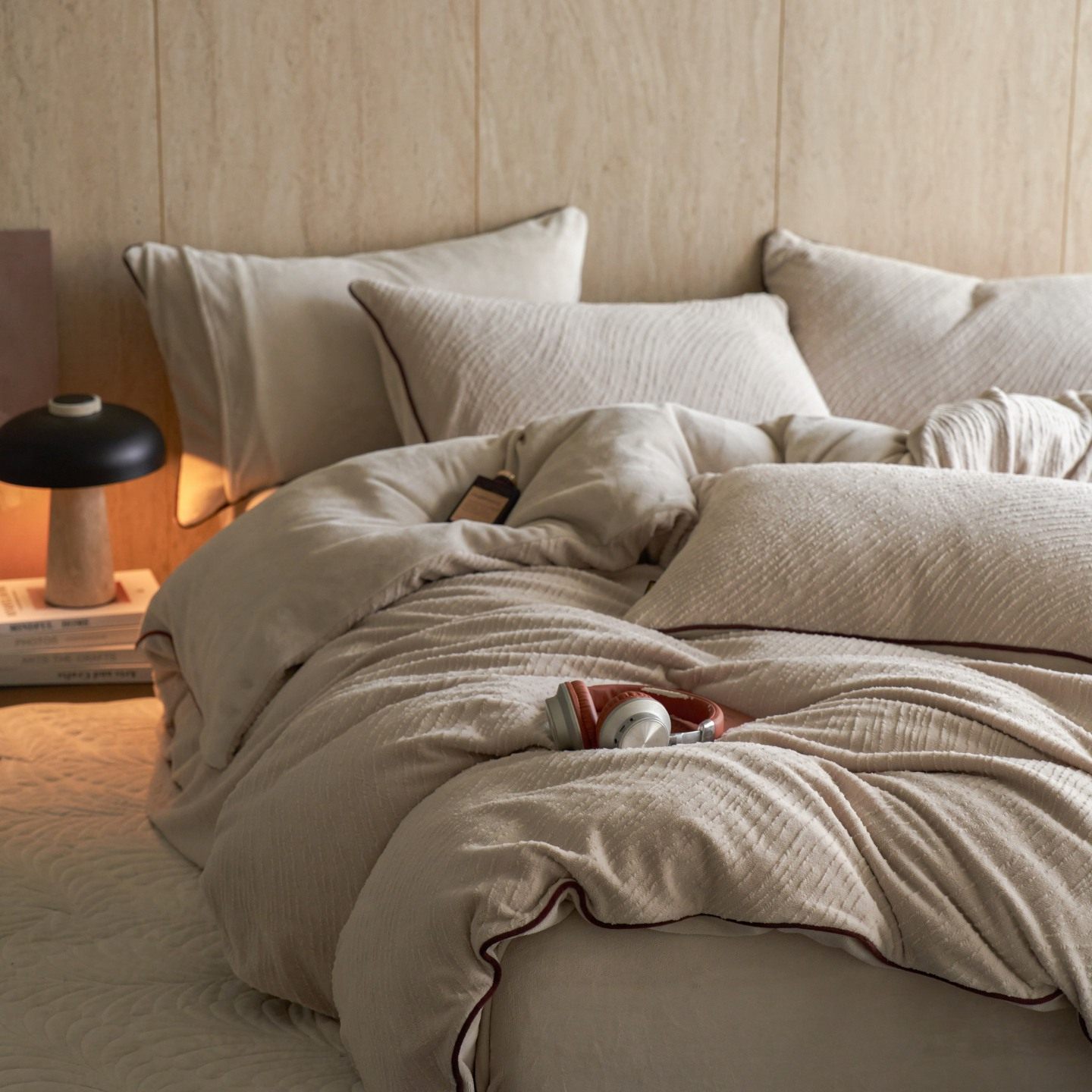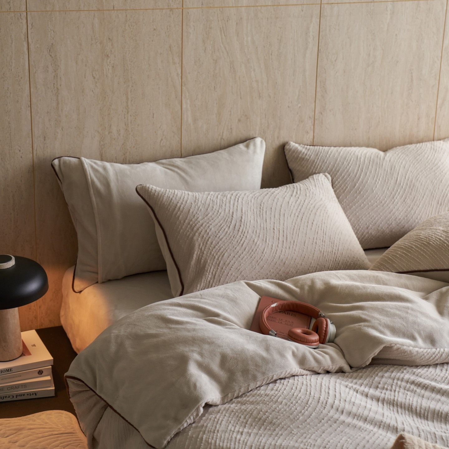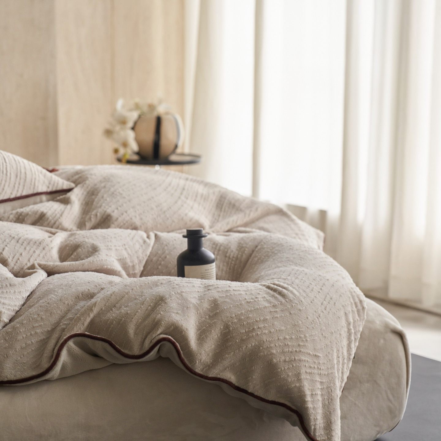 Class a Pure Color Autumn and Winter Thickeneded Carved Milk Velvet Bedding Four-Piece Set with Corded Warm Quilt Cover Double-Sided Velvet