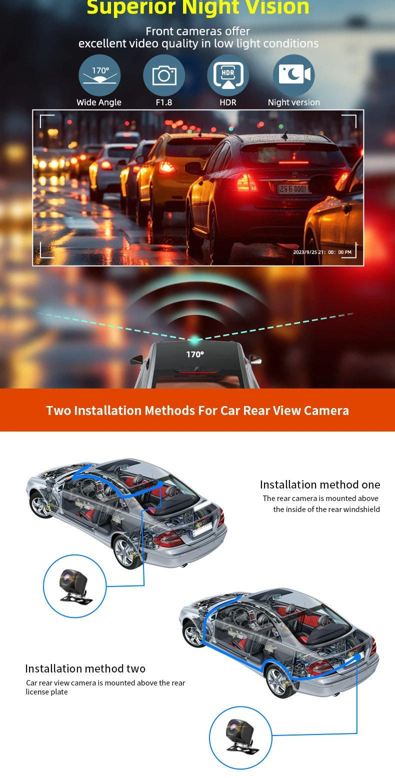 | Function | Reversing image,Loop recording,Parking monitoring,Collision sensor,Before and after video |