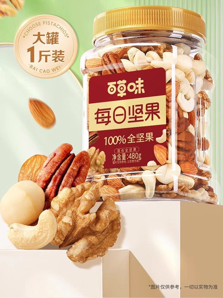 Baicaowei Canned Daily Nuts 500g Mixed Whole Dried Nuts Canned Casual Snacks Snacks Drop Shipping