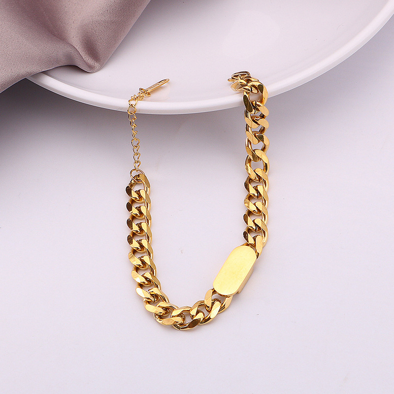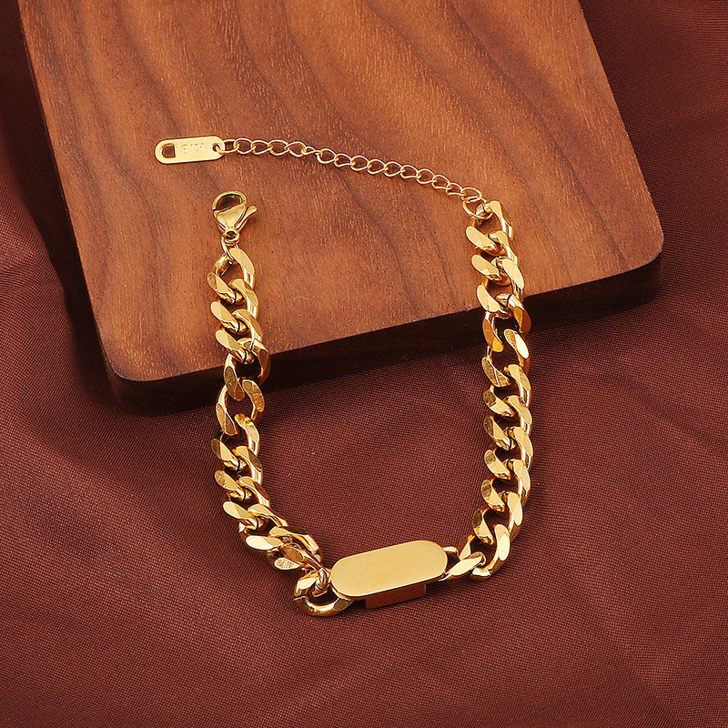 European and American Thick Chain Titanium Steel Bracelet for Women Trendy Internet Celebrity Ins Hip-Hop Niche Minimalist Wrist Chain Non-Fading Accessory