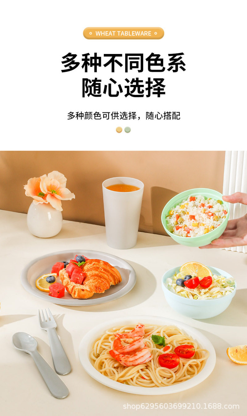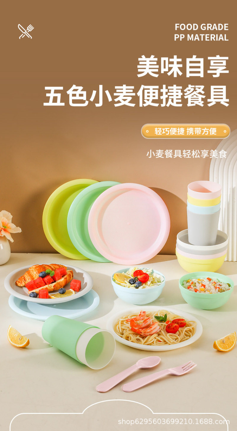 Children's Plastic Tableware Set with High Aesthetic Value, Hotel Dishware Set, Plates, Cups, Trays, Household Dining Plates for Eating