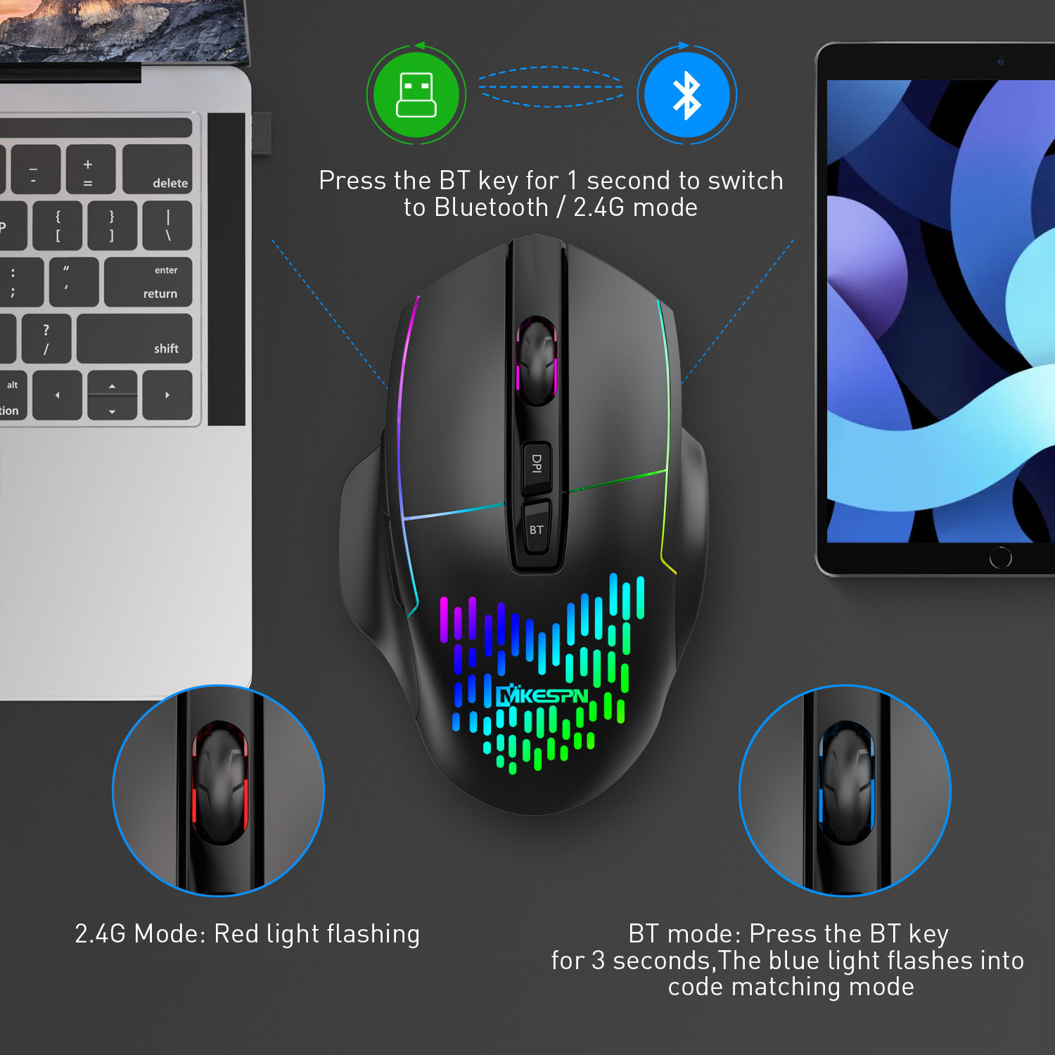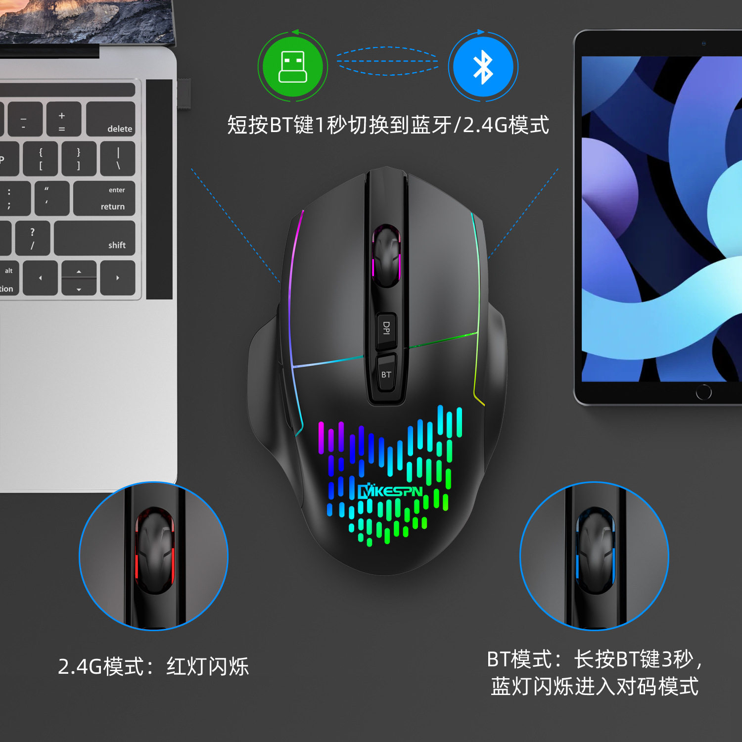 | Connection method with computer | 2.4g+bluetooth |