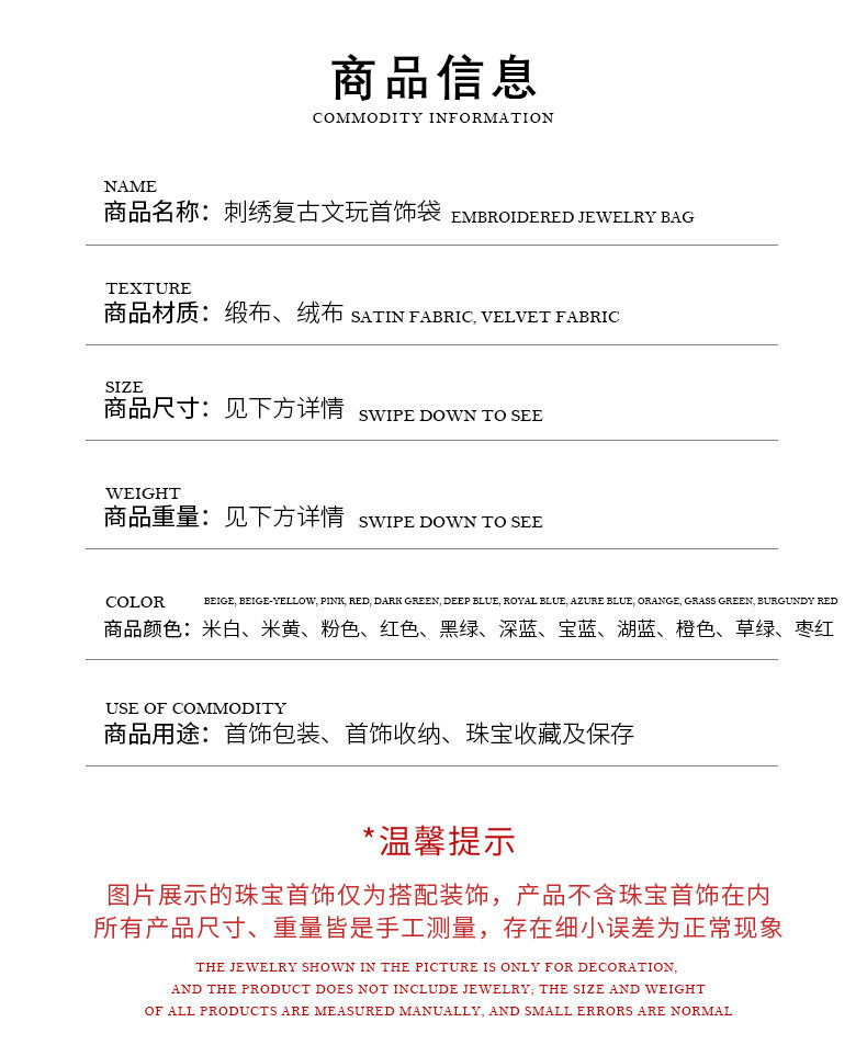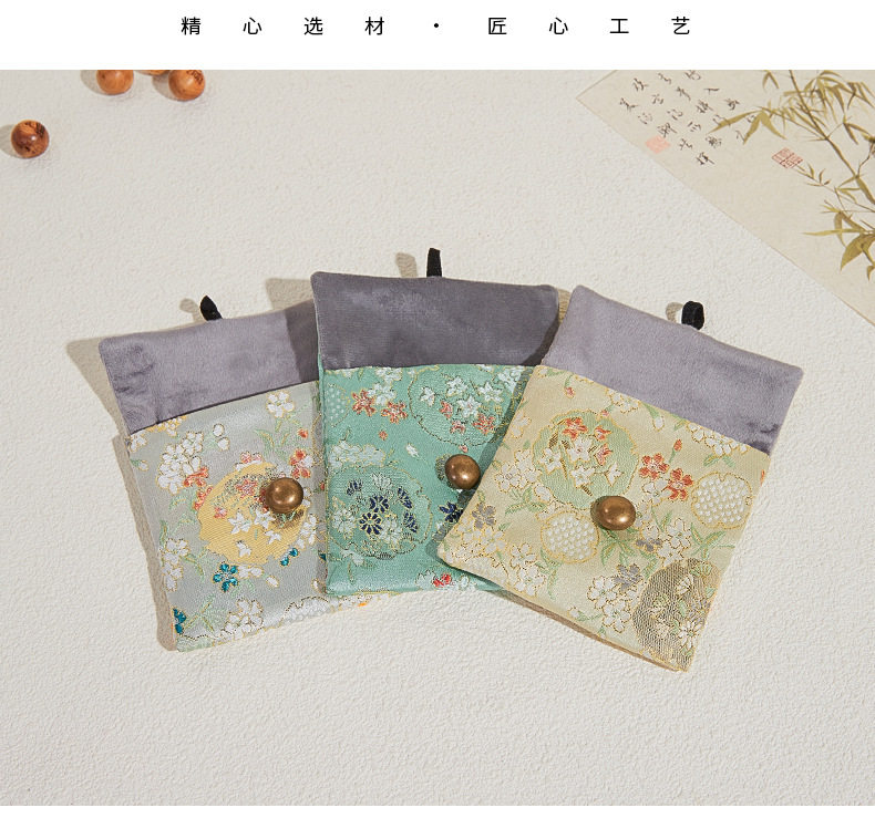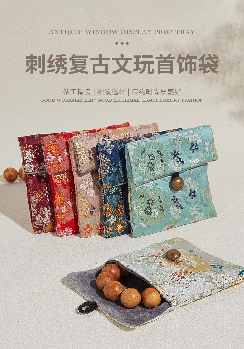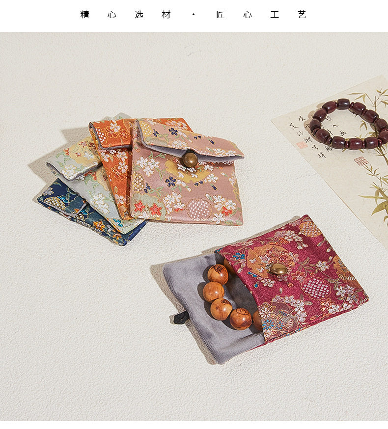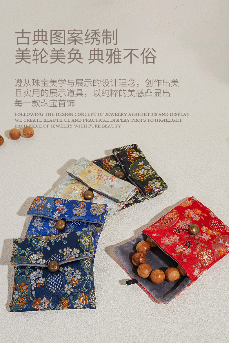 Pomegranate Flower Retro Jewelry Velvet Bag Gold and Silver Bracelet Ring Pearl Necklace Jewelry Storage Bag Cross-Border Ready Stock