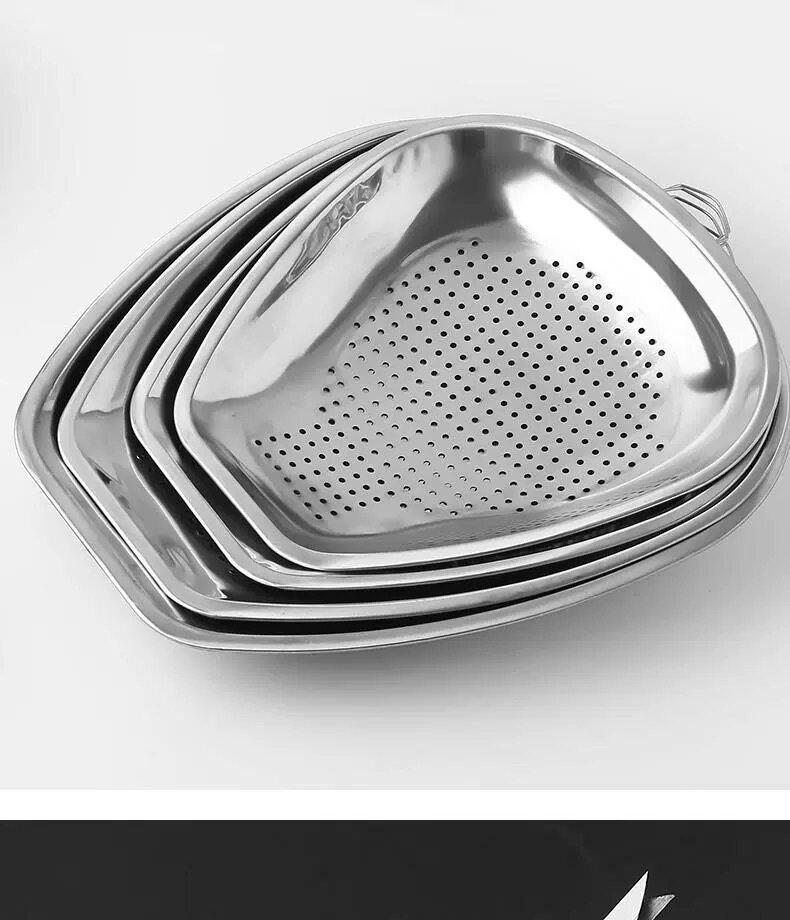 High-Quality Stainless Steel Colander, Non-Magnetic, Household Fruit and Vegetable Draining Basket, Multi-Purpose for Washing and Drying Vegetables, Large Kitchen with Fine Holes