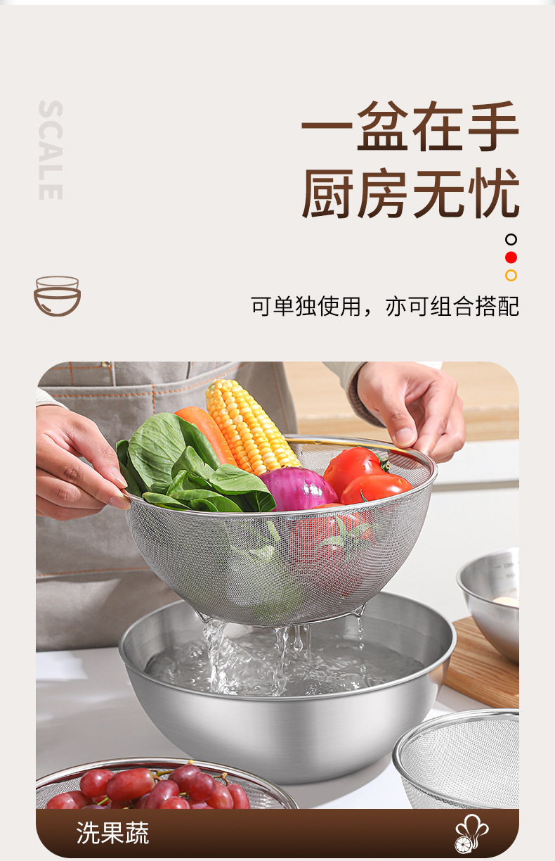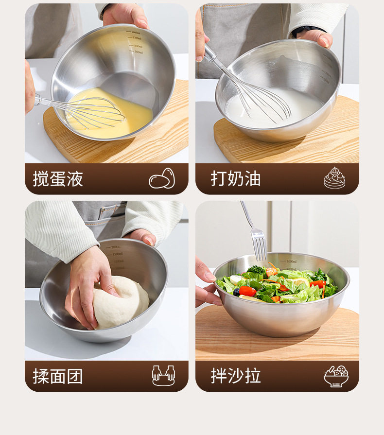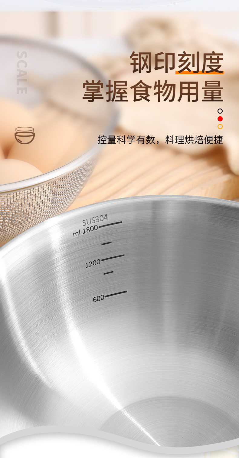 Stainless Steel Draining Basin Cooking Basin Kitchen Household with Scale Kneading Basin Japanese-Style Egg Beating Basin Mixing Baking Basin