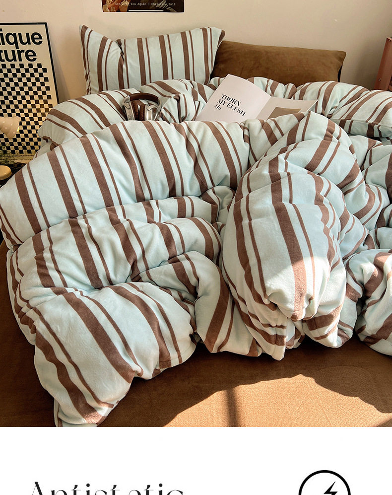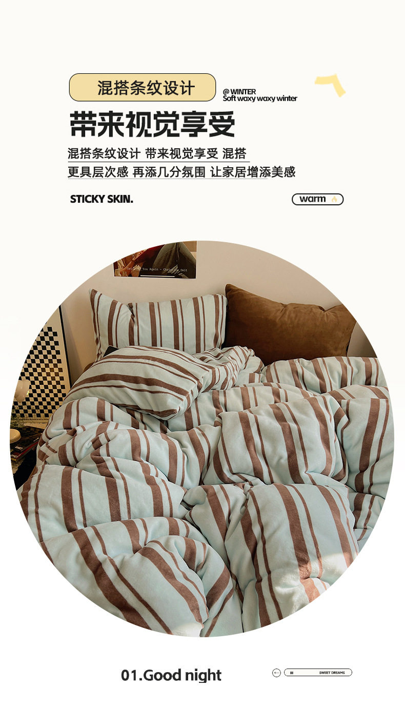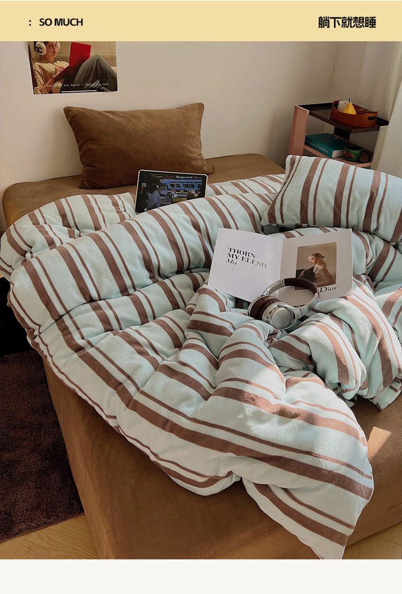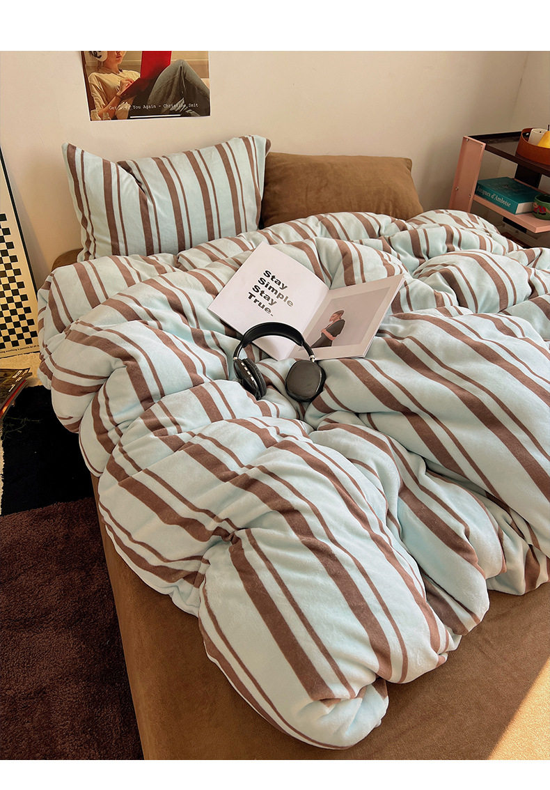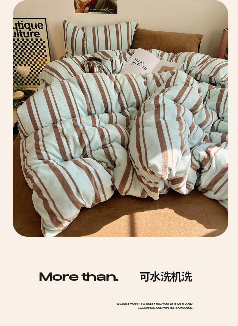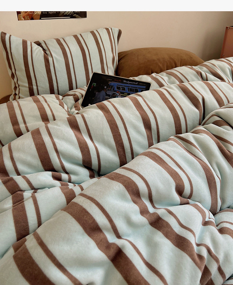 2025 New Mix and Match Stripesd Milk Velvet Four-Piece Set, One Pillowcase, Mint Chocolate
