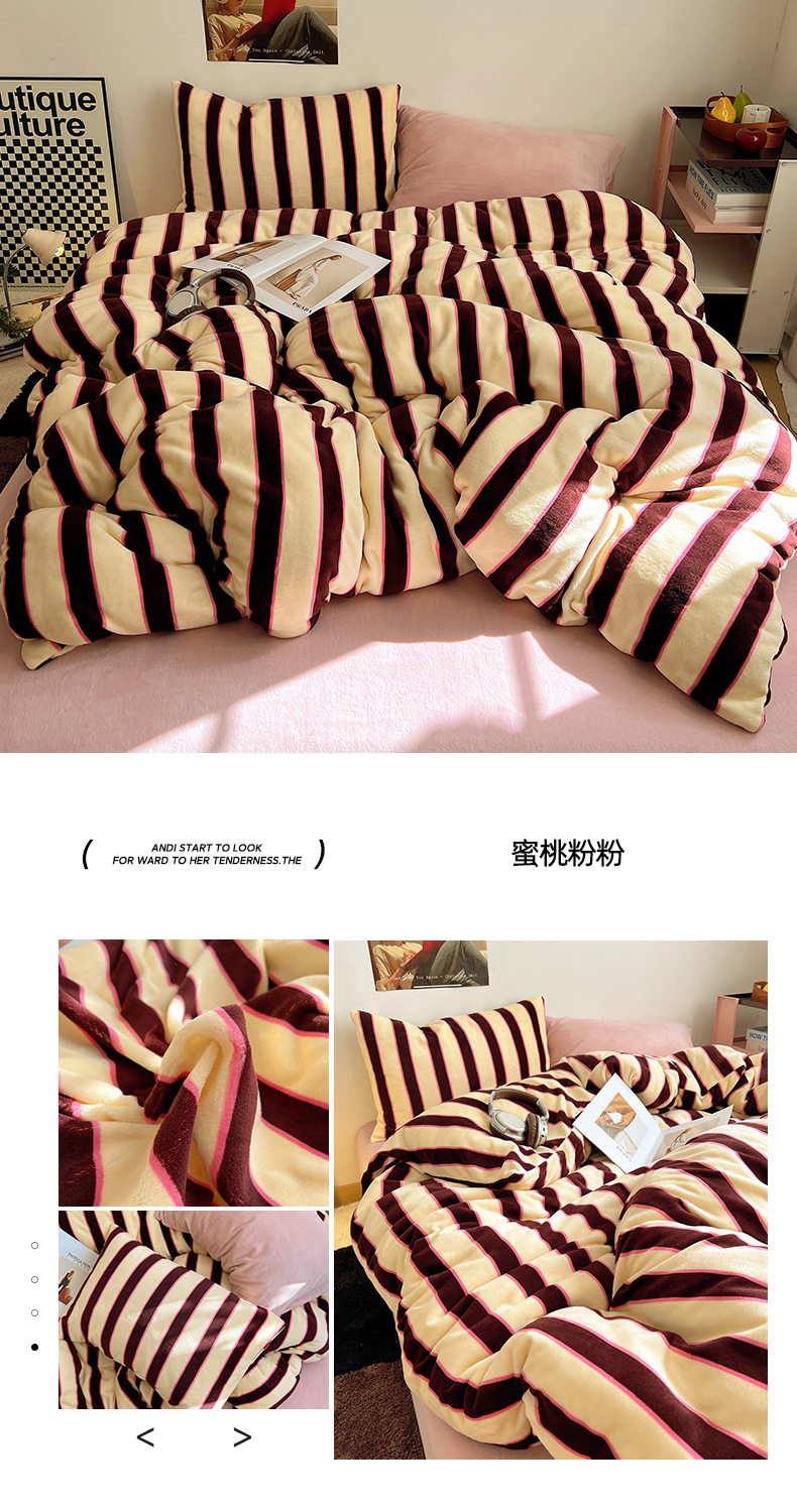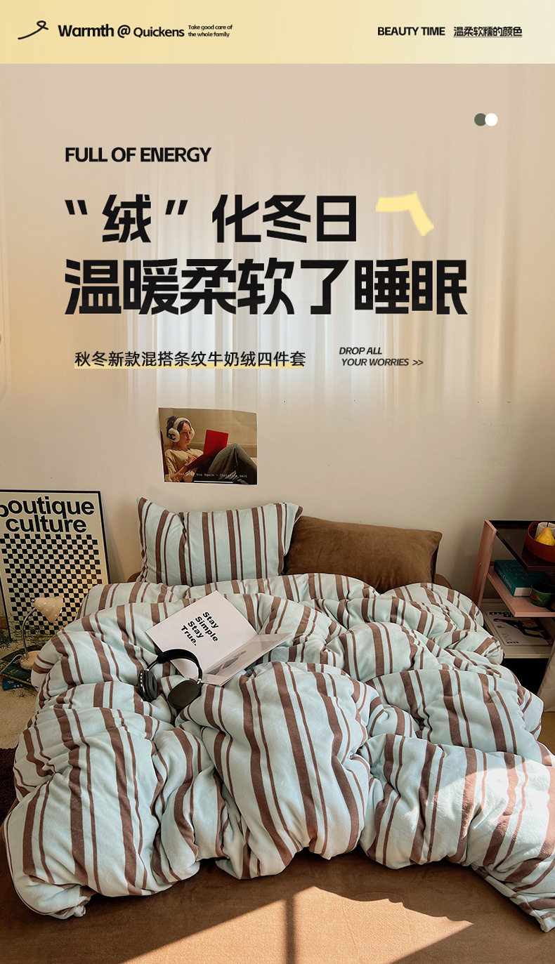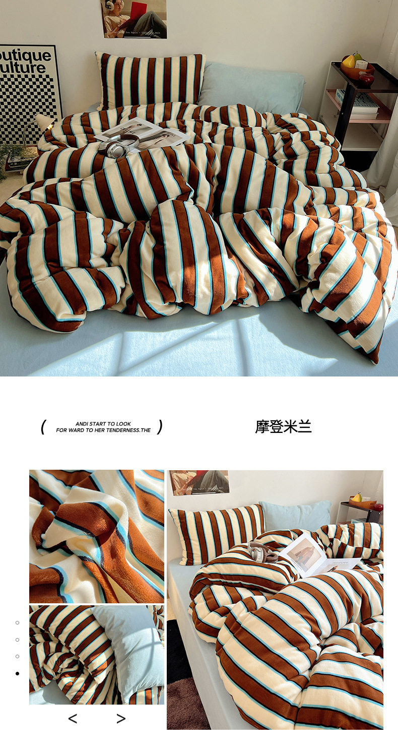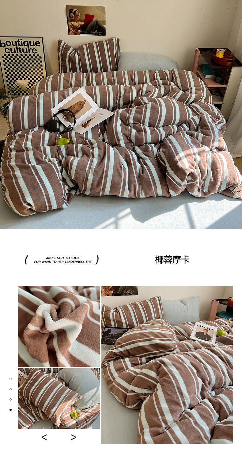 2025 New Mix and Match Stripesd Milk Velvet Four-Piece Set, One Pillowcase, Mint Chocolate