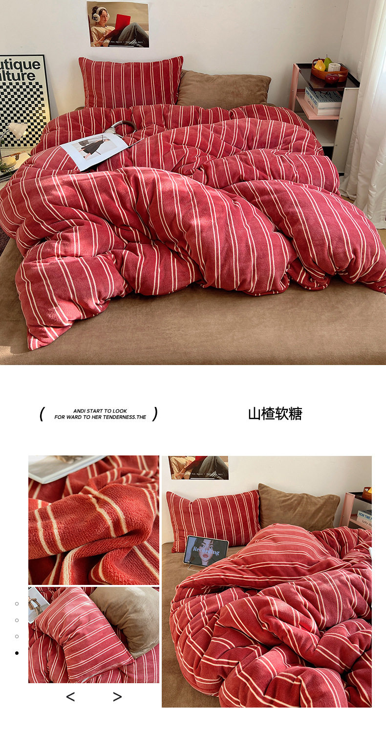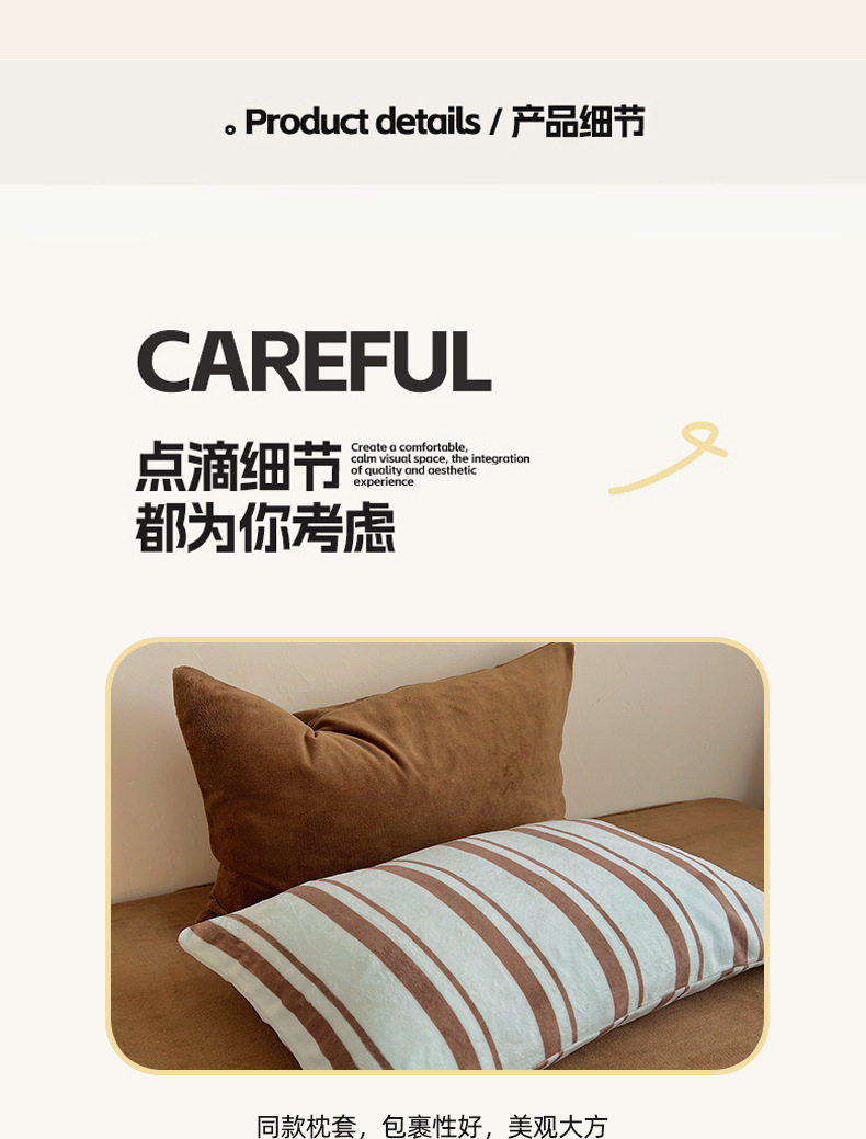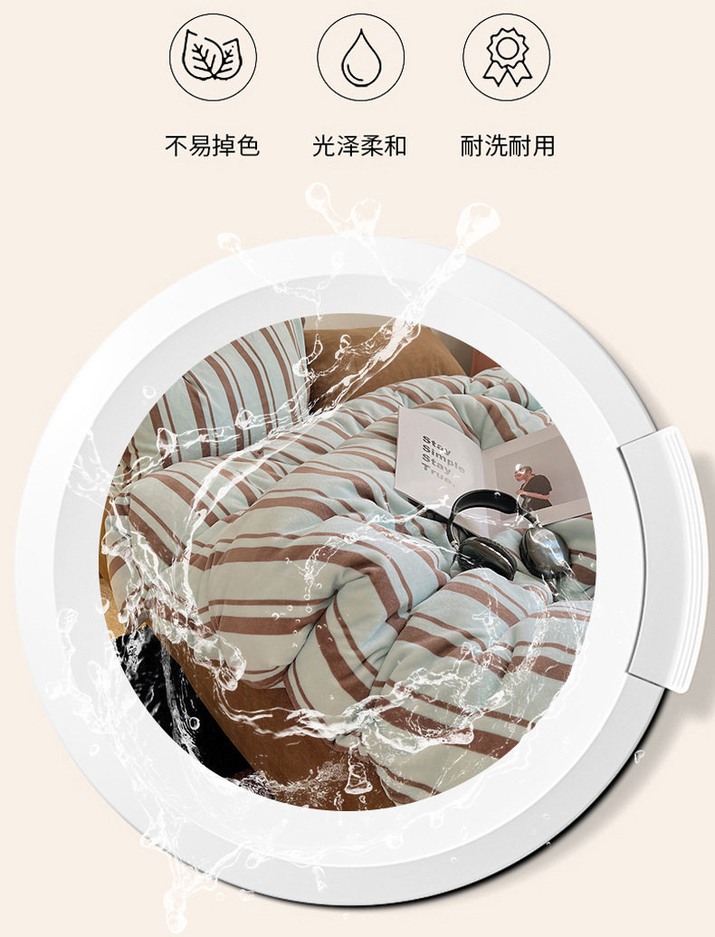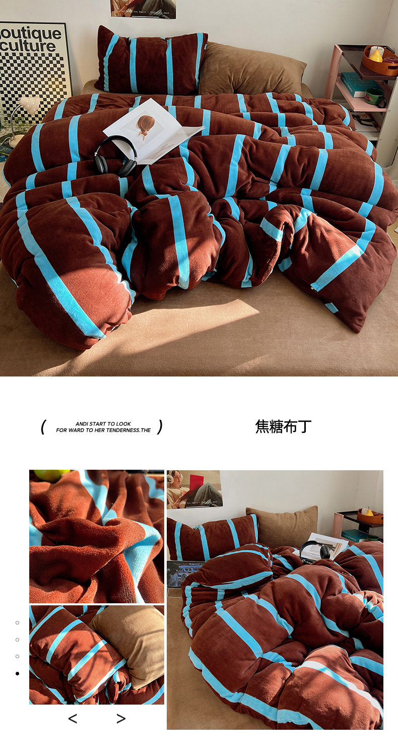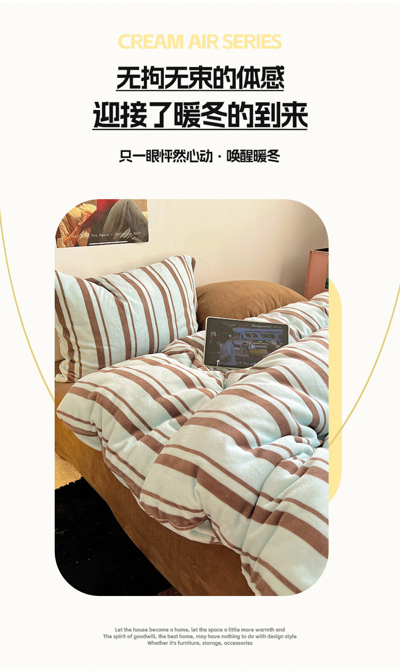 2025 New Mix and Match Stripesd Milk Velvet Four-Piece Set, One Pillowcase, Mint Chocolate
