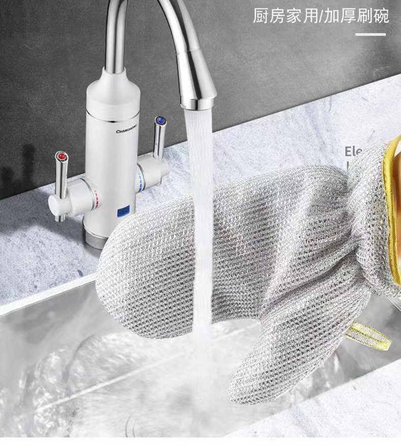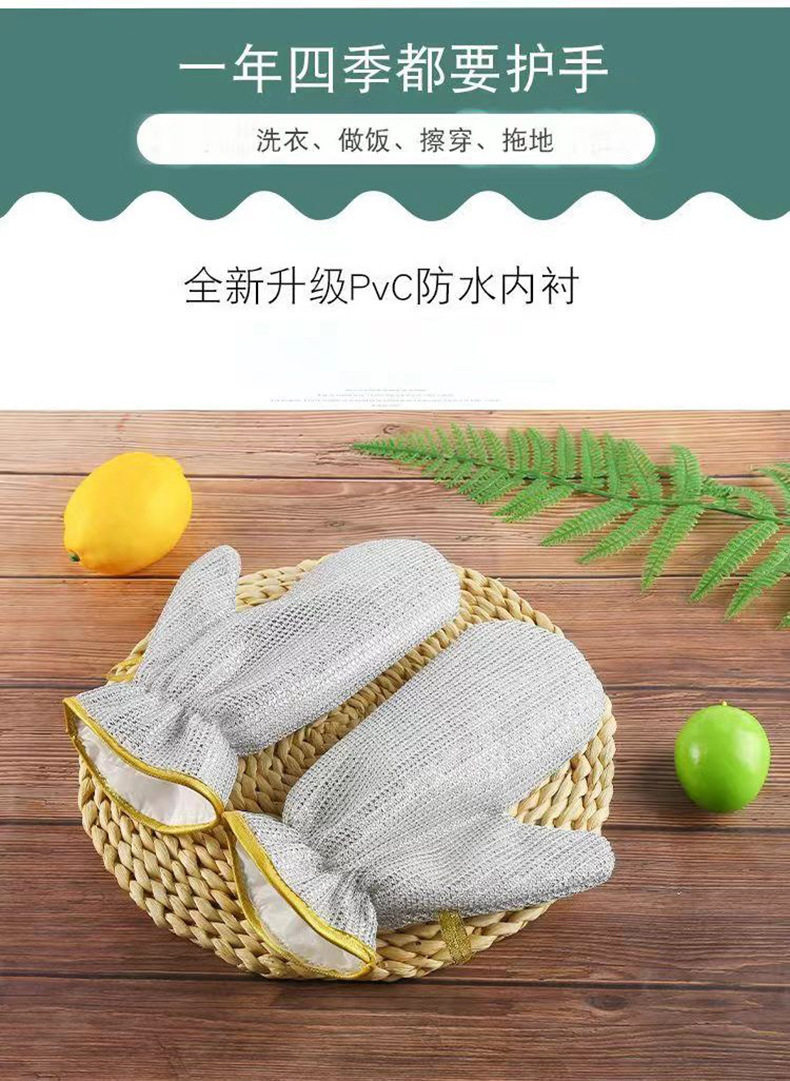 Thickened Silver Wire Dishwashing Gloves, Multifunctional Dishwashing Artifact, Non-Stick Oil, Waterproof Housework Gloves, Clean Kitchen and Durable