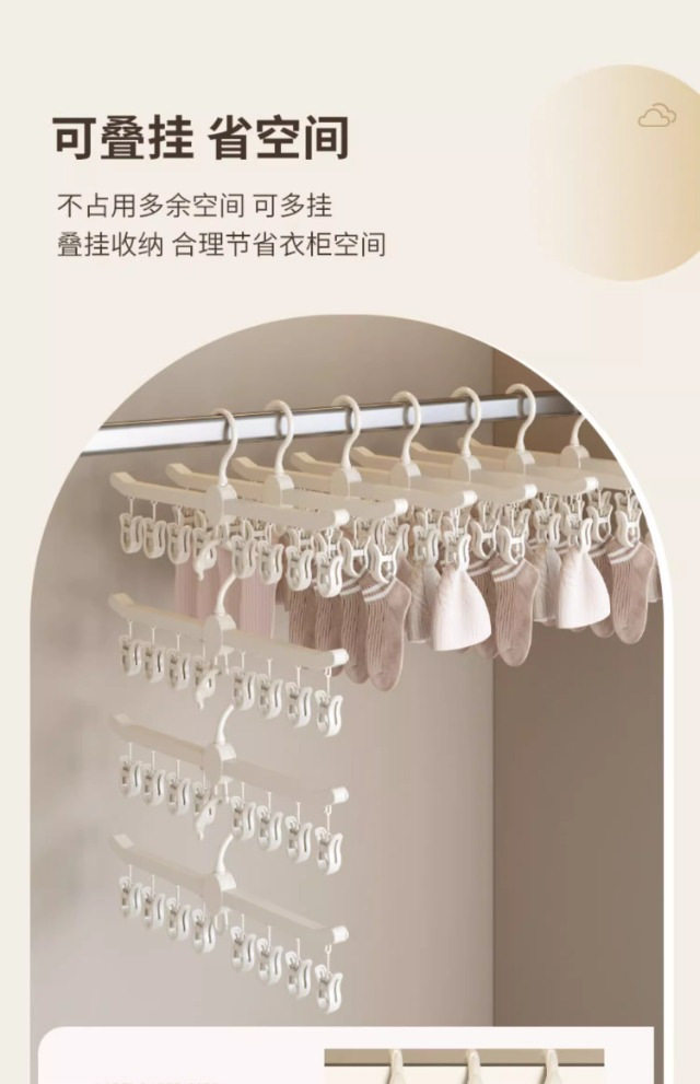 Sock Drying Rack Baby Clothes Hanger with Multiple Clips Children's Underwear Hanger Baby Household Gadget Multi-Clip Clothespin