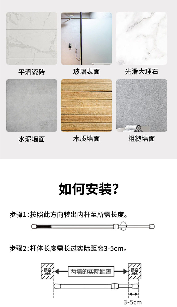 -10Y Free Shipping/T No-Drill Telescopic Rod A1P801 - Install Shower Curtain, Door Curtain, Curtain Rod, Retractable Rod, Thin