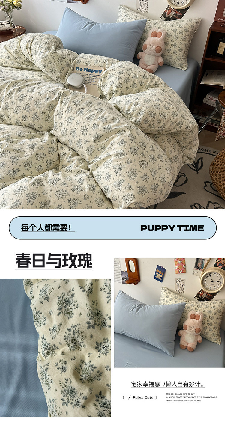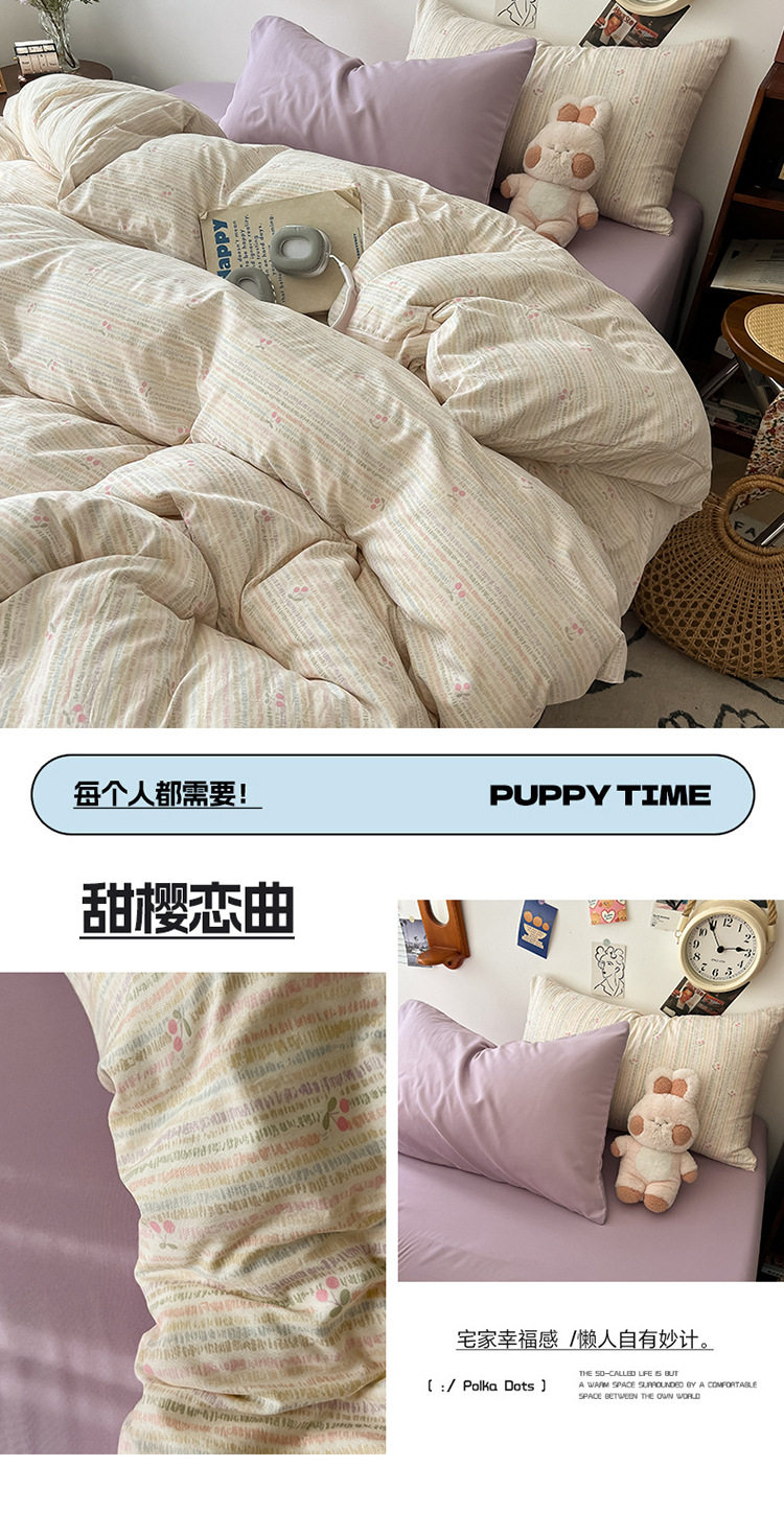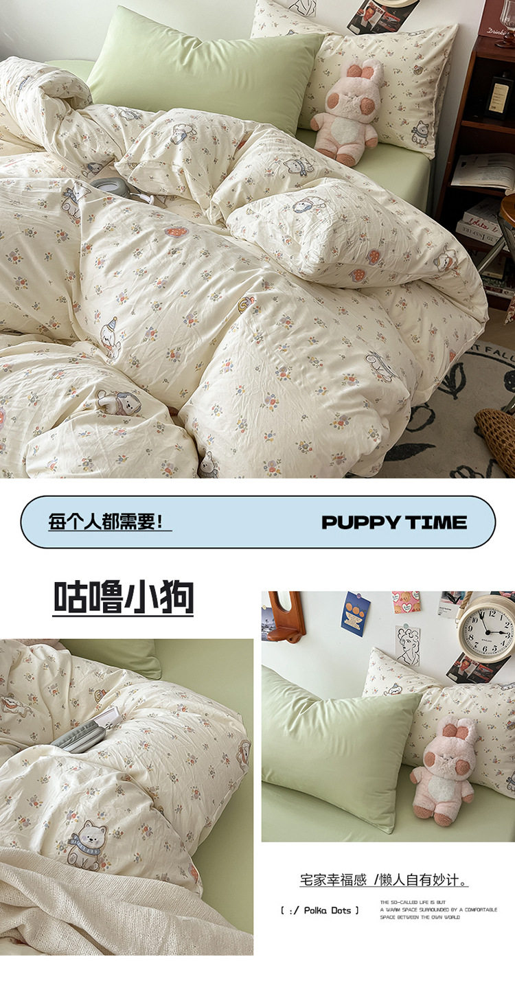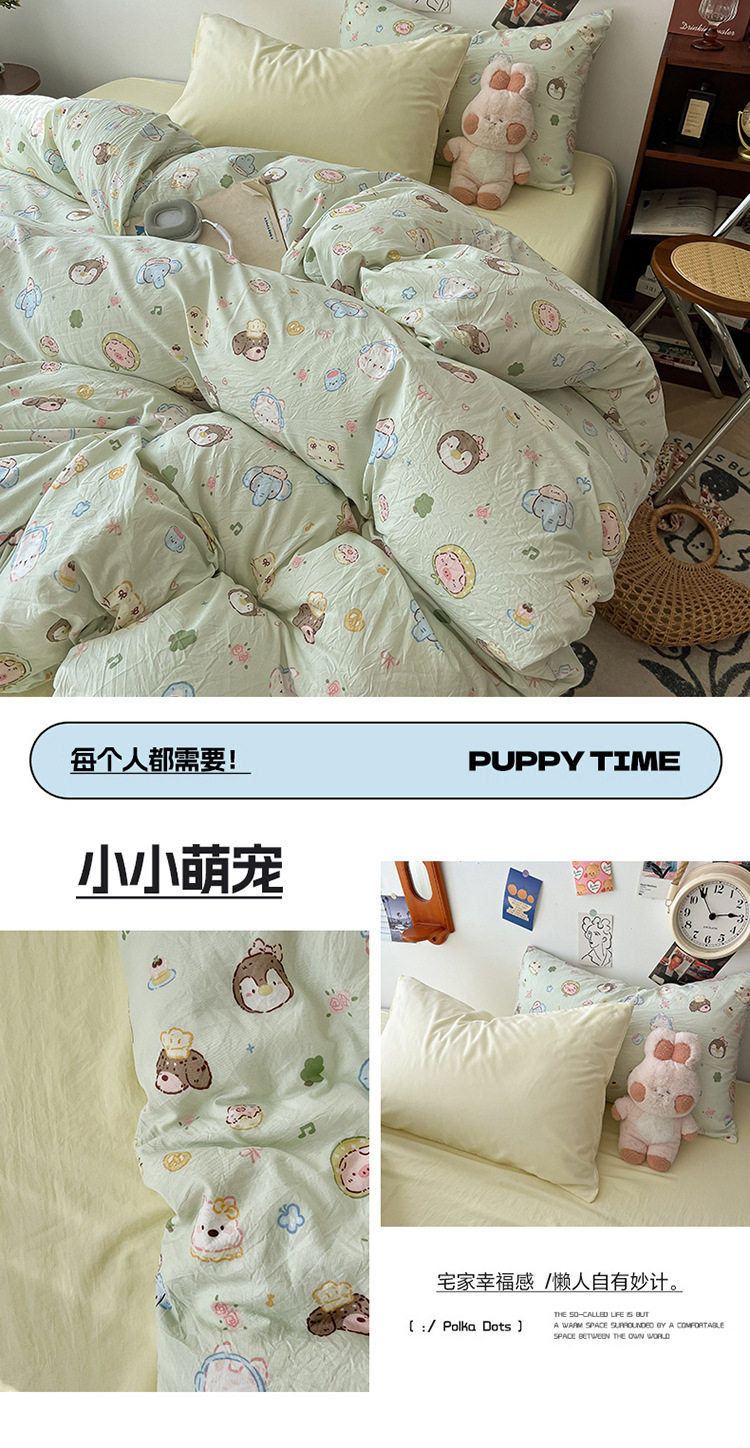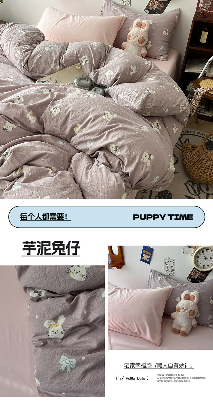 Class a Maternal and Infant-Grade Four-Piece Bedding Set, Ins-Style Pure Washed Cotton Bed Sheet, Duvet Cover, Fitted Sheet, Student Dormitory Three-Piece Set