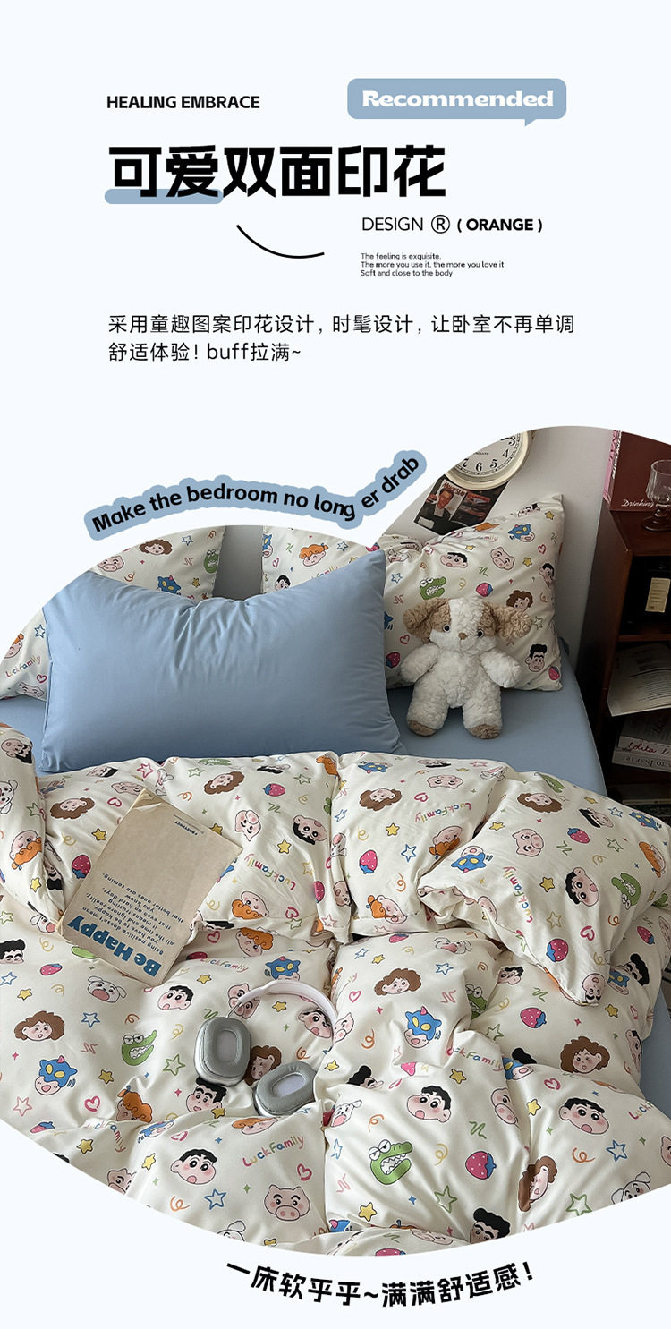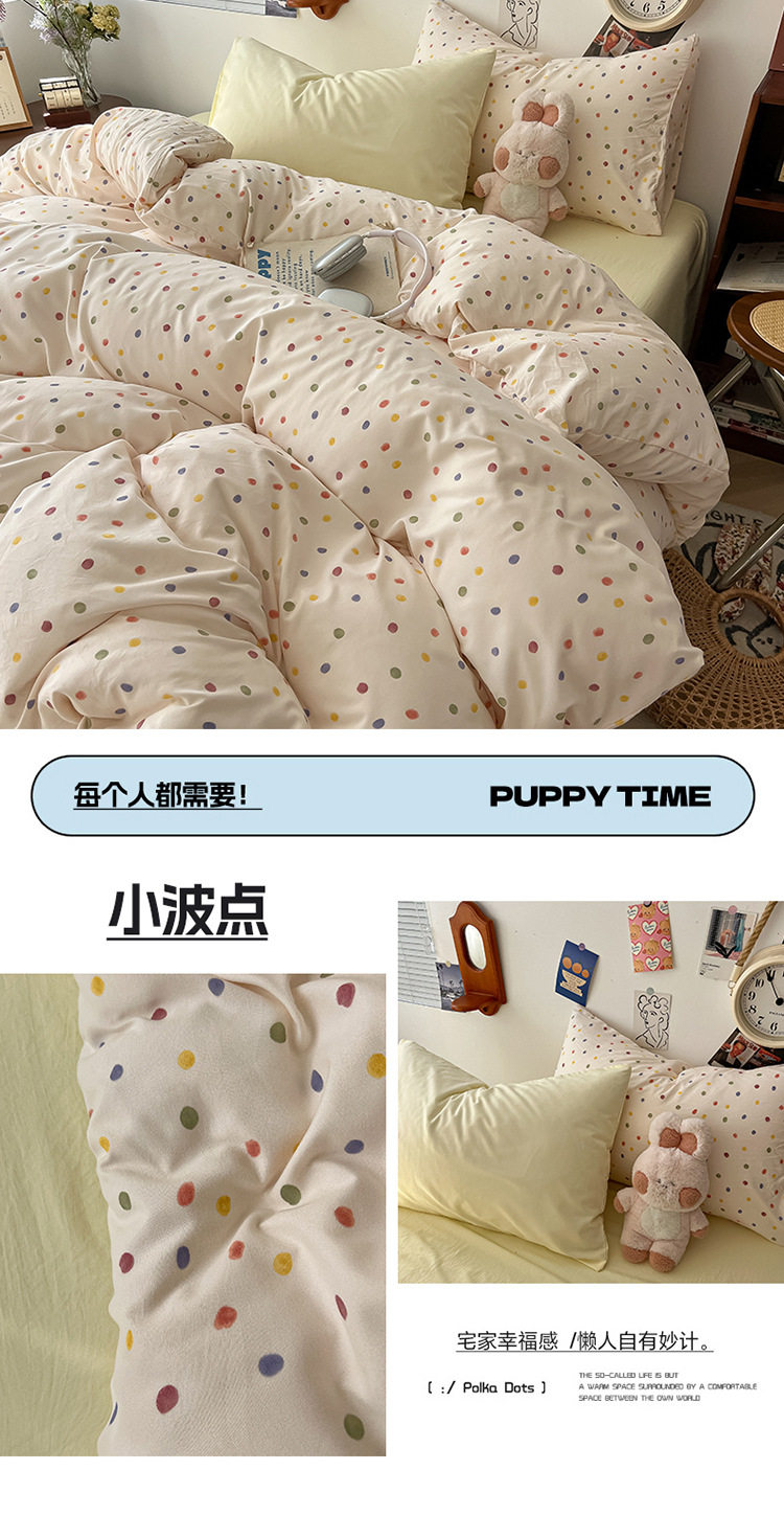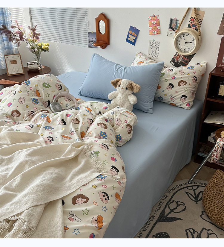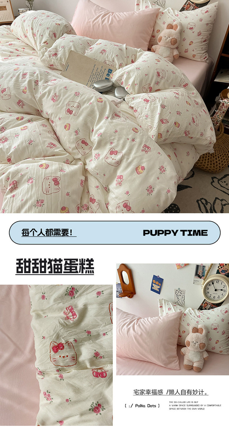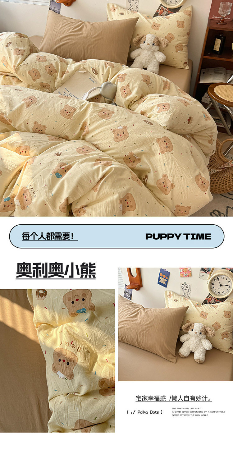 Class a Maternal and Infant-Grade Four-Piece Bedding Set, Ins-Style Pure Washed Cotton Bed Sheet, Duvet Cover, Fitted Sheet, Student Dormitory Three-Piece Set