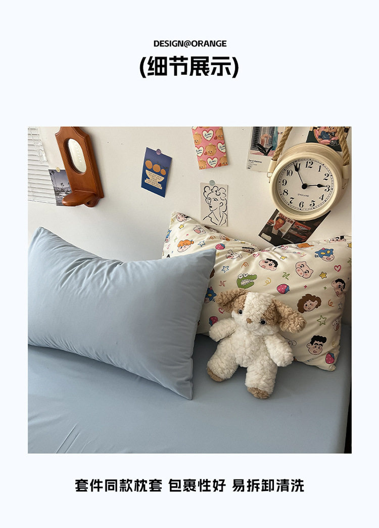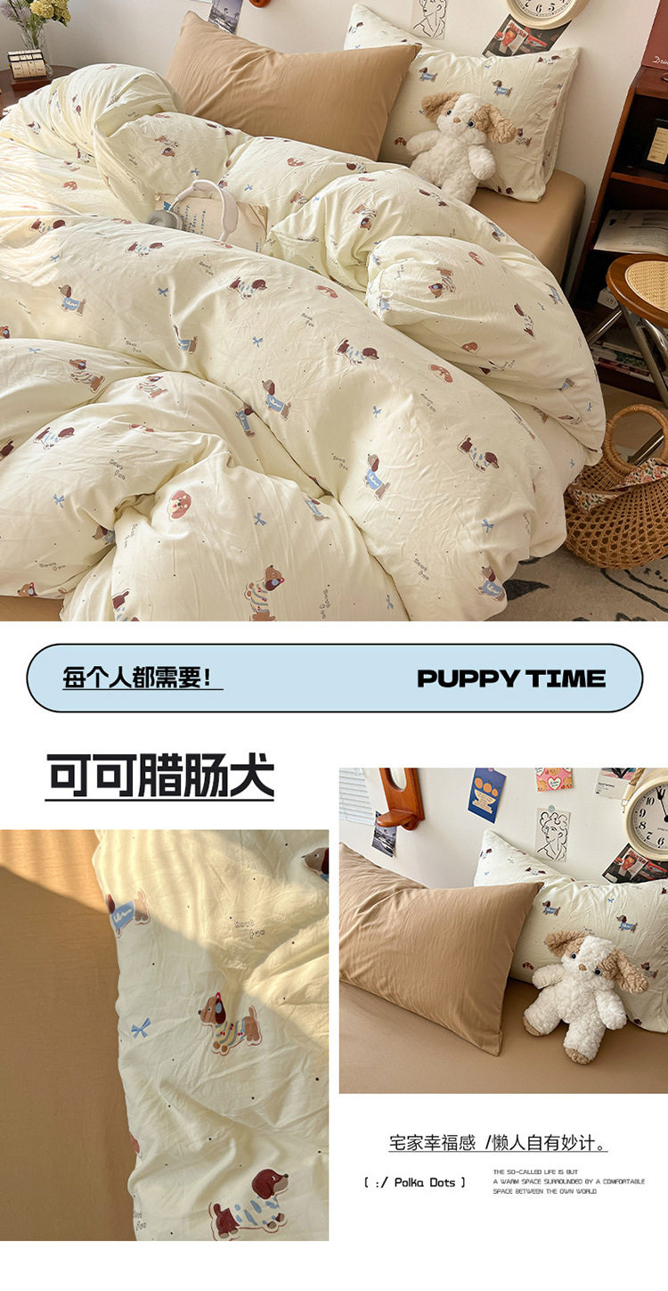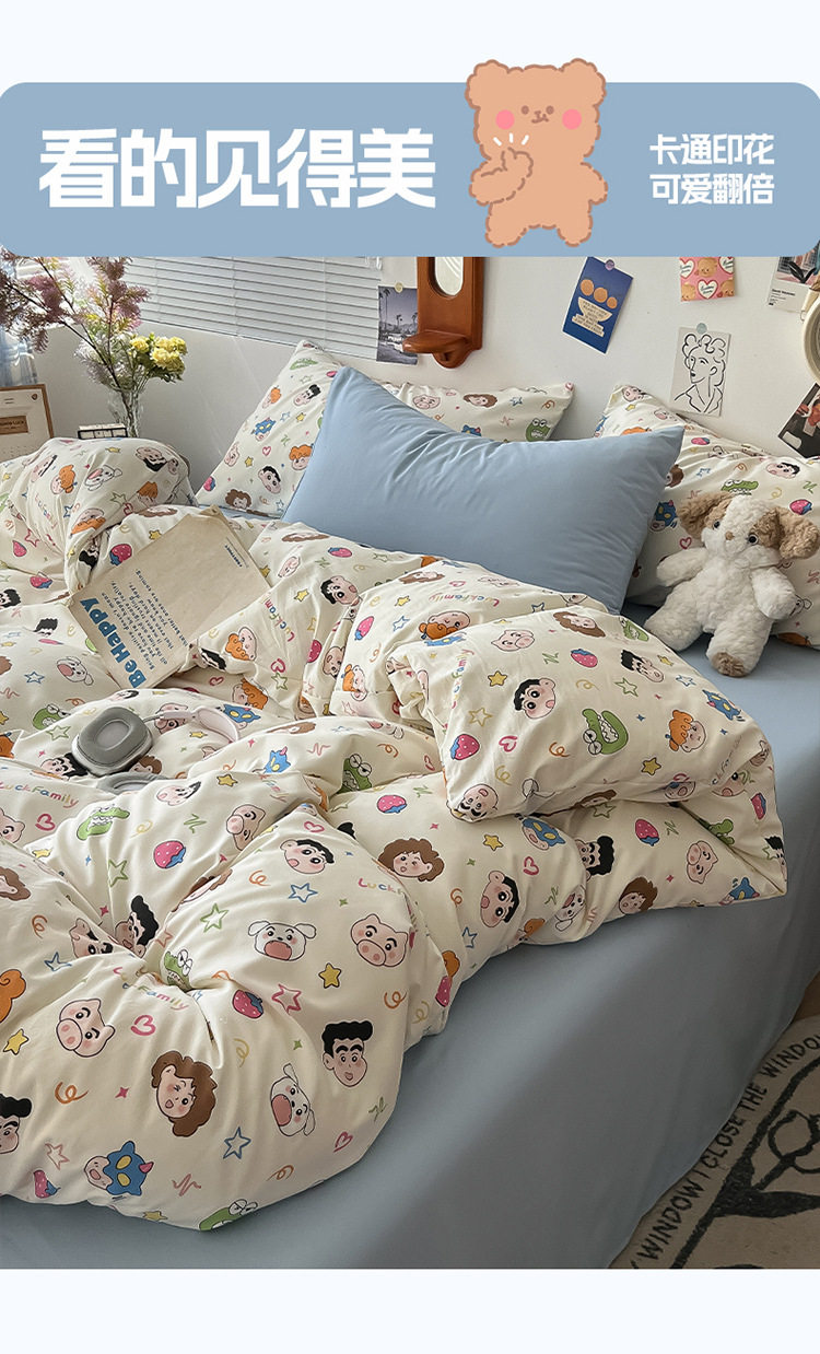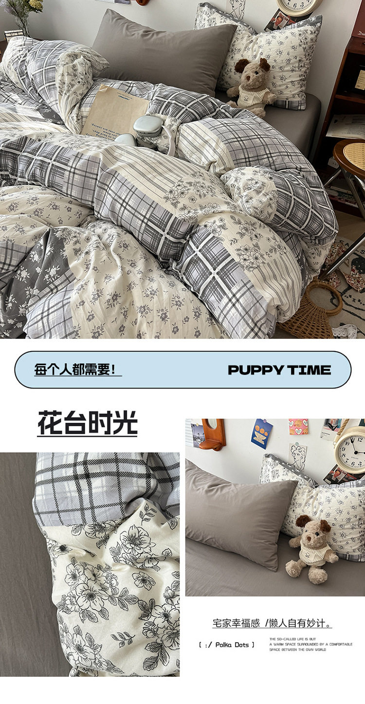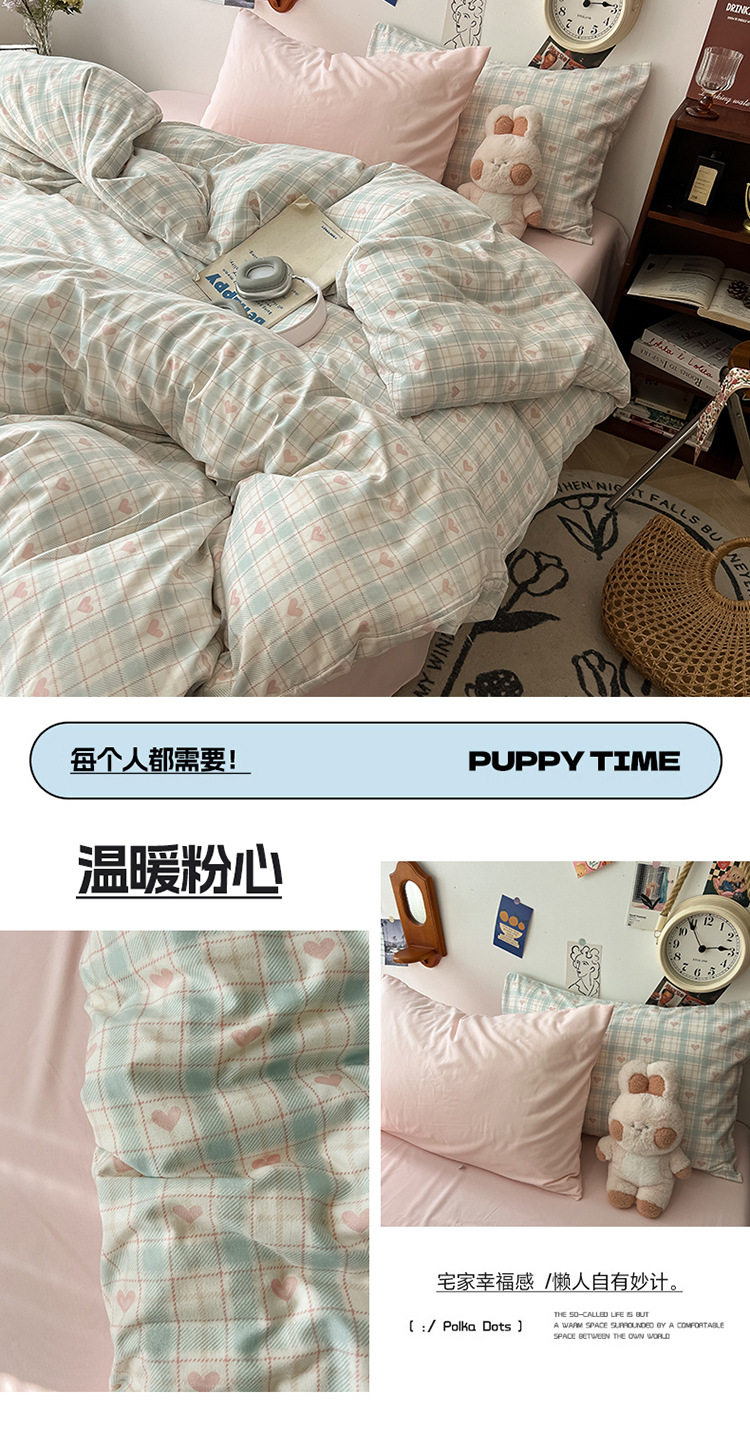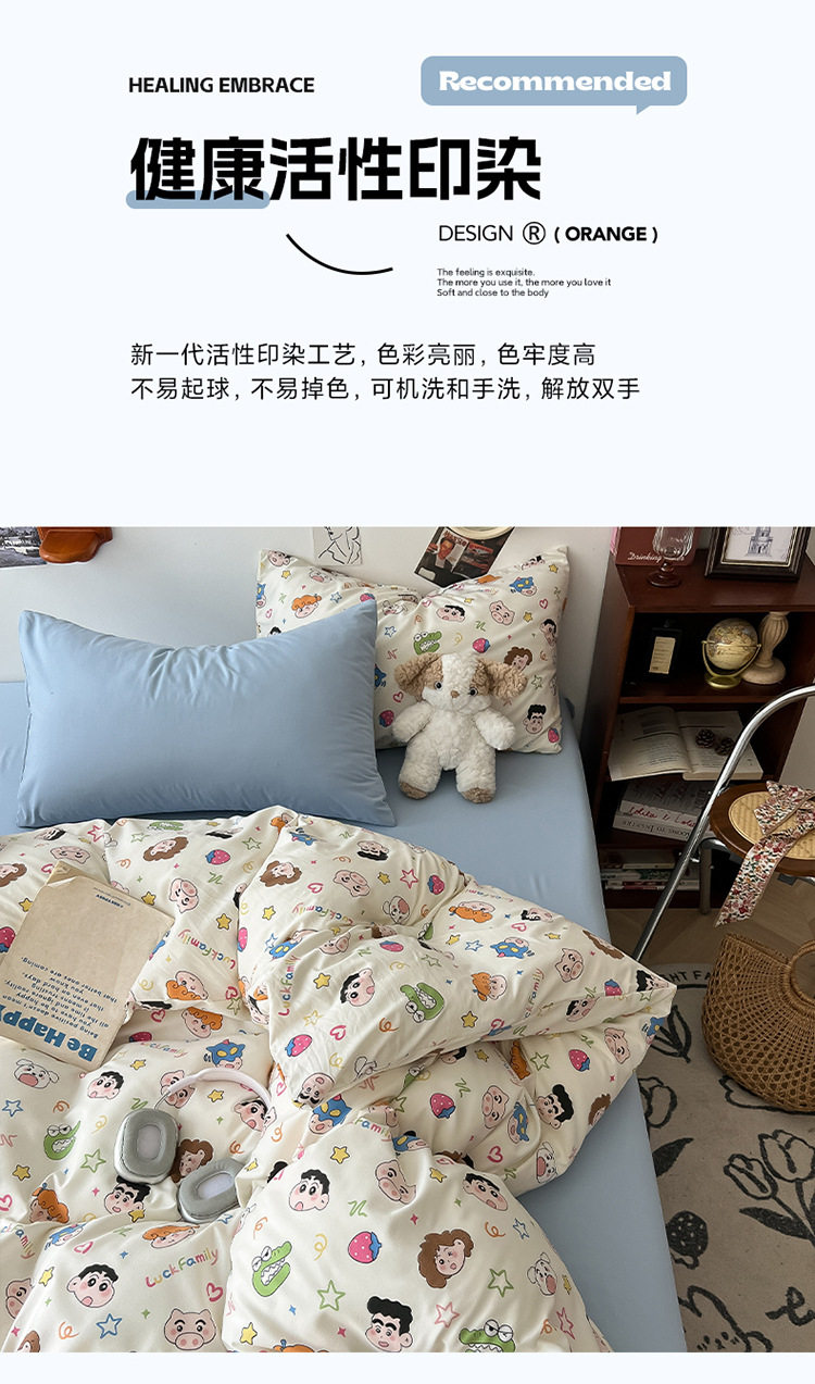 Class a Maternal and Infant-Grade Four-Piece Bedding Set, Ins-Style Pure Washed Cotton Bed Sheet, Duvet Cover, Fitted Sheet, Student Dormitory Three-Piece Set