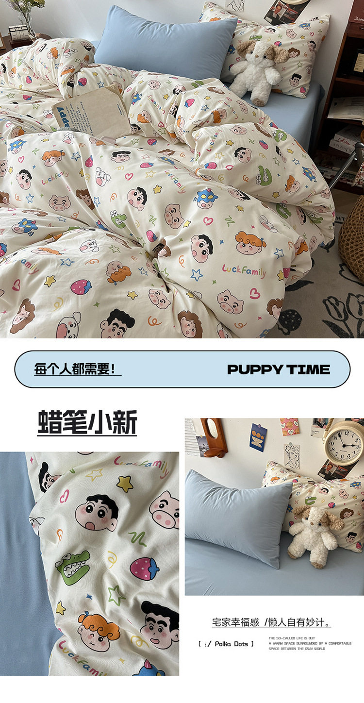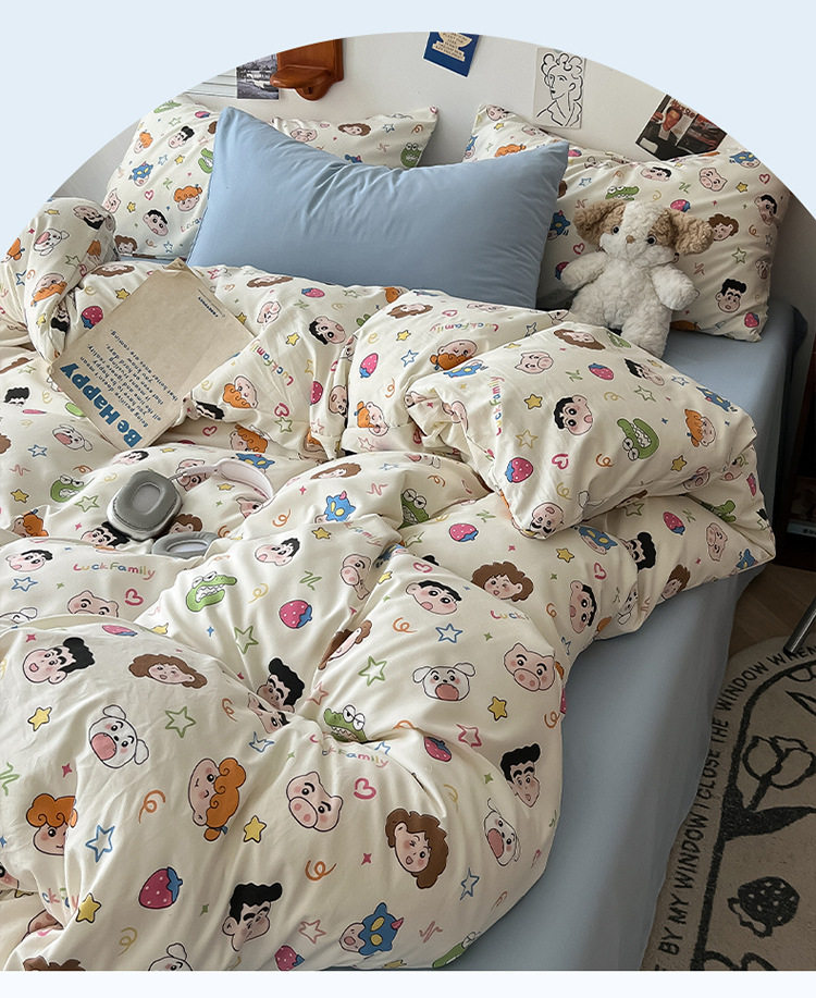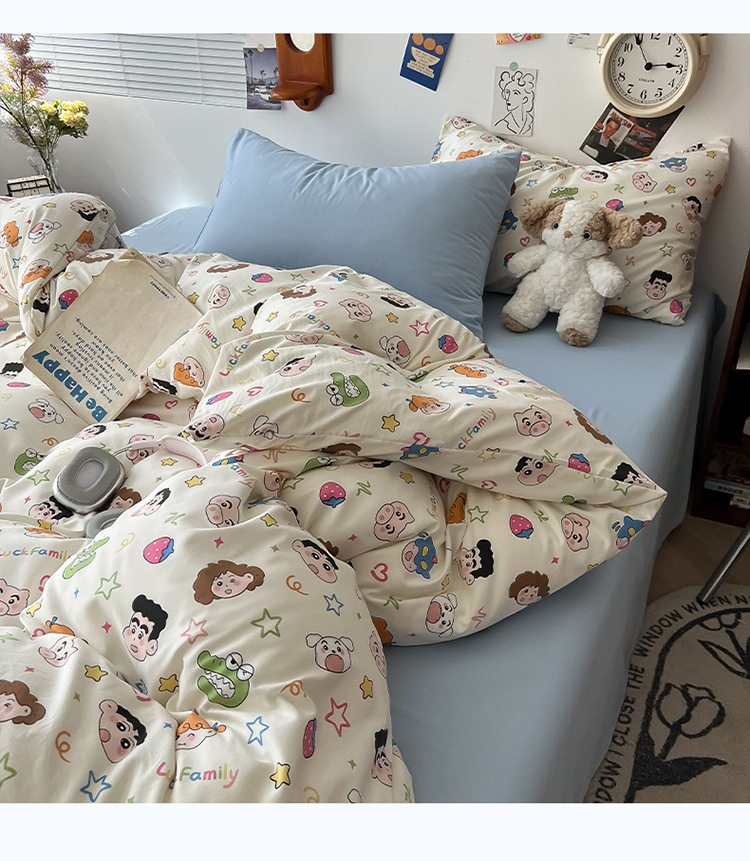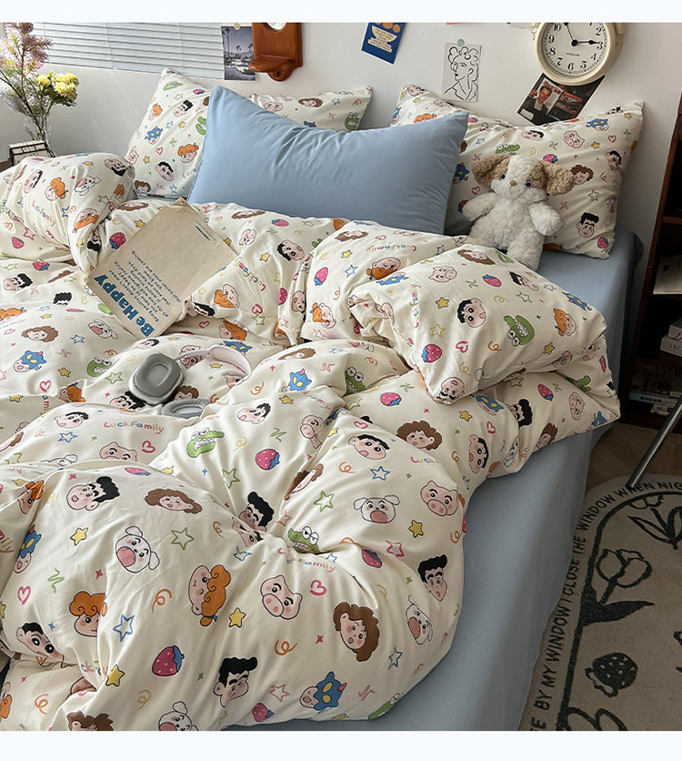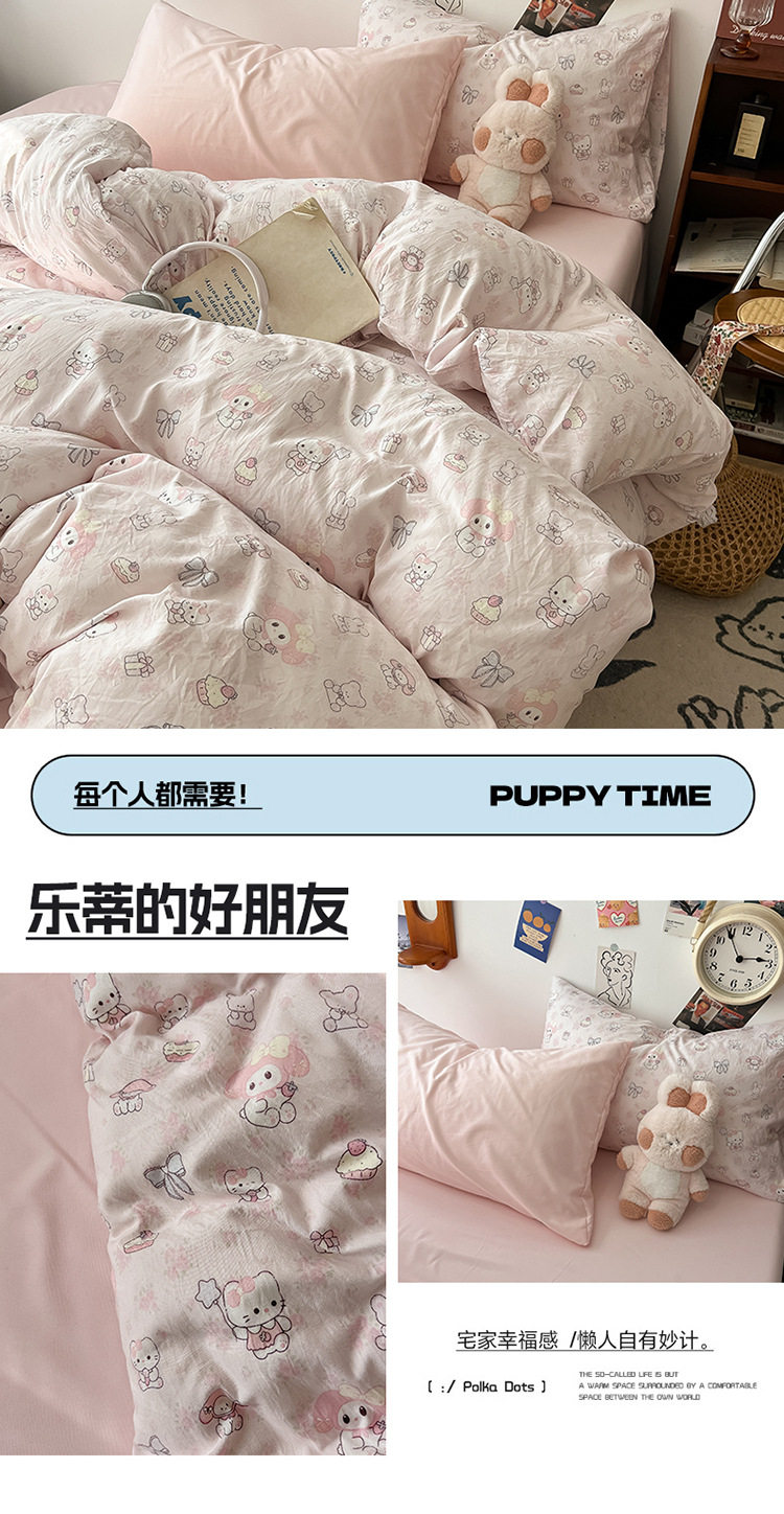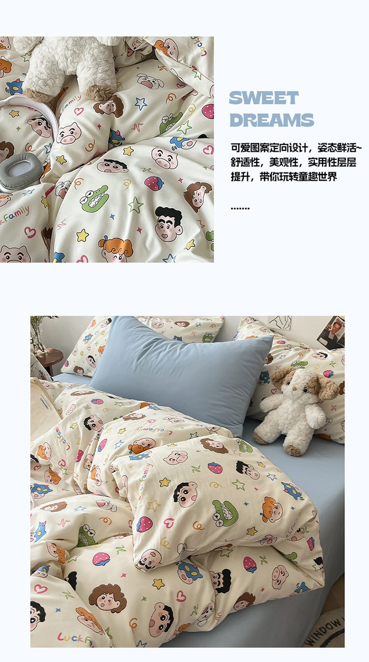 Class a Maternal and Infant-Grade Four-Piece Bedding Set, Ins-Style Pure Washed Cotton Bed Sheet, Duvet Cover, Fitted Sheet, Student Dormitory Three-Piece Set