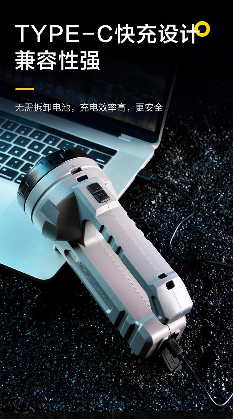 Deli Dl551300A Portable Light USB Rechargeable Outdoor Strong Light Long-Range Abs Handheld Searchlight in Stock