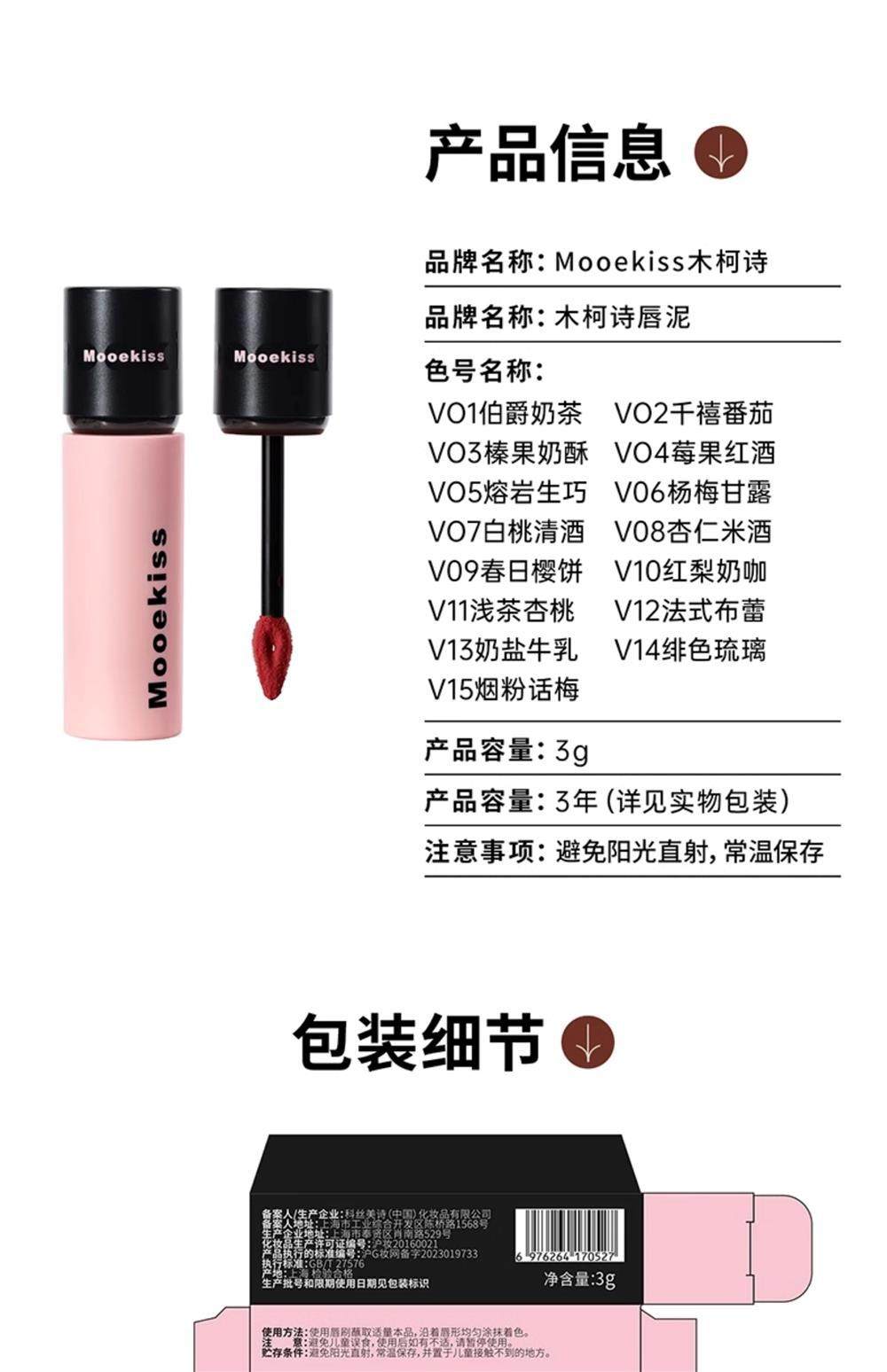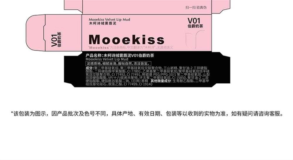Mooekiss Lip Mud Lip Glaze Lipstick V07V12V04 Woodkiss Non-Stick Cup Matte Lip Cream